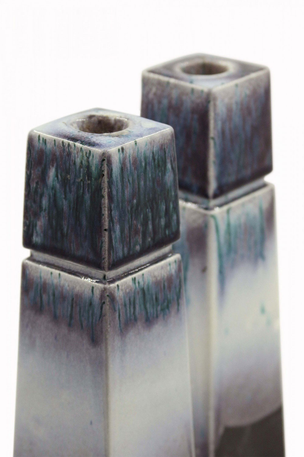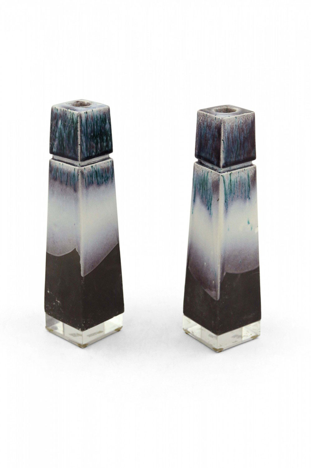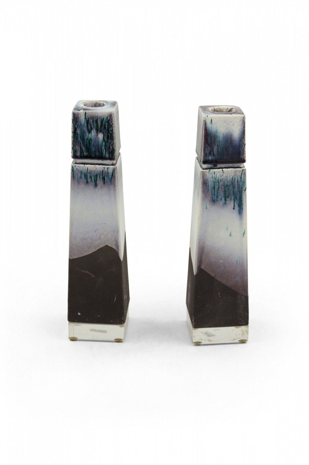 Choose one of the options below.Pair of Tapered Square White, Green, and Purple Variegated Ceramic and Lucite Candle Holders