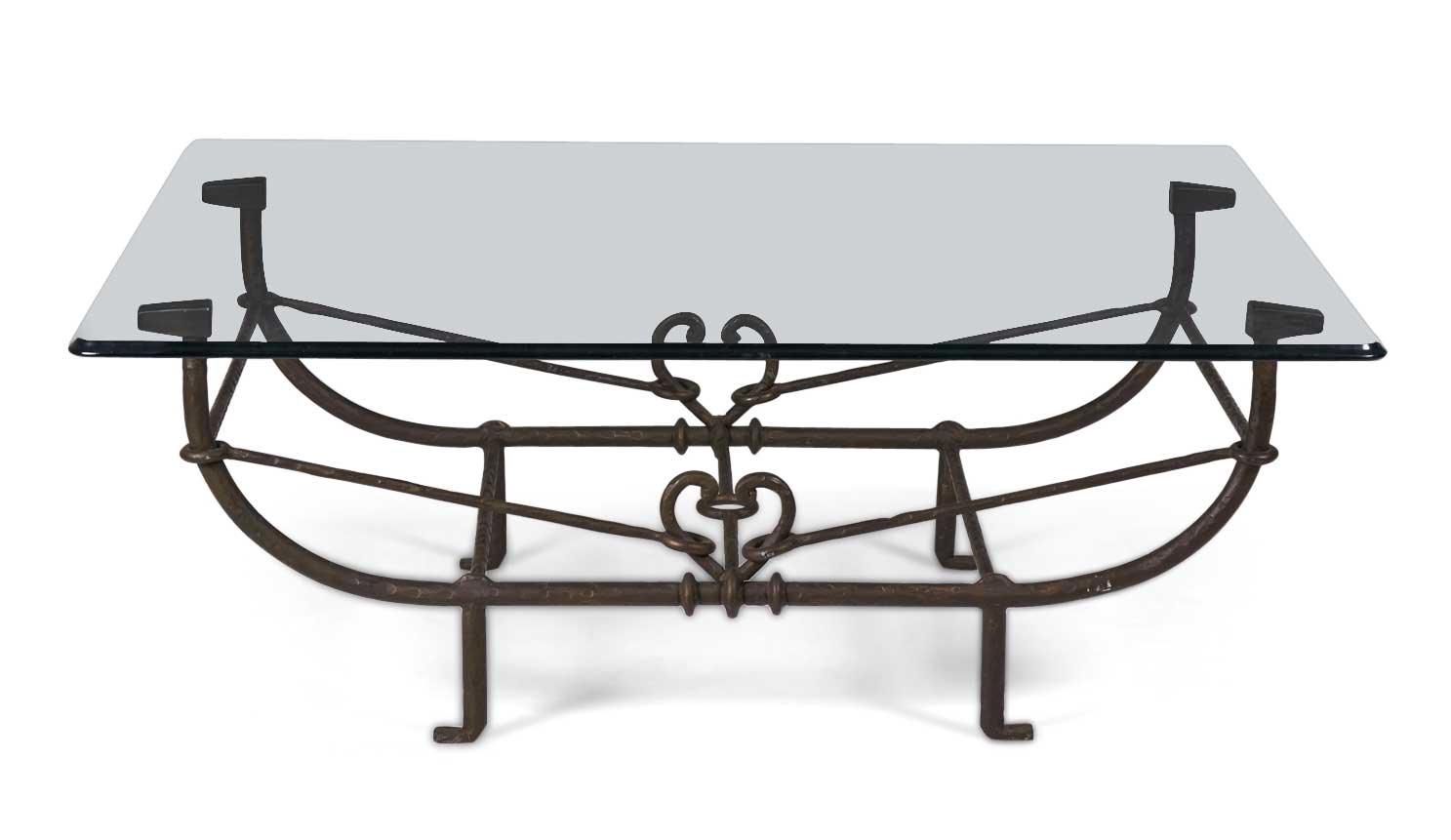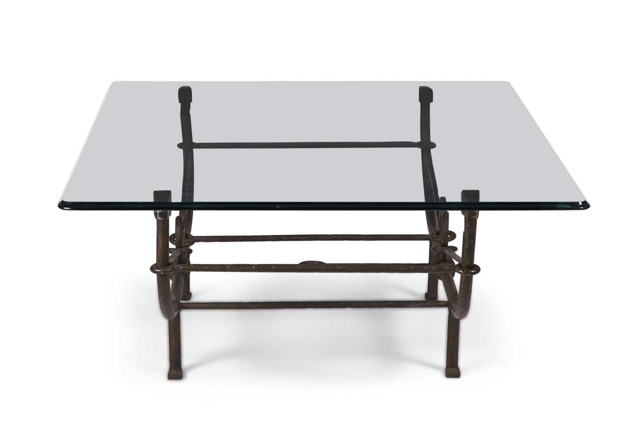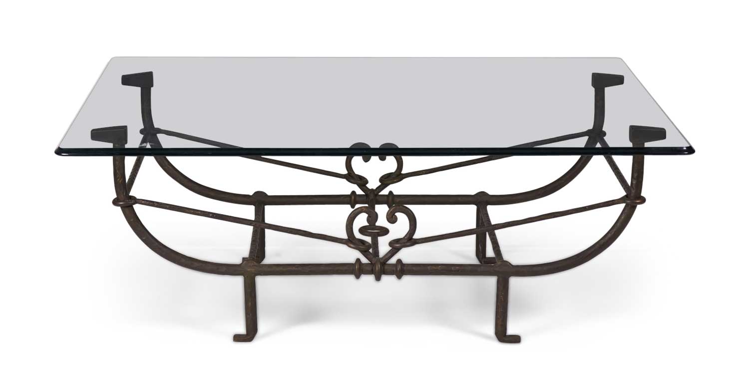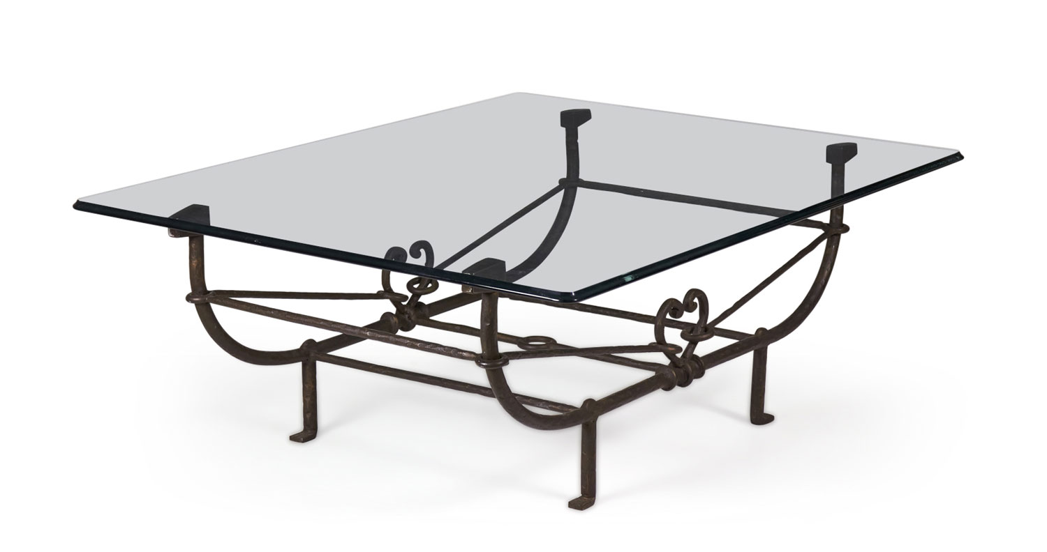 Choose one of the options below.American Etruscan Forged and Hammered Iron and Glass Cocktail / Coffee Table