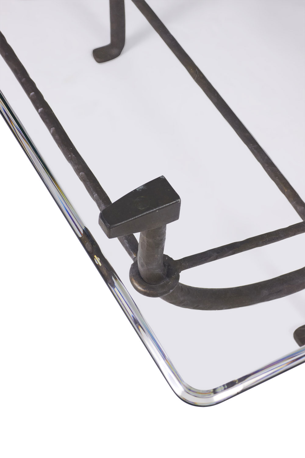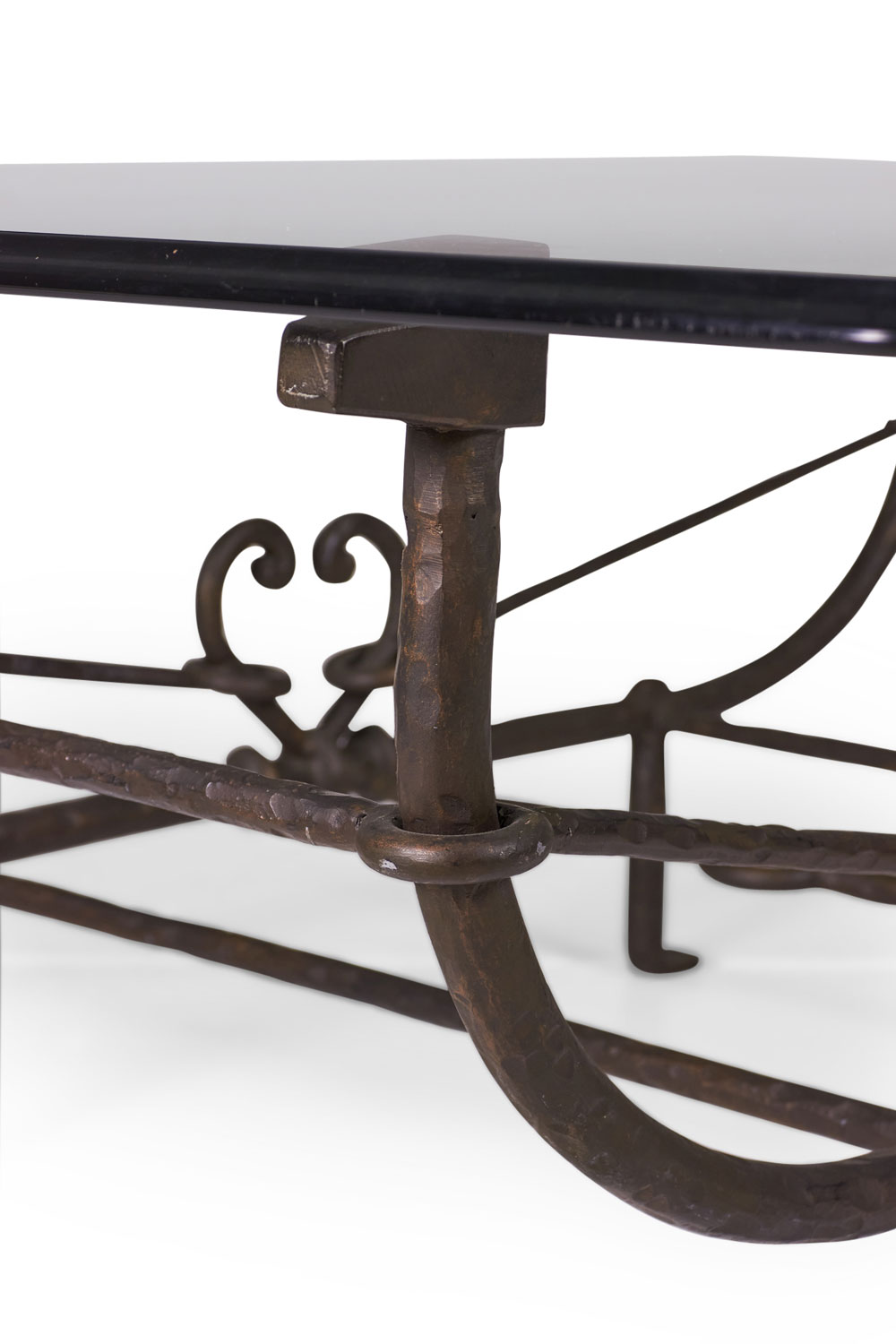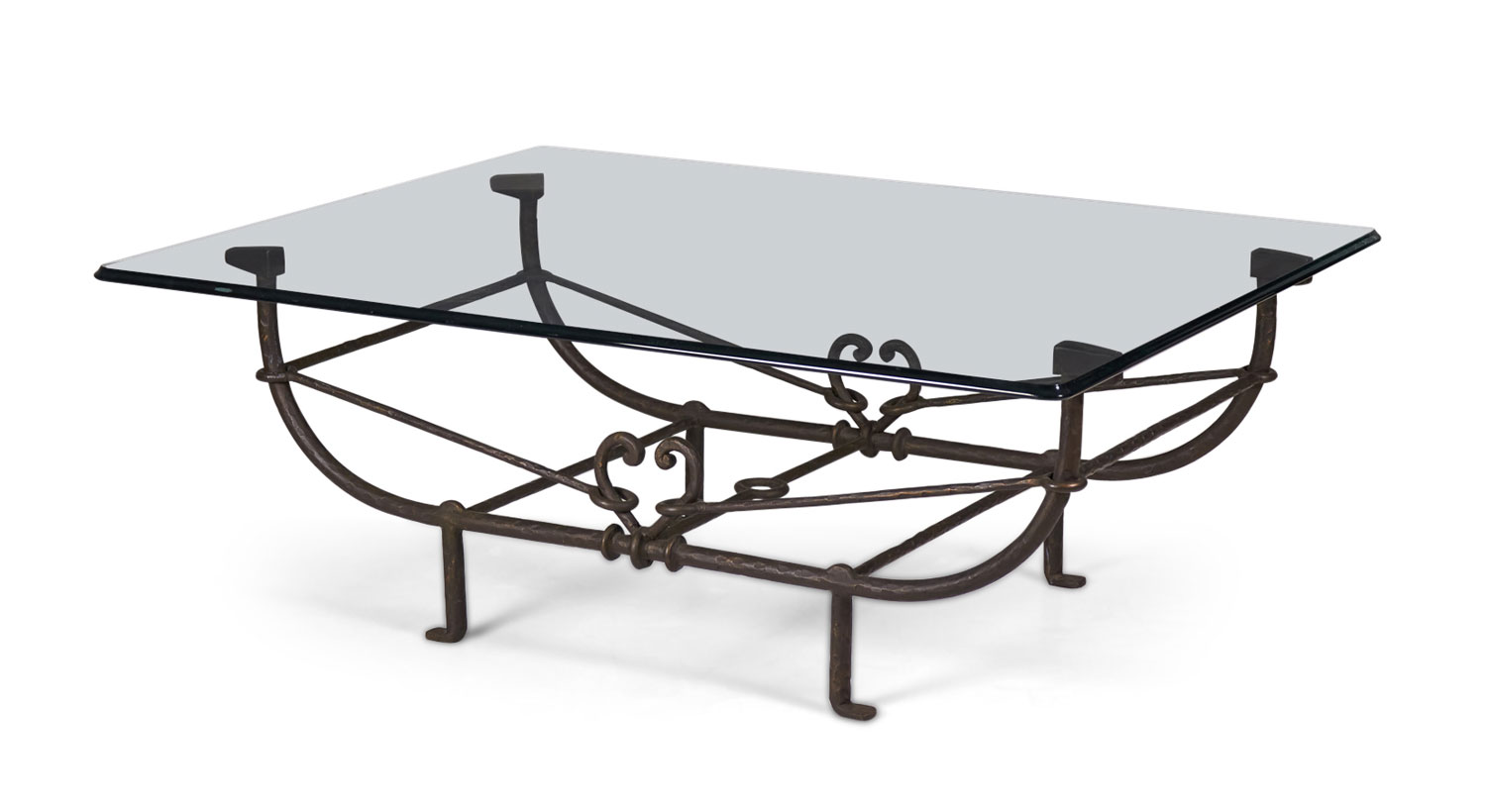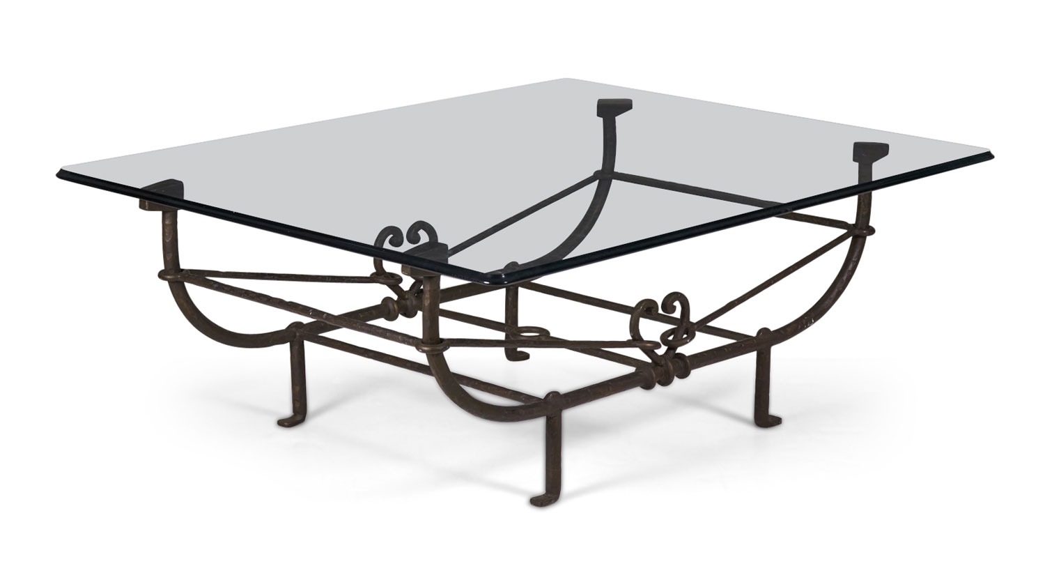 Choose one of the options below.American Etruscan Forged and Hammered Iron and Glass Cocktail / Coffee Table