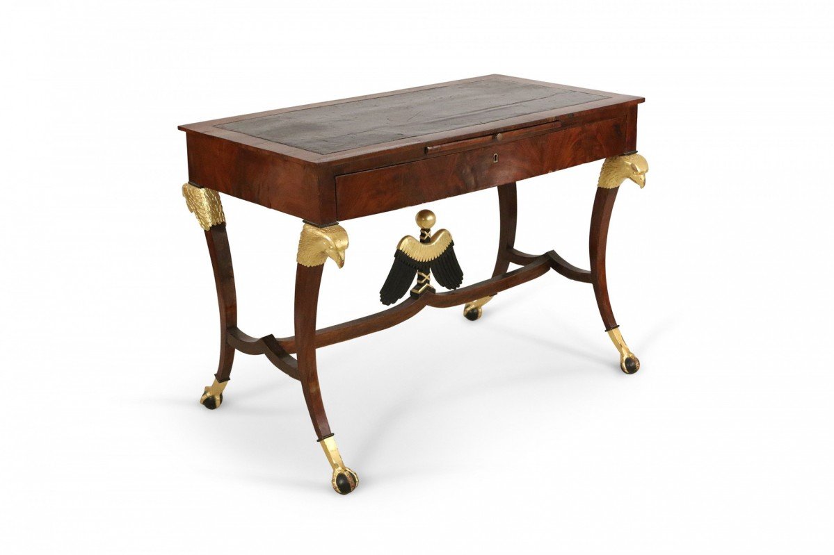 Russian Mahogany and Gilt Eagle Design Leather Top Desk