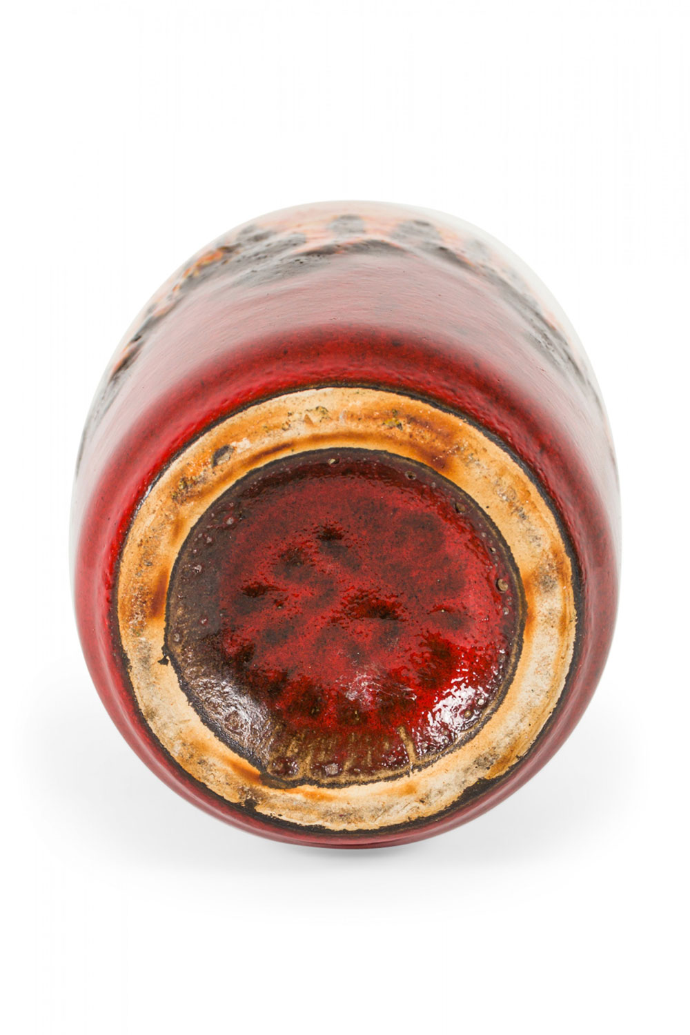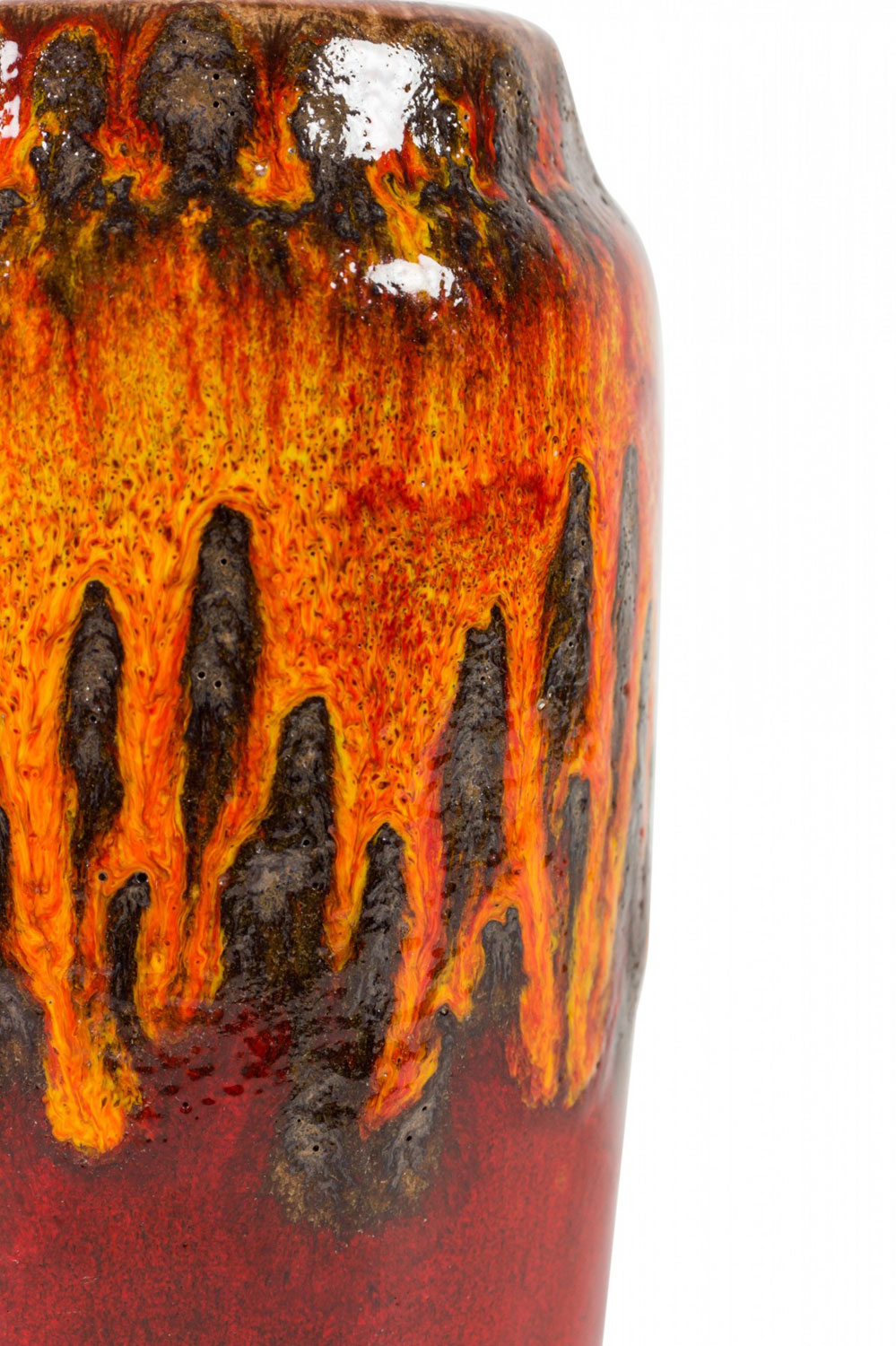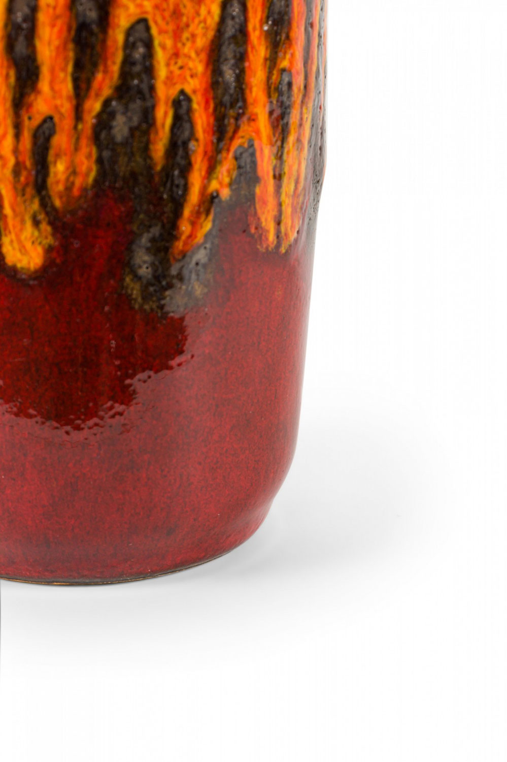 Choose one of the options below.West German Fat Lava Orange Black and Red Glazed Ceramic Vase