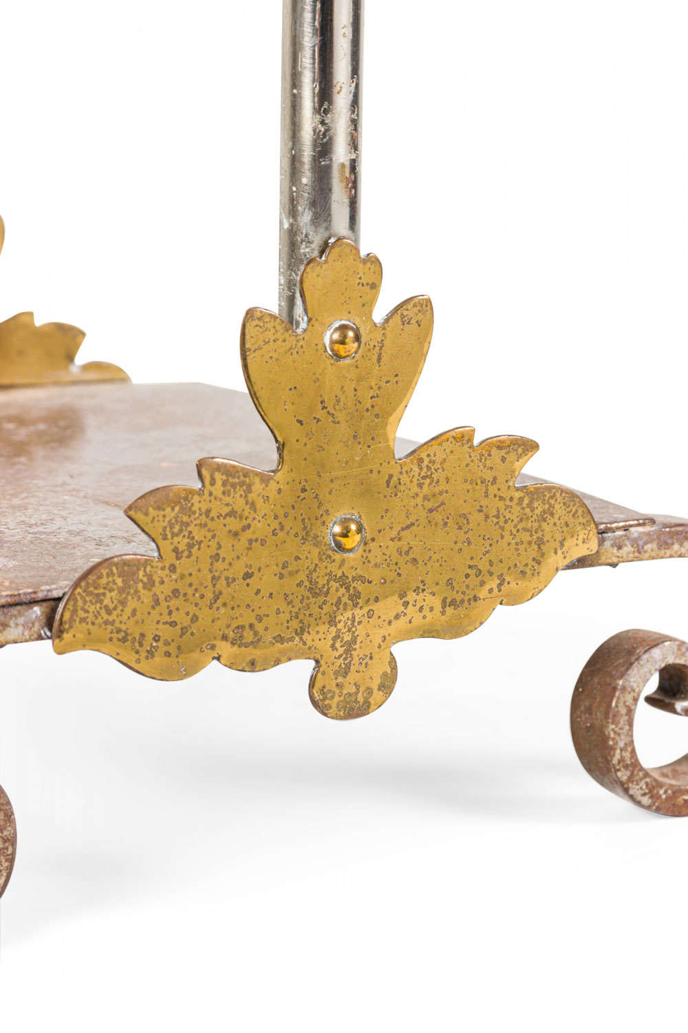 Set of French Victorian Style Iron and Brass Scroll Design Fire Tools