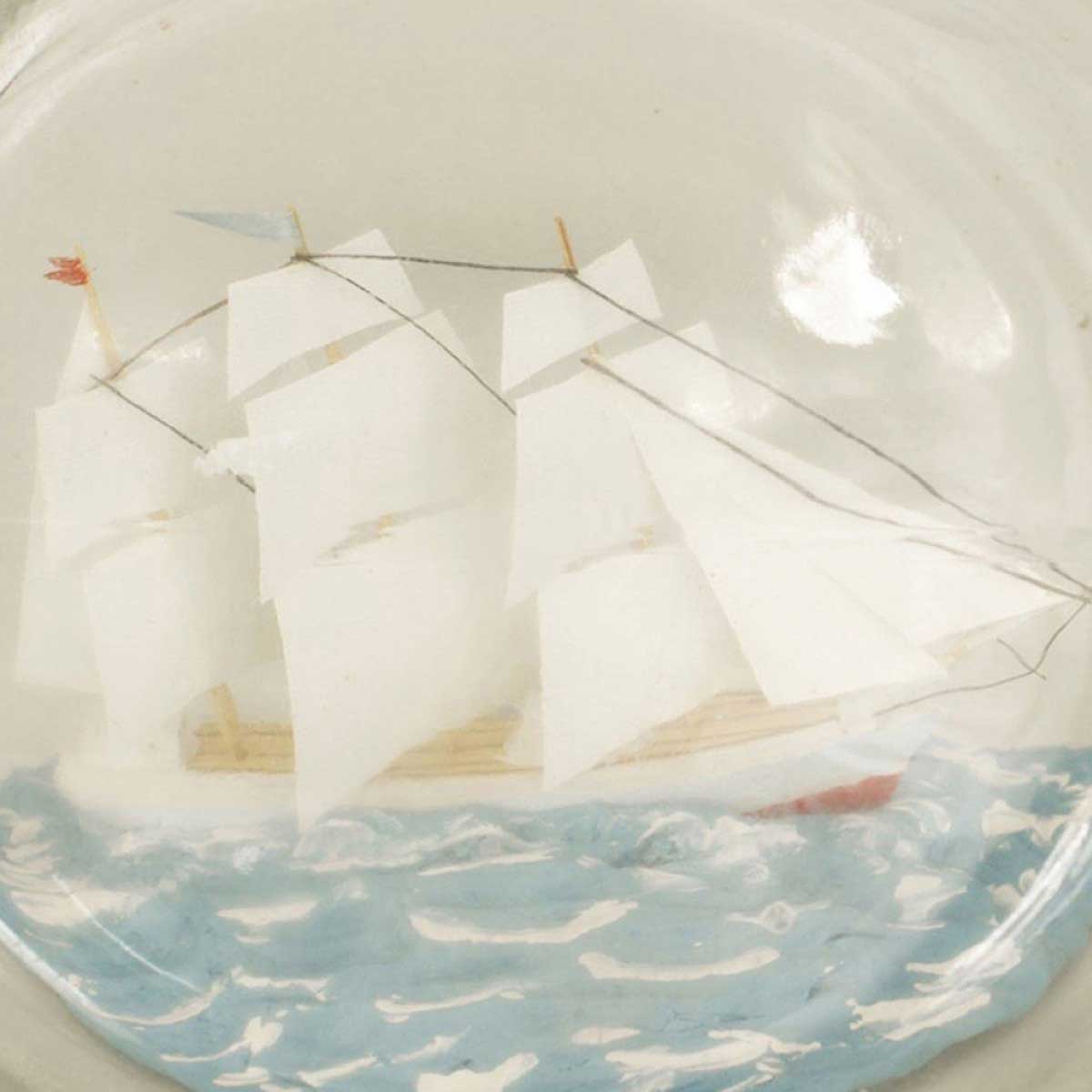 American/English (19th Cent) sailing ship with 3 masts in a small triangular glass bottle