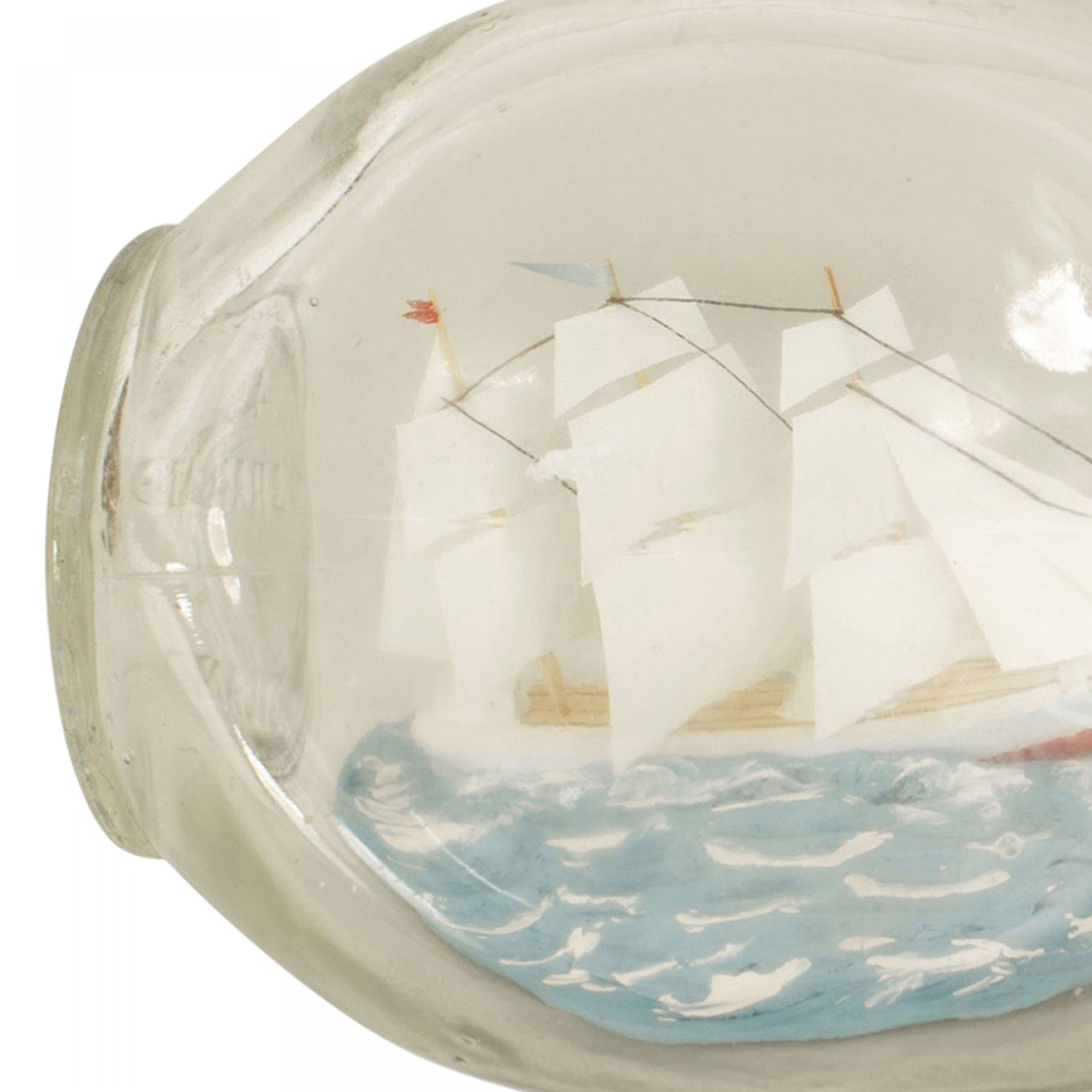Choose one of the options below.sailing ship with 3 masts in a small triangular glass bottle