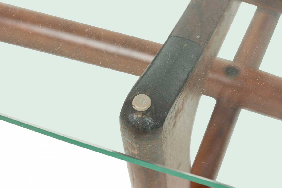 Choose one of the options below.Mid-Century American 'Bowtie' Walnut and Glass Top Cocktail Table