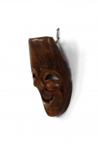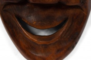 African style (20th Century) carved wood wall plaque mask with smile.