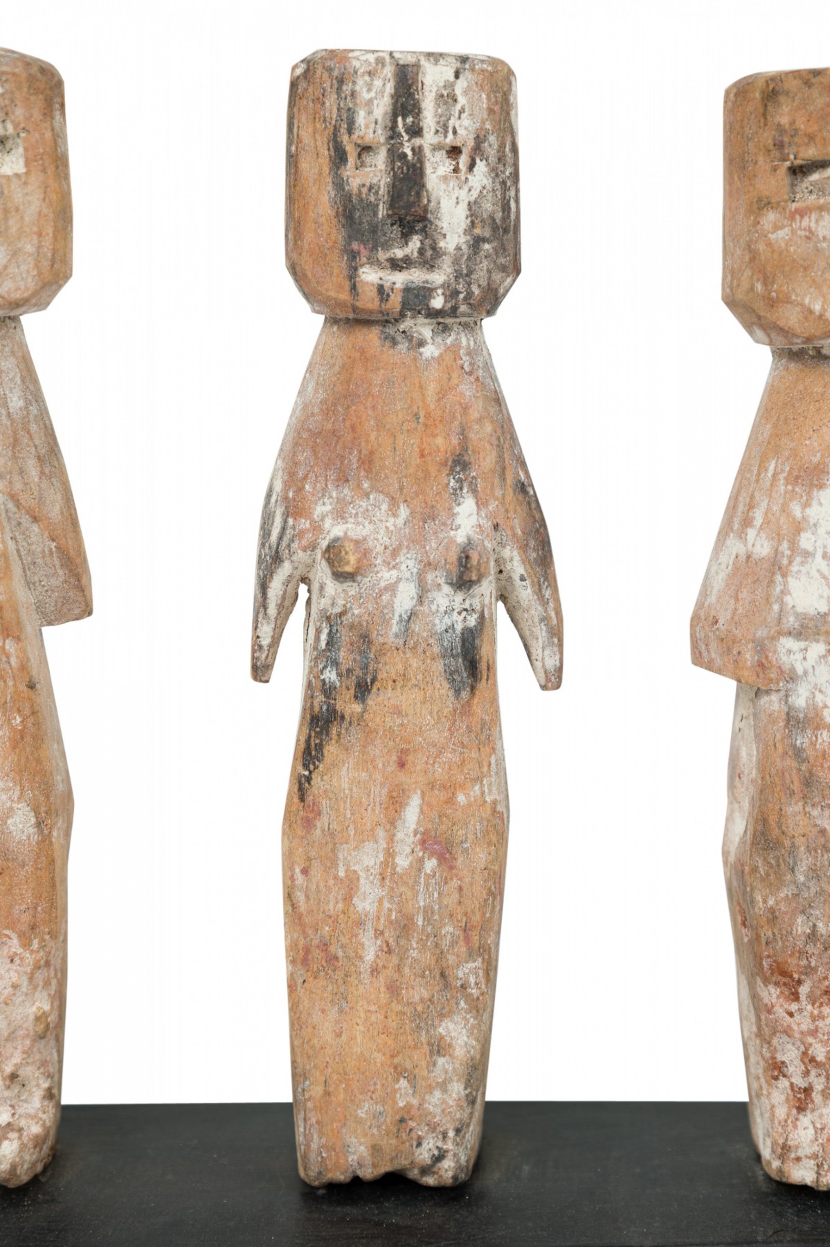 Choose one of the options below.African Southeastern Ghana Identified Carved Wood Adan Miniature Ancestor Effigies Plated on an Ebon