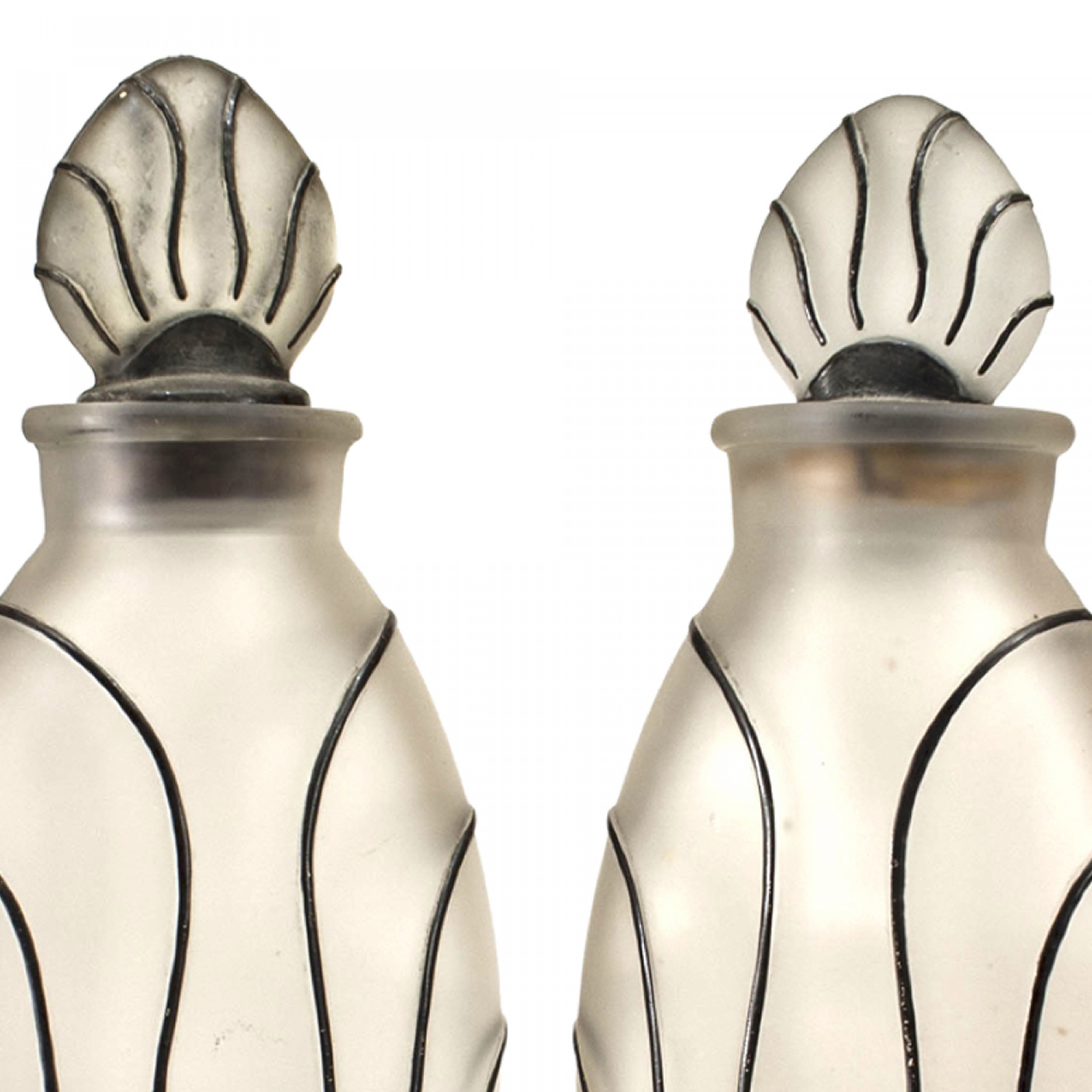 2 American Art Deco Frosted Glass Perfume Bottles