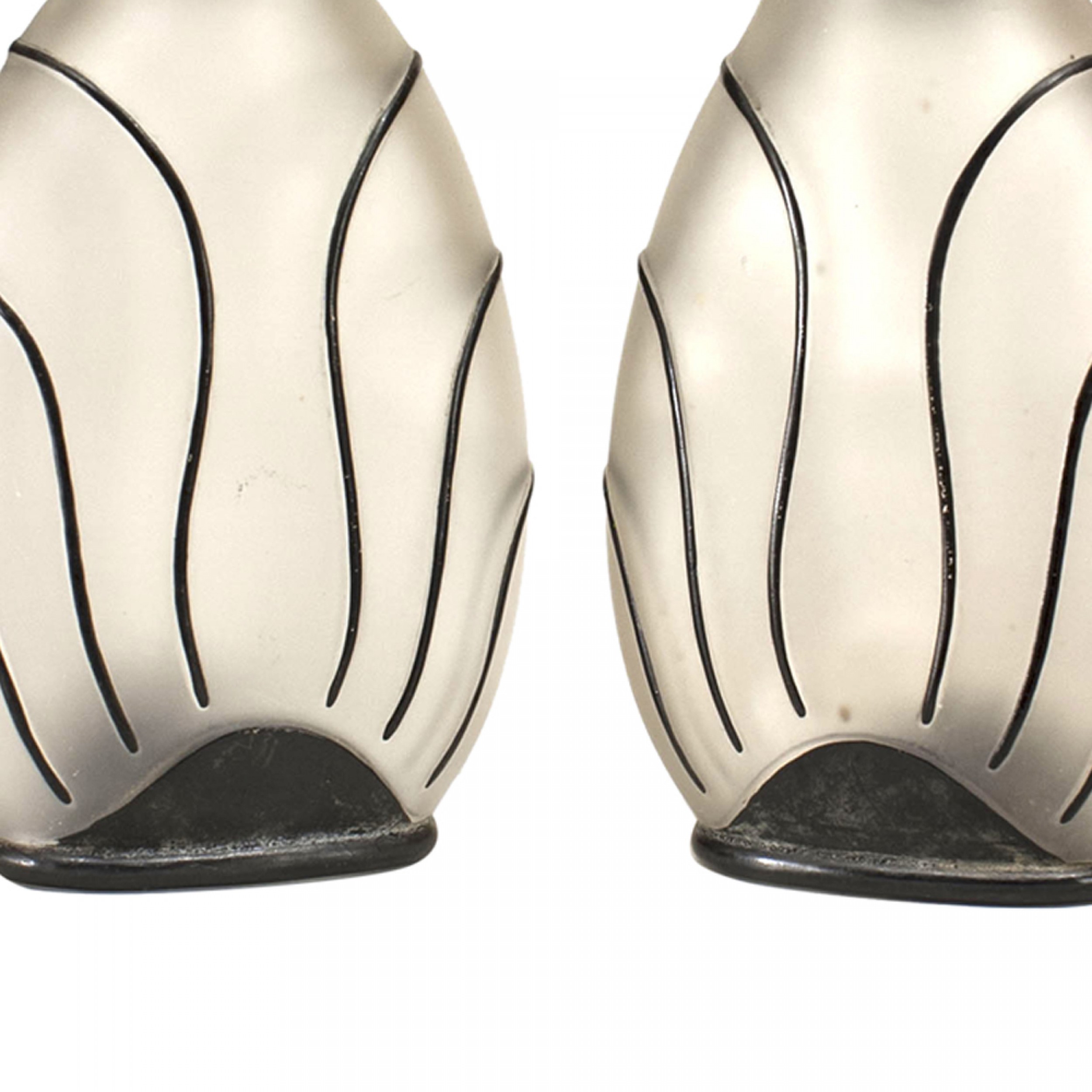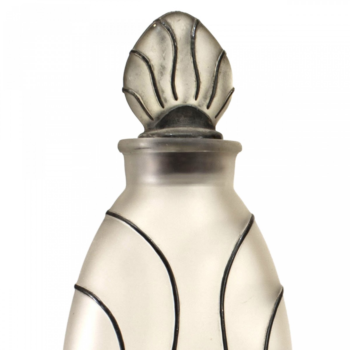 2 American Art Deco frosted glass perfume bottles with black linier trim. (PRICED EACH)