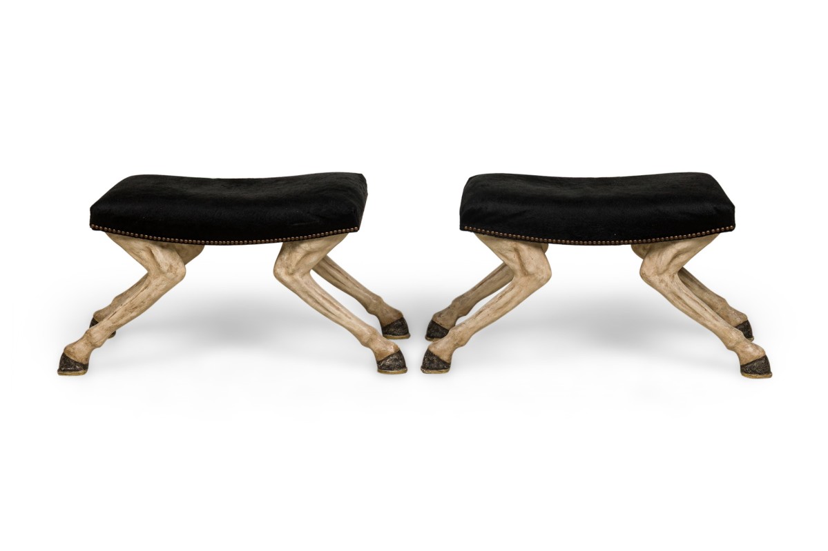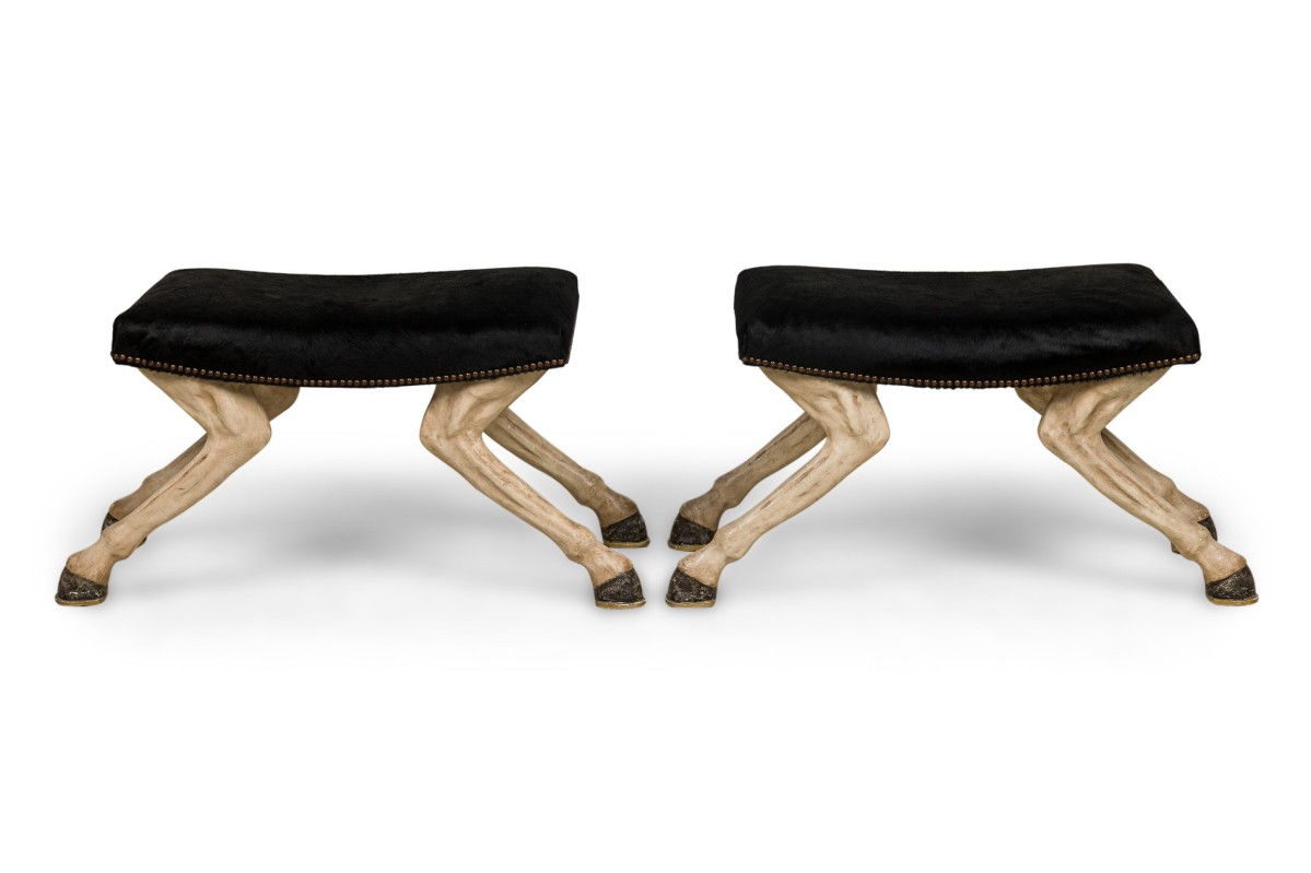 Choose one of the options below.2 American Contemporary Custom Made Horse Leg Saddle Stool / Bench