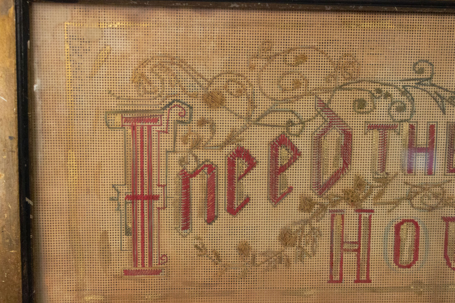 American Victorian (19th Century) horizontal embroidered "I Need Thee Every Hour" sampler.