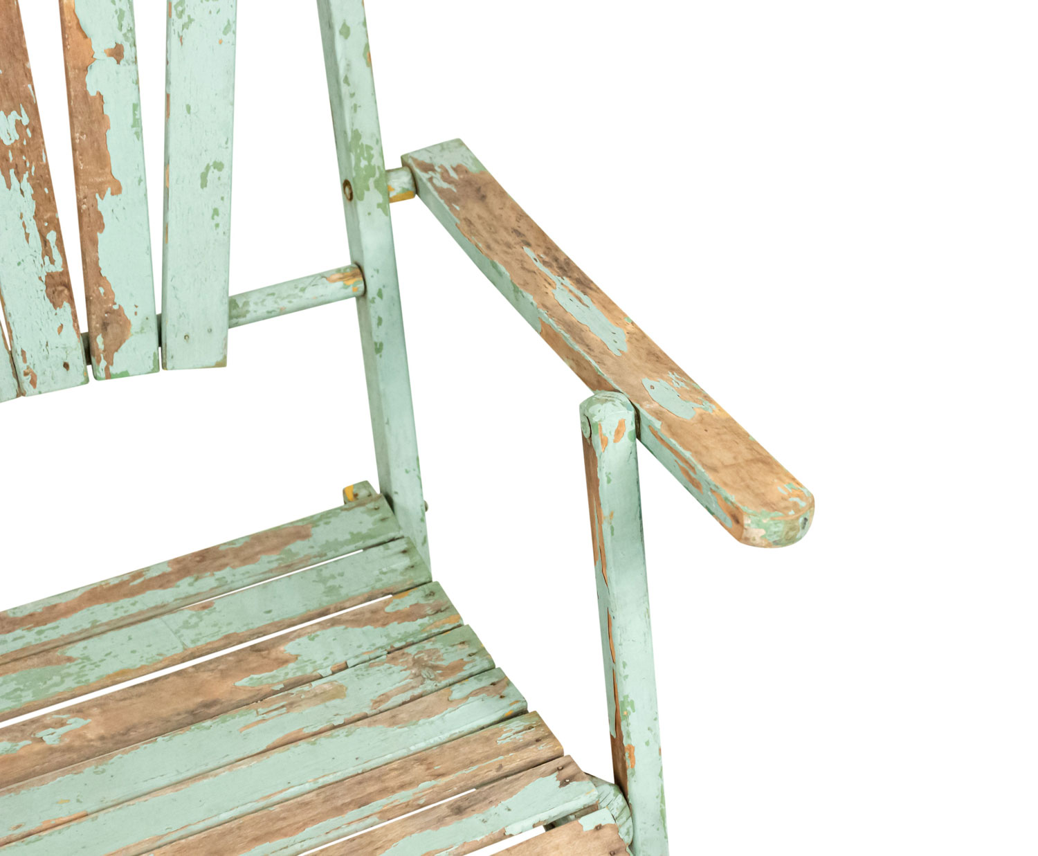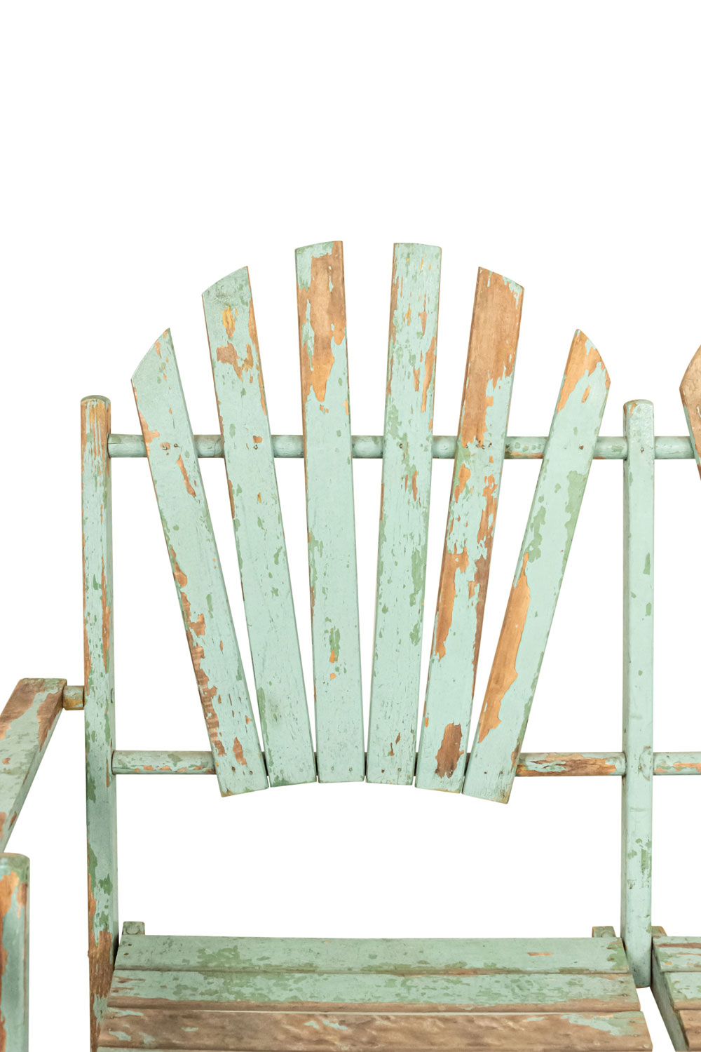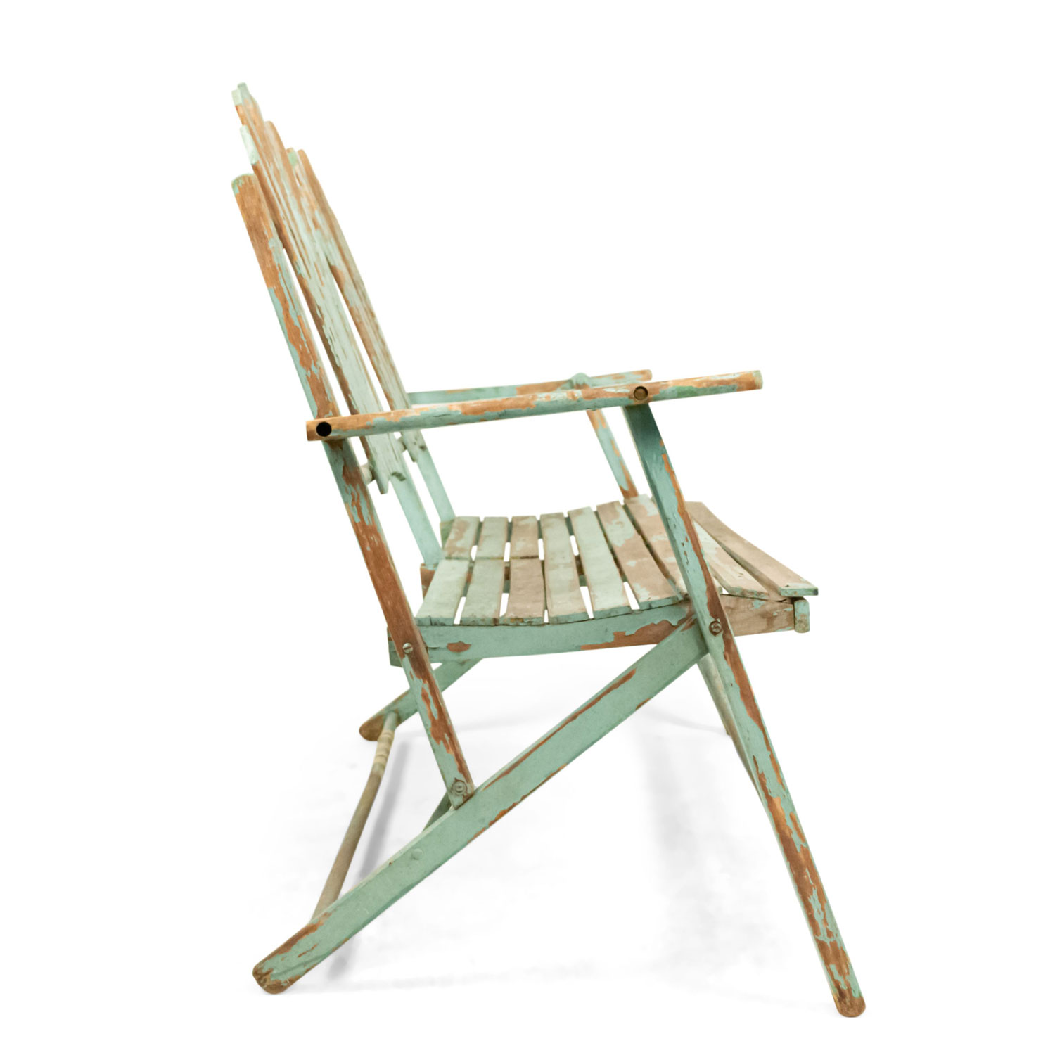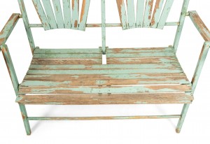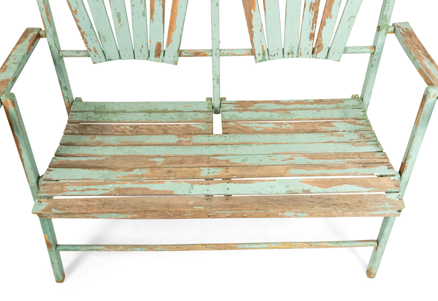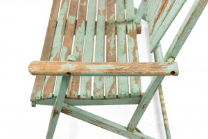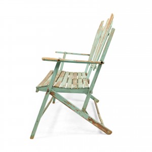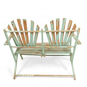 American Country style (19/20th Century) Outdoor folding loveseat with a weathered green painted slat design seat and double fan back back