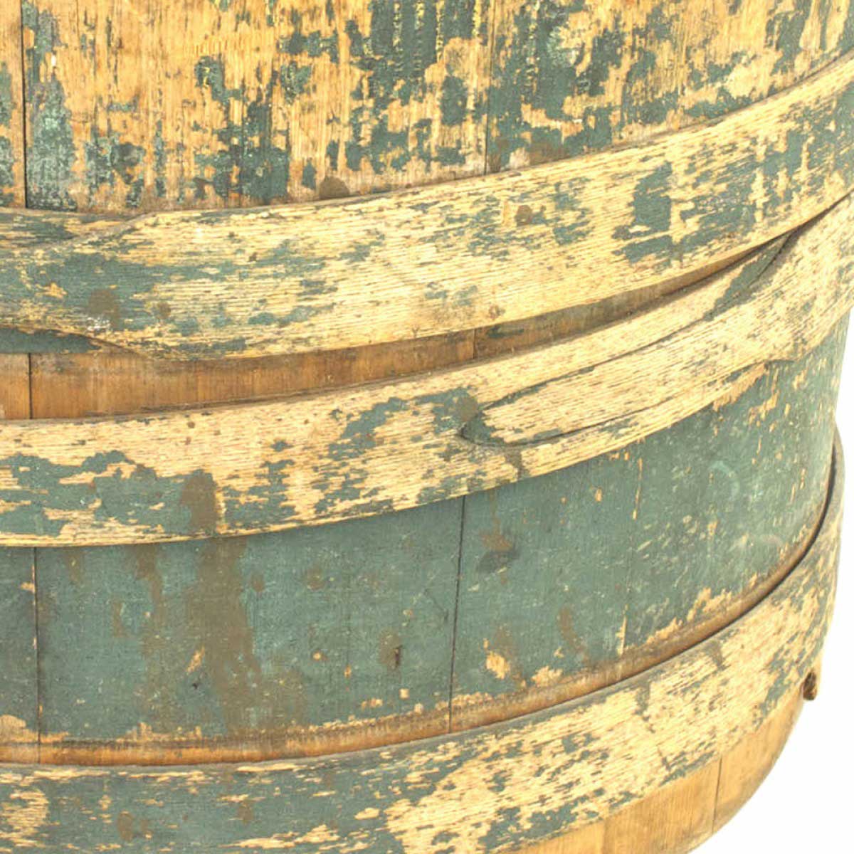 American Country Rustic style antique blue painted pine large water bucket with cut out handles.