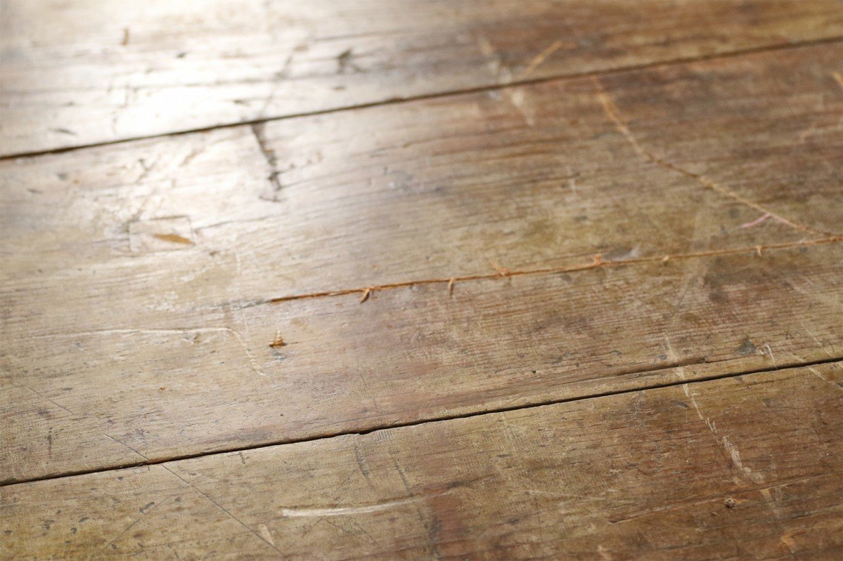* Condition: Table top has several deep scuffs and dents, original dowels missing.
