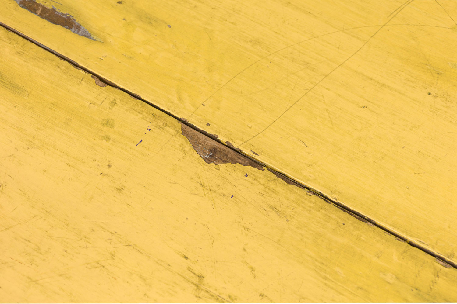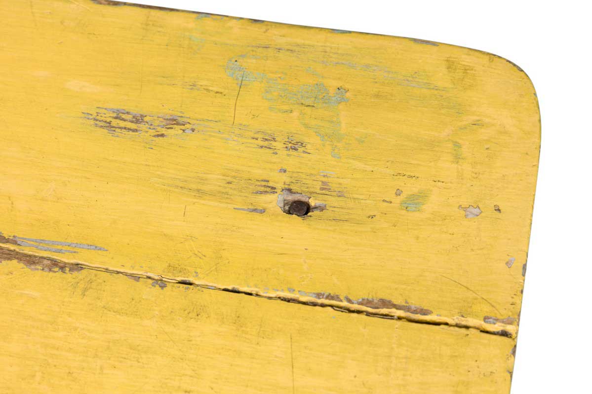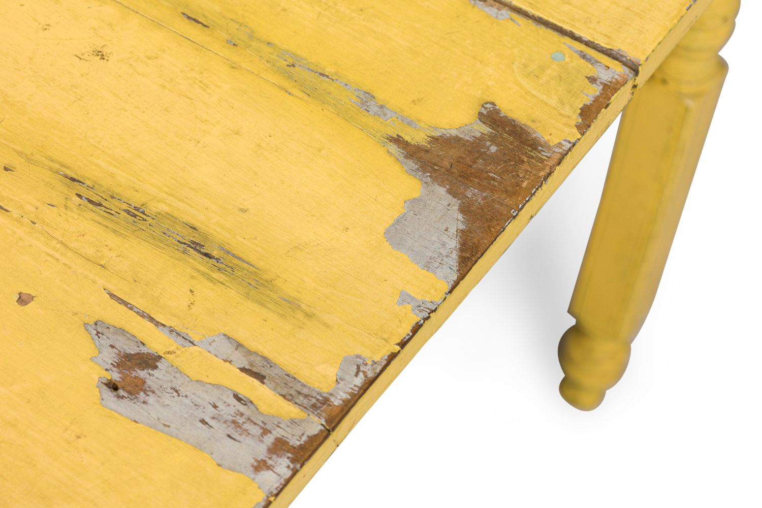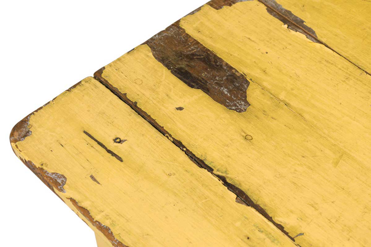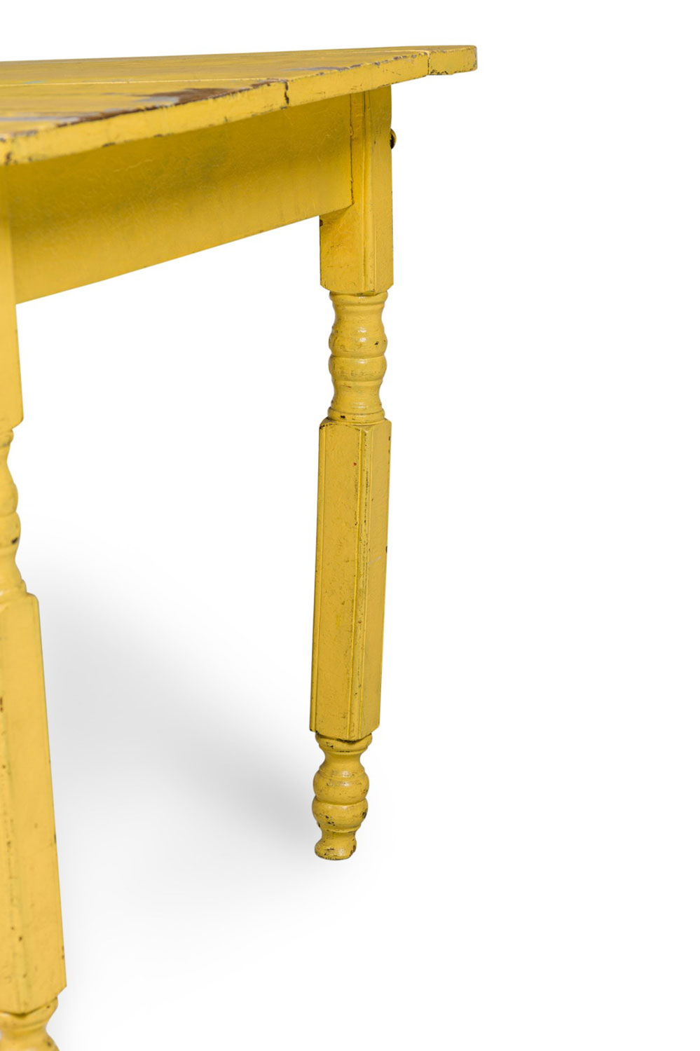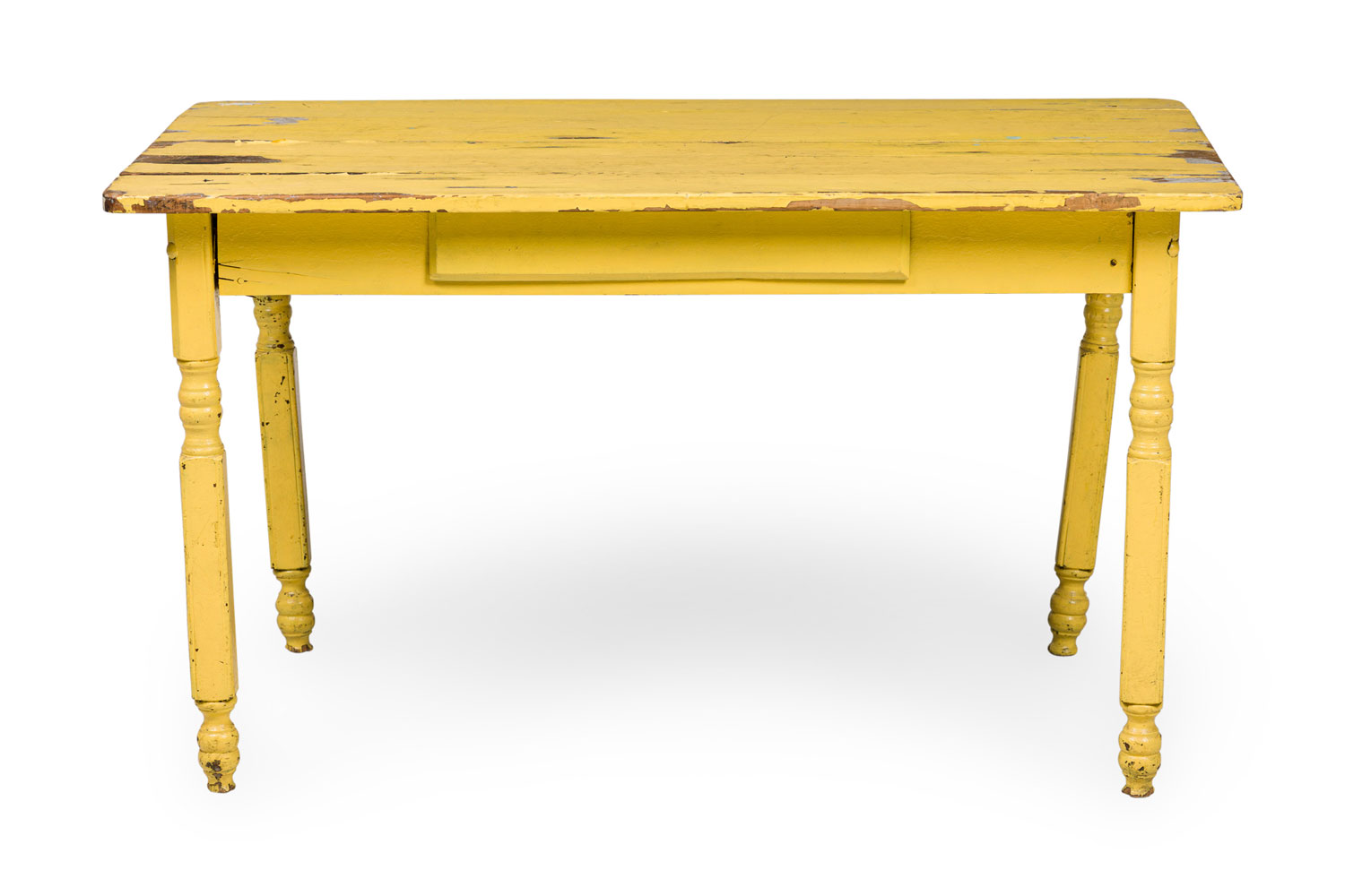 American Country Rustic-style (19th Century) rectangular yellow painted work /dining table with square and turned legs having a single drawer.