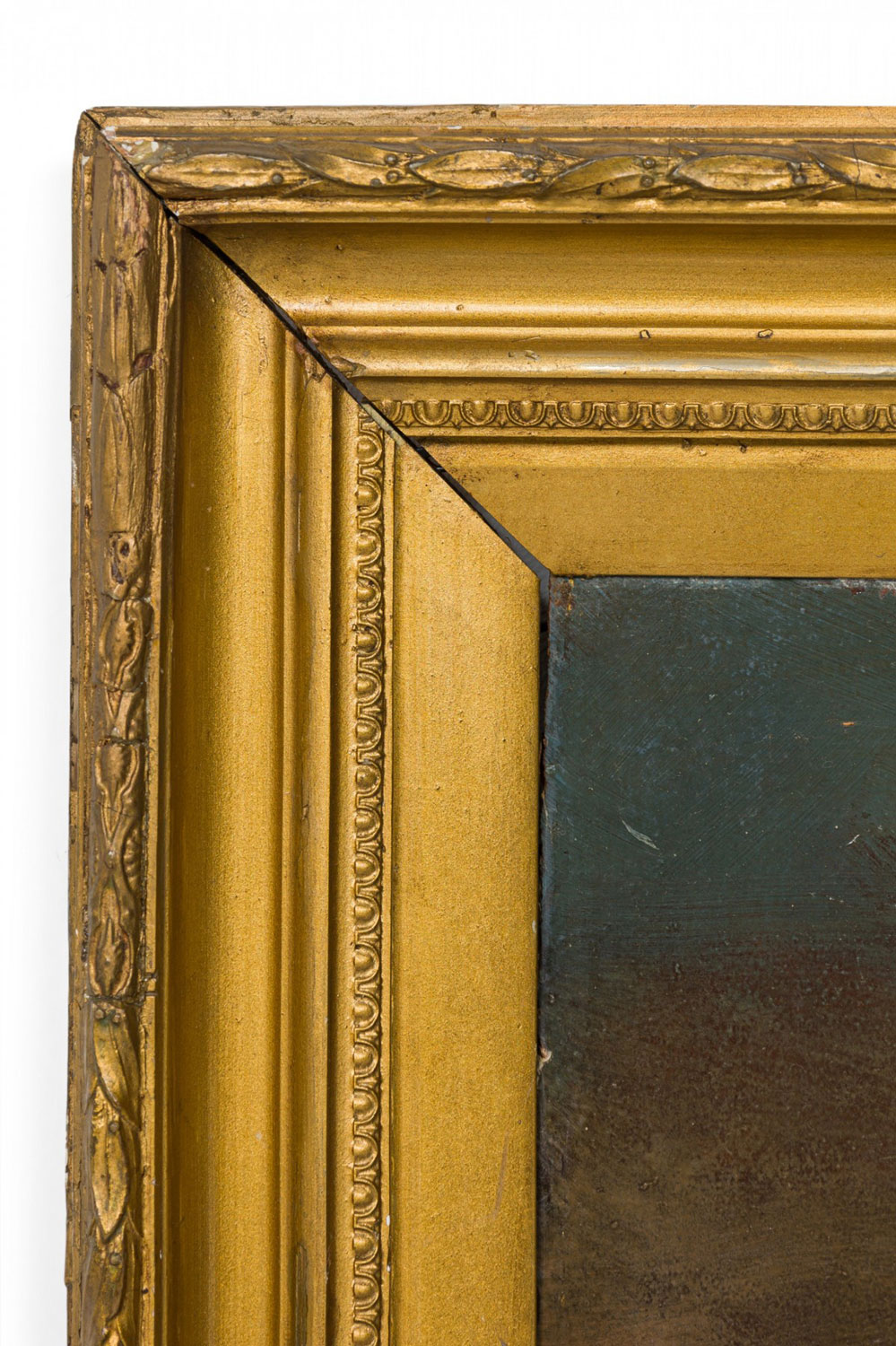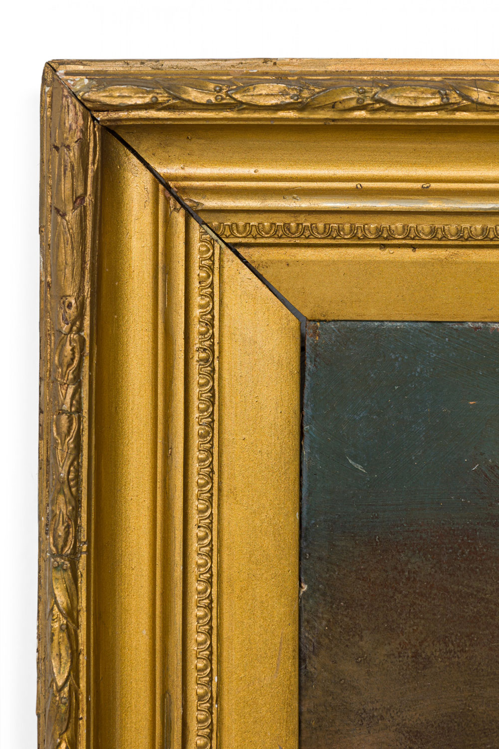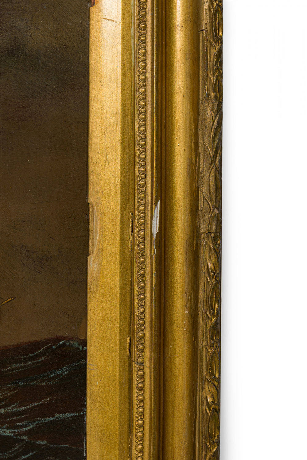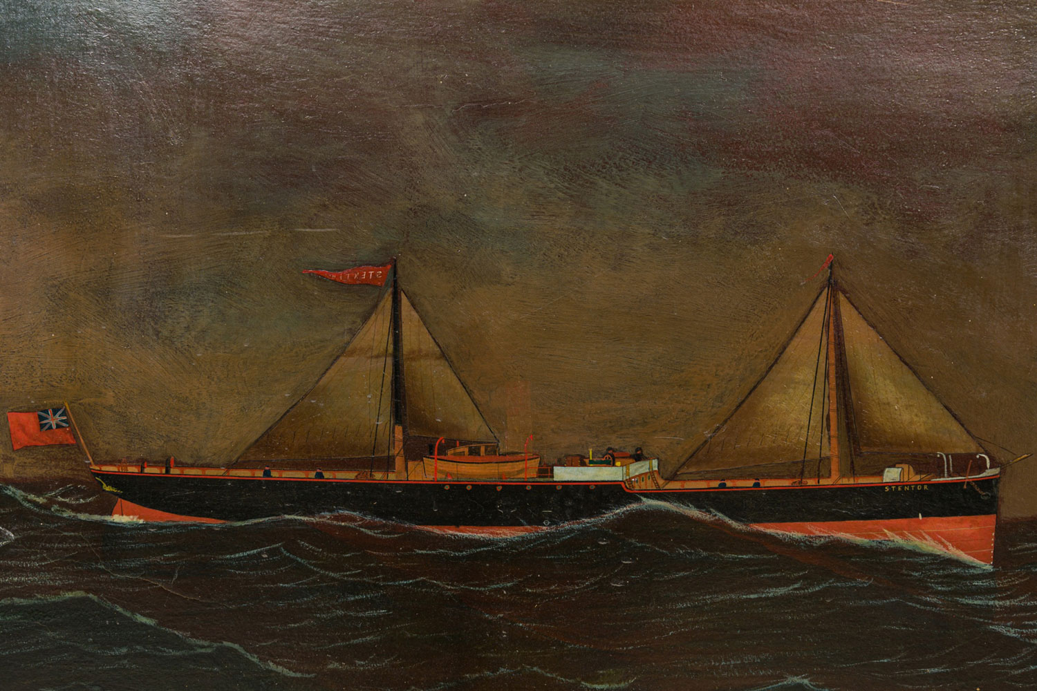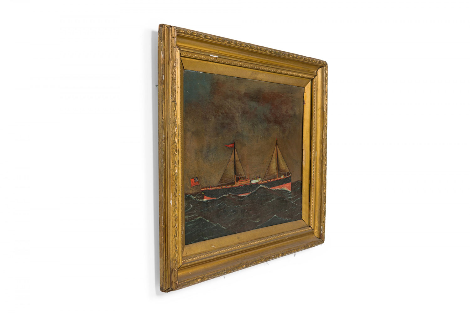 American Country (20th Cent) gilt framed seascape oil painting of black and red freighter (Stentor)