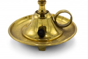 American Country-style (20th Century) brass candlestick with holder and hurricane shade.