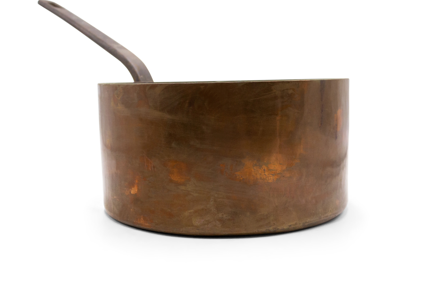 American Country-style (20th Century) copper cooking pot with wrought iron handle