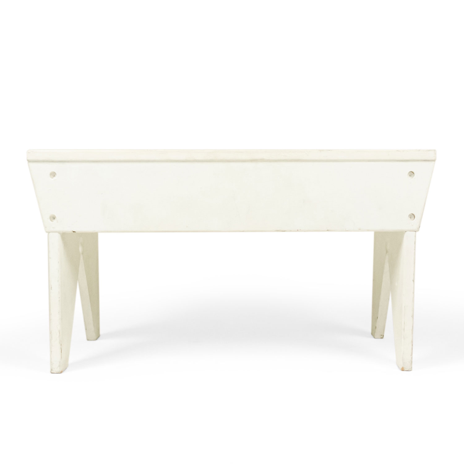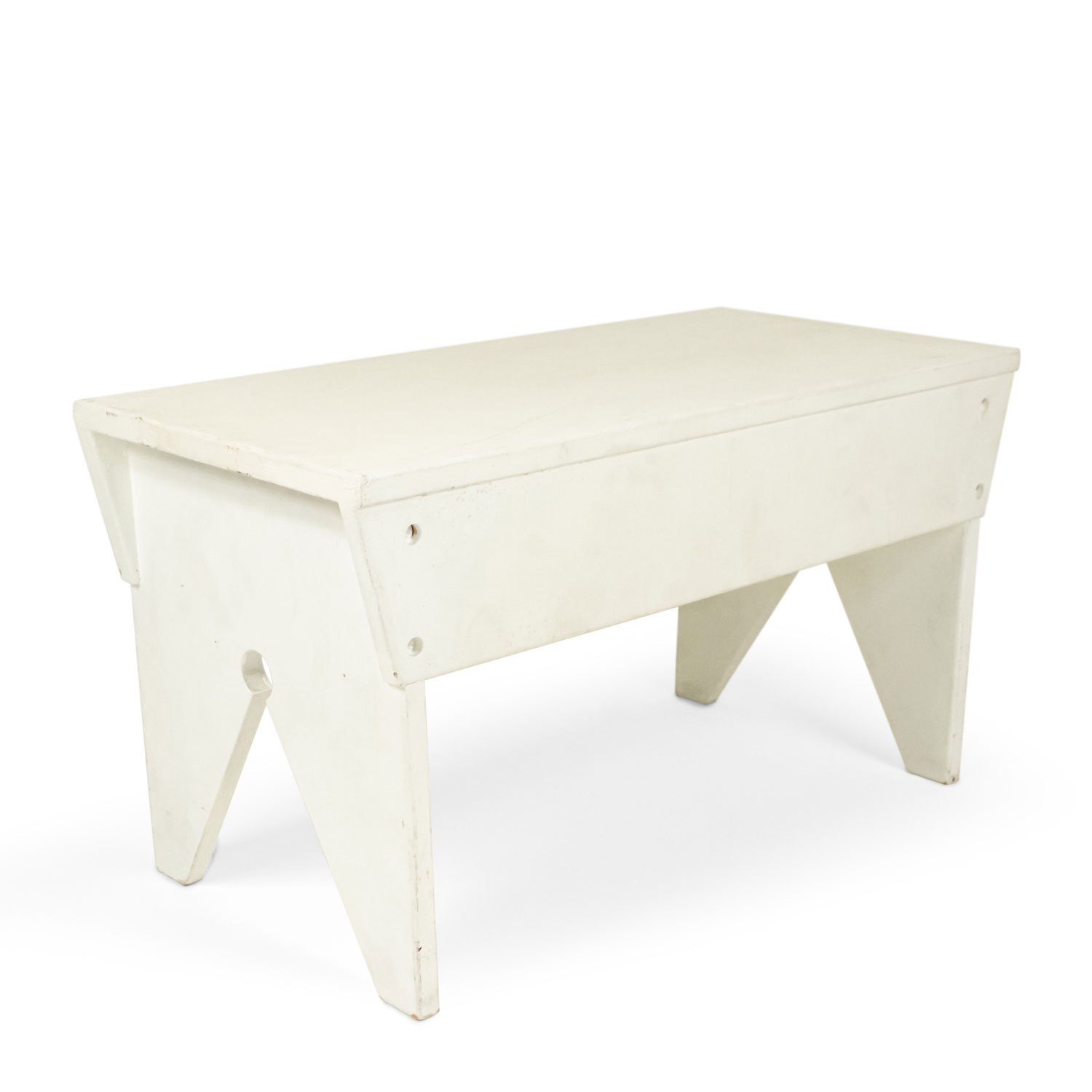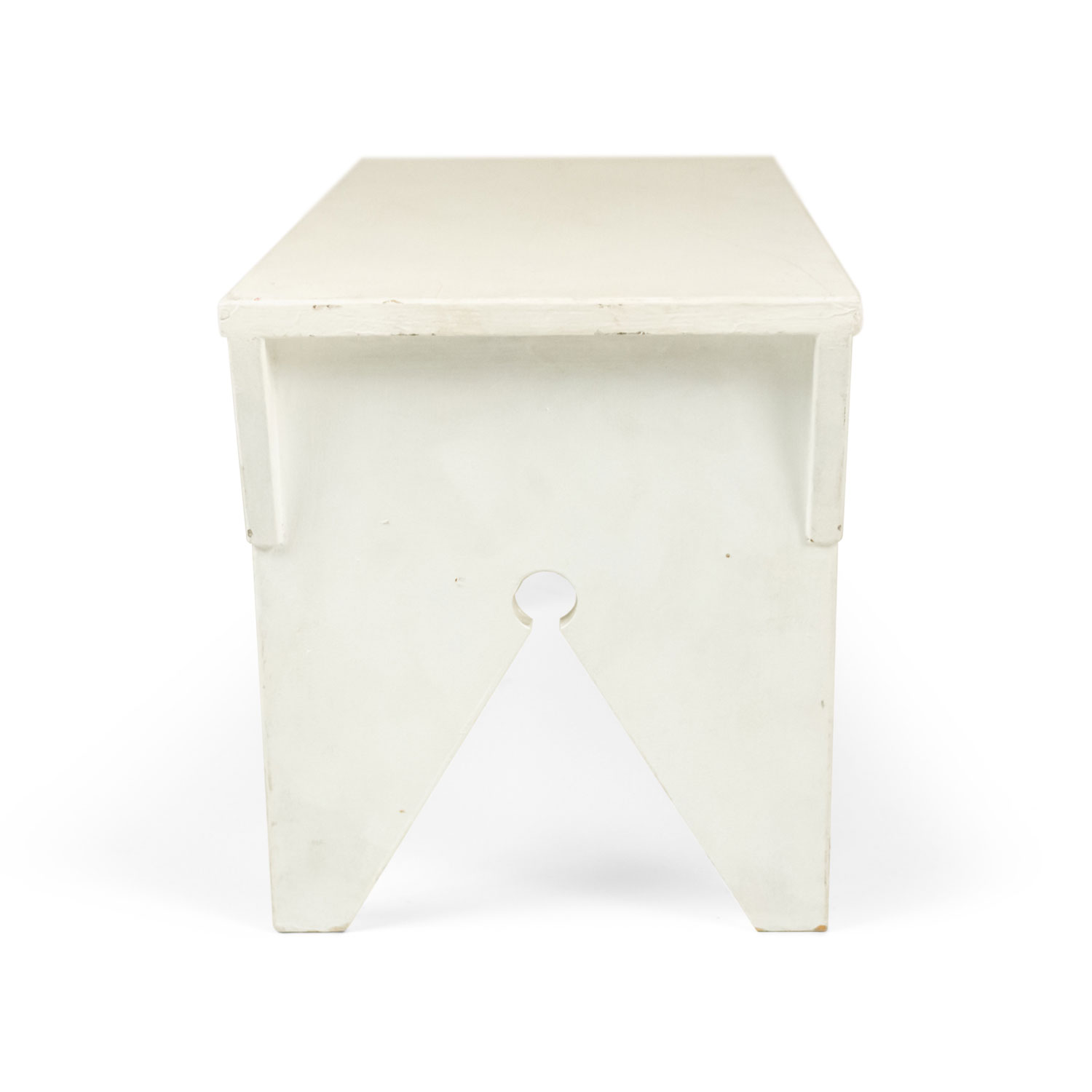 American Country Rustic style white painted bench with "V" shaped solid pedestal sides