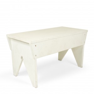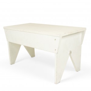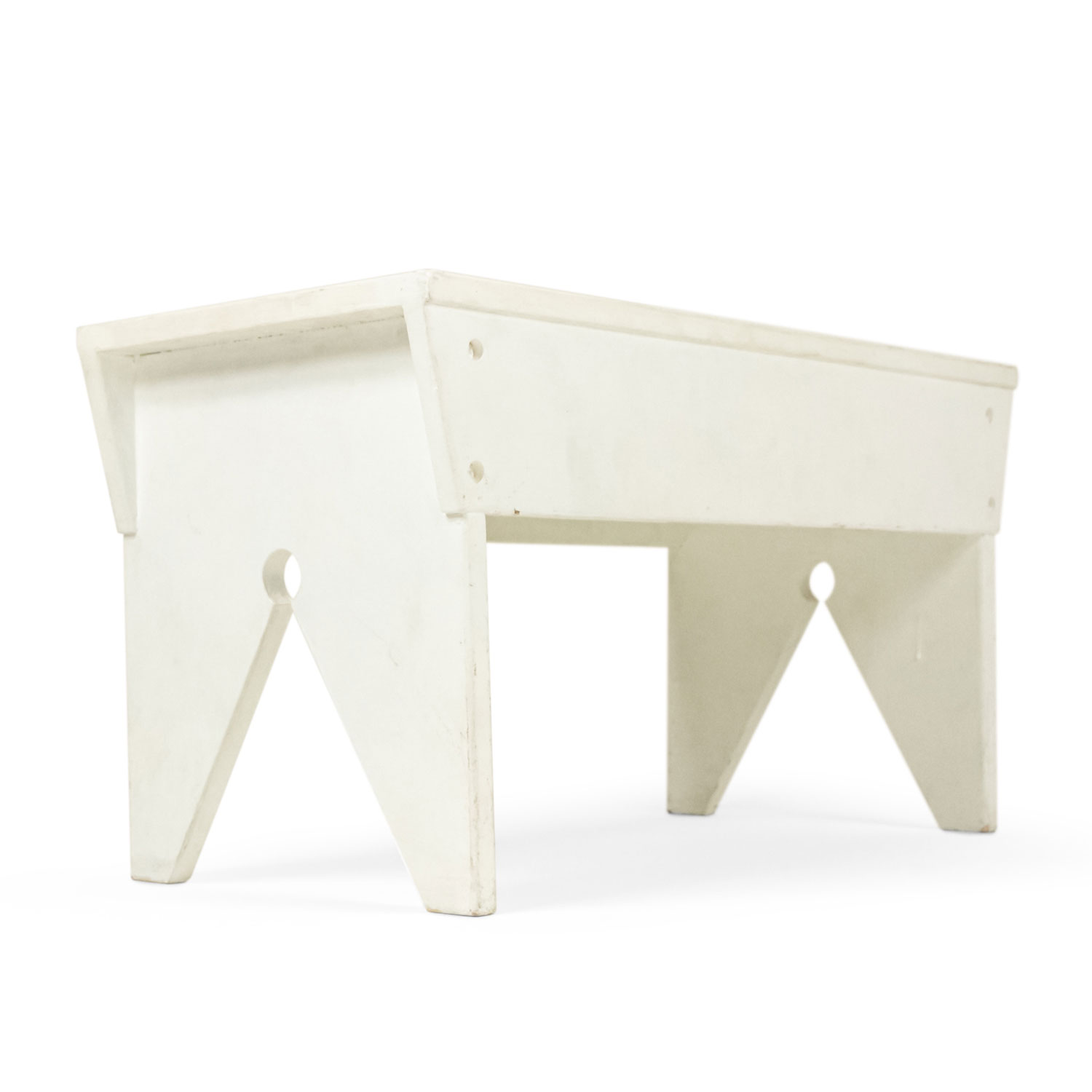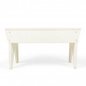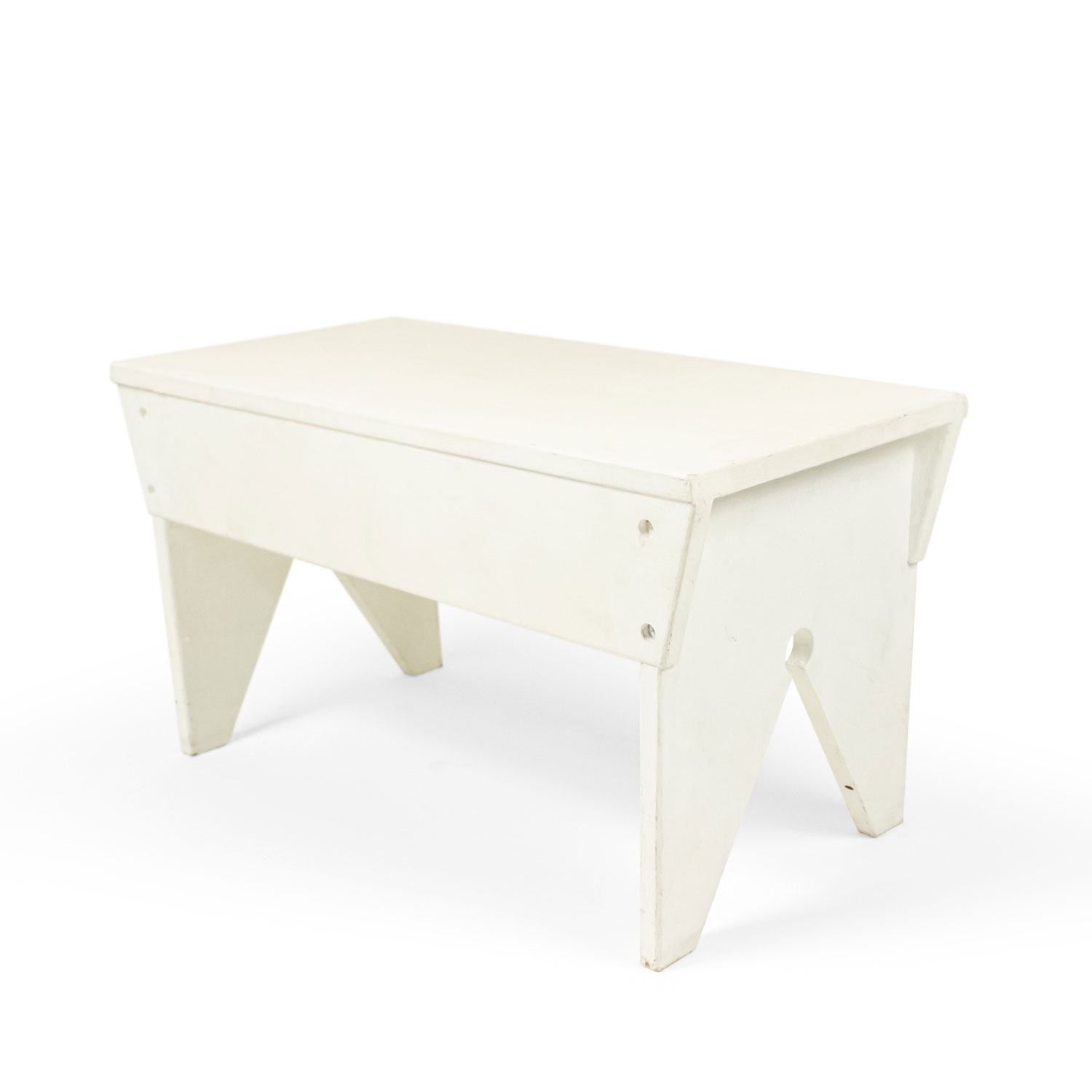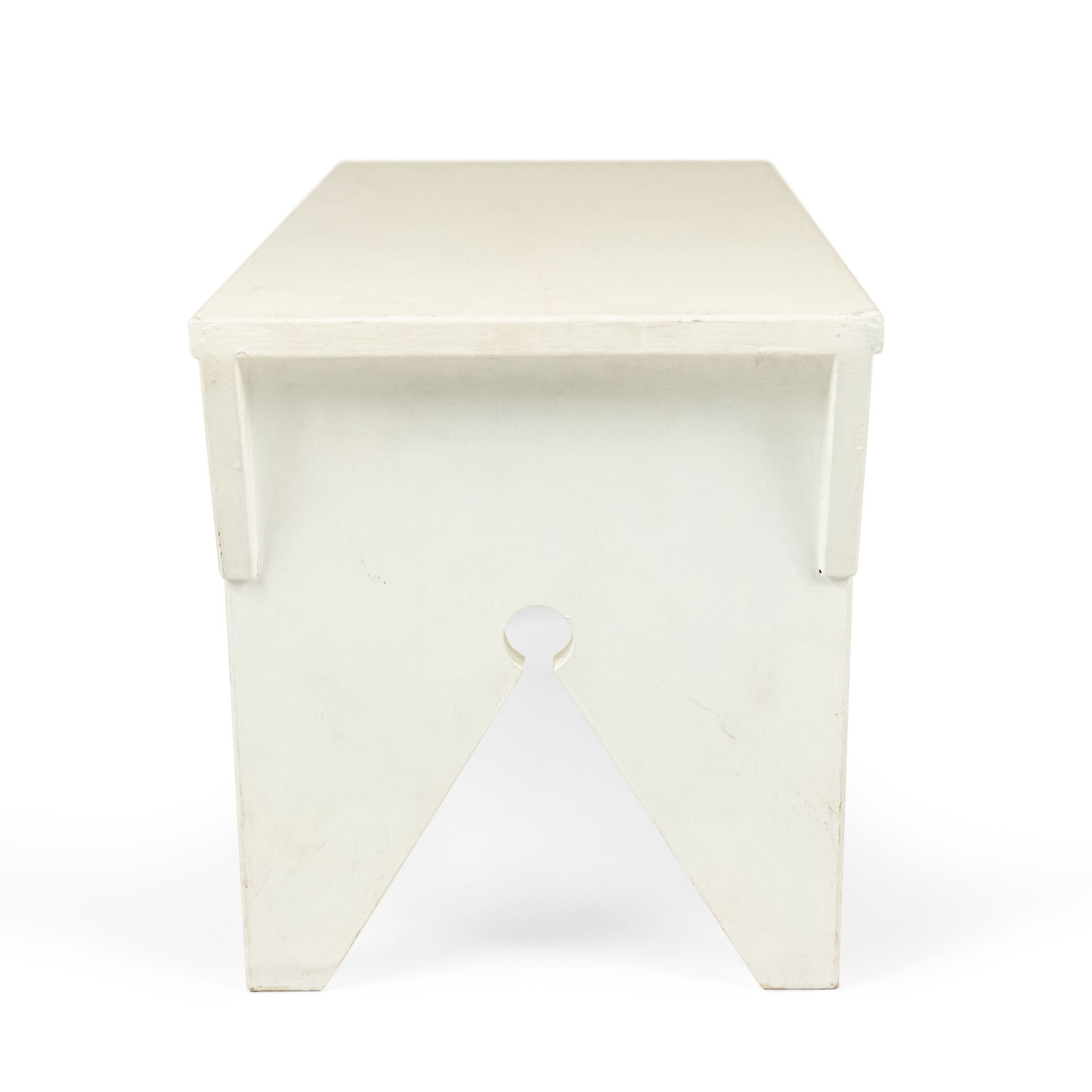 American Country Rustic style white painted bench with "V" shaped solid pedestal sides