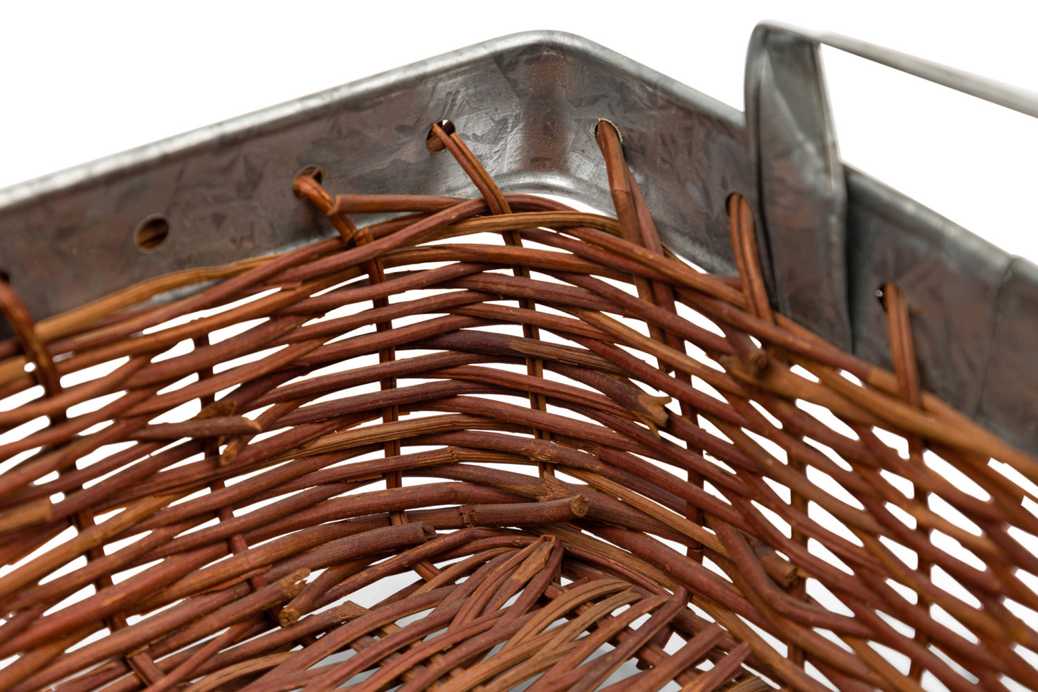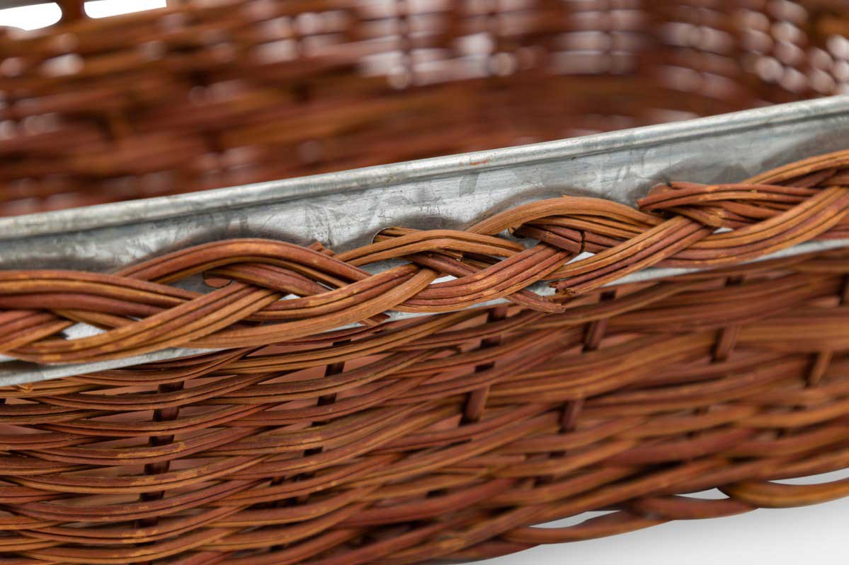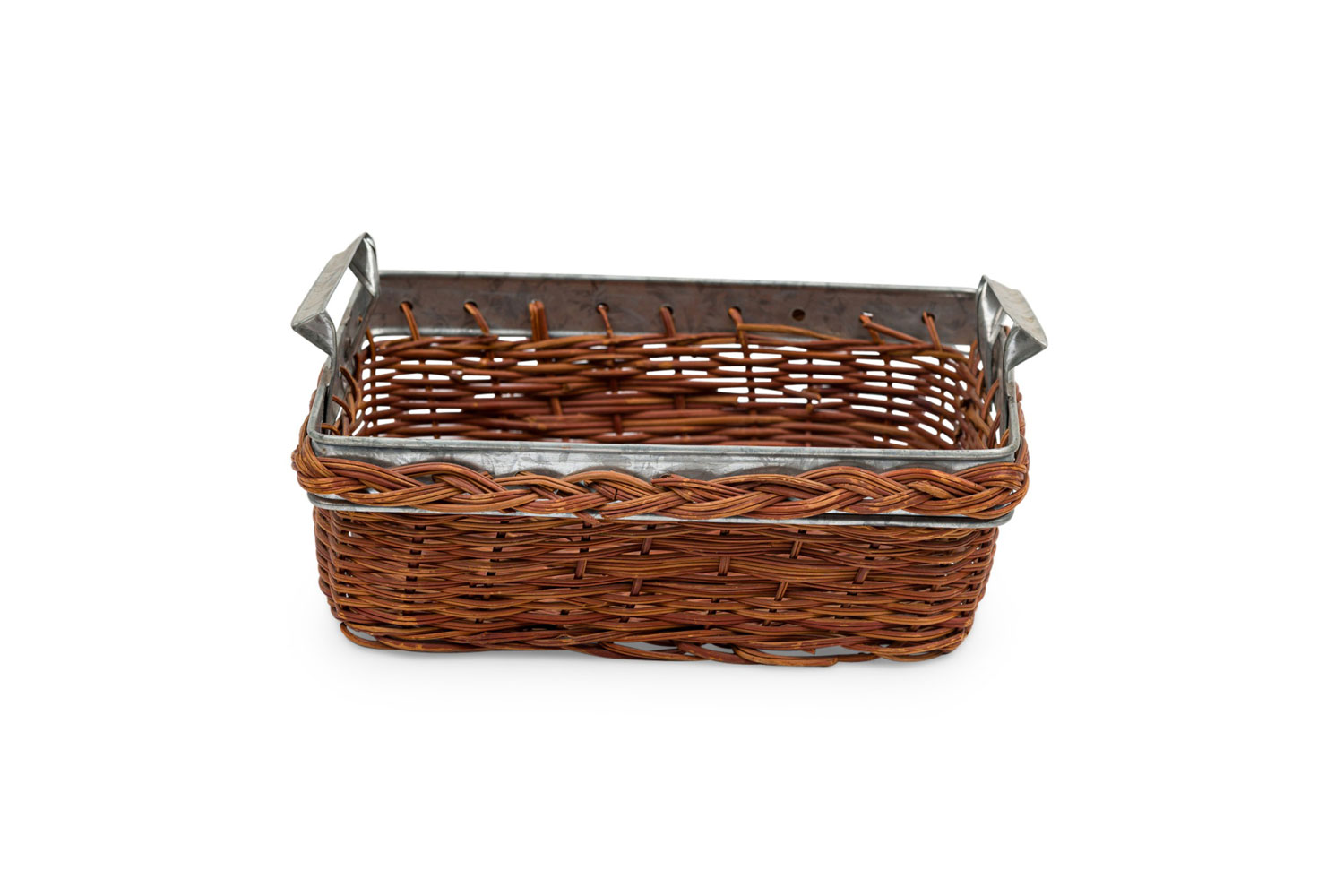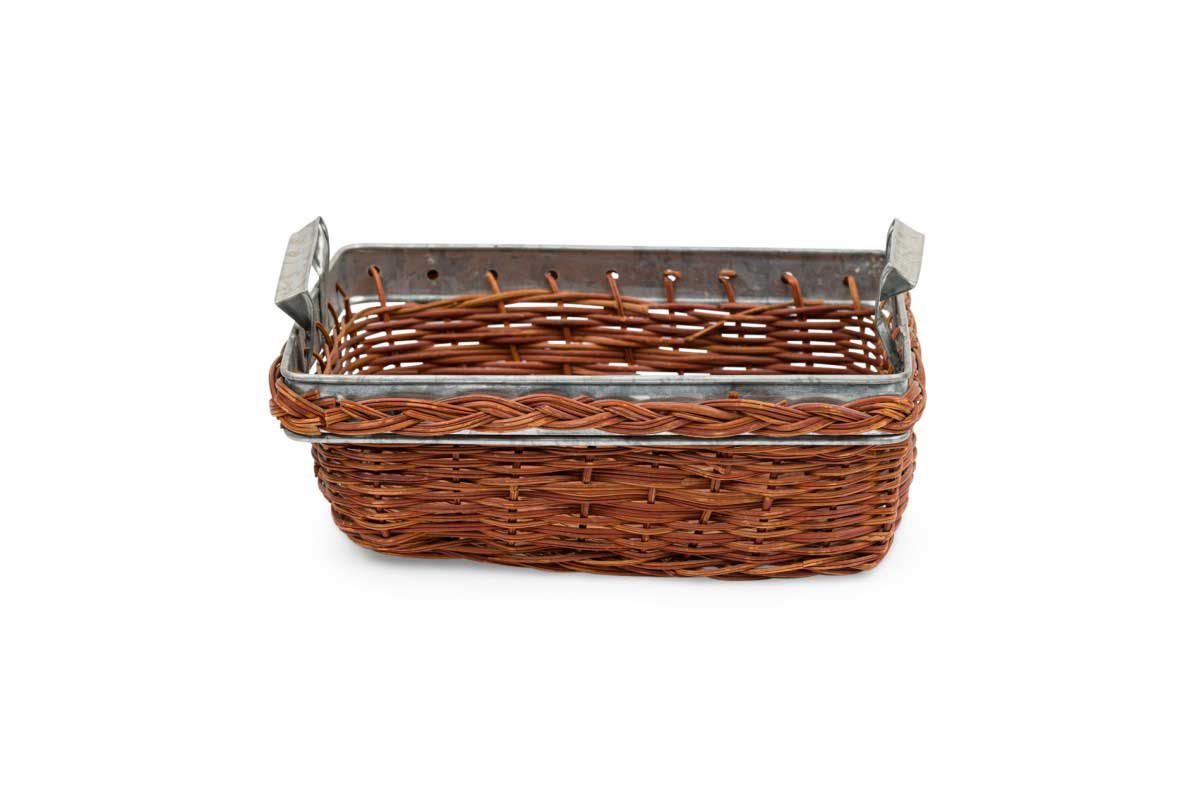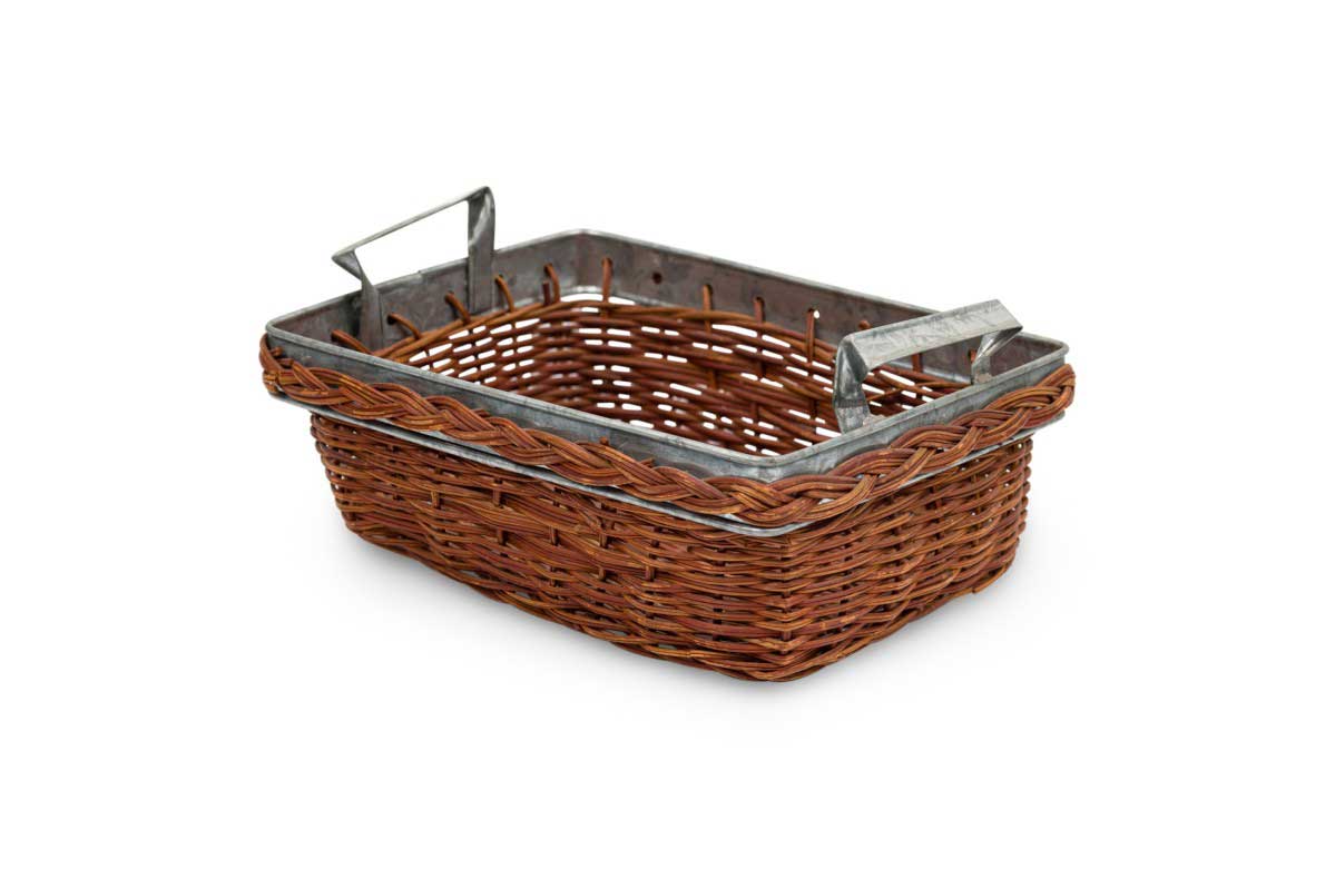 American Country natural wicker and metal trim small rectangular tray with side handles