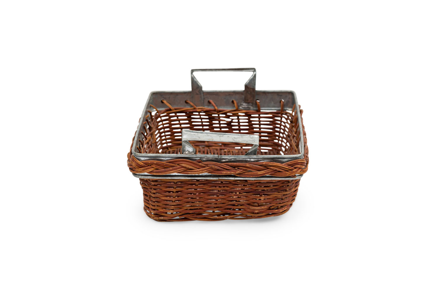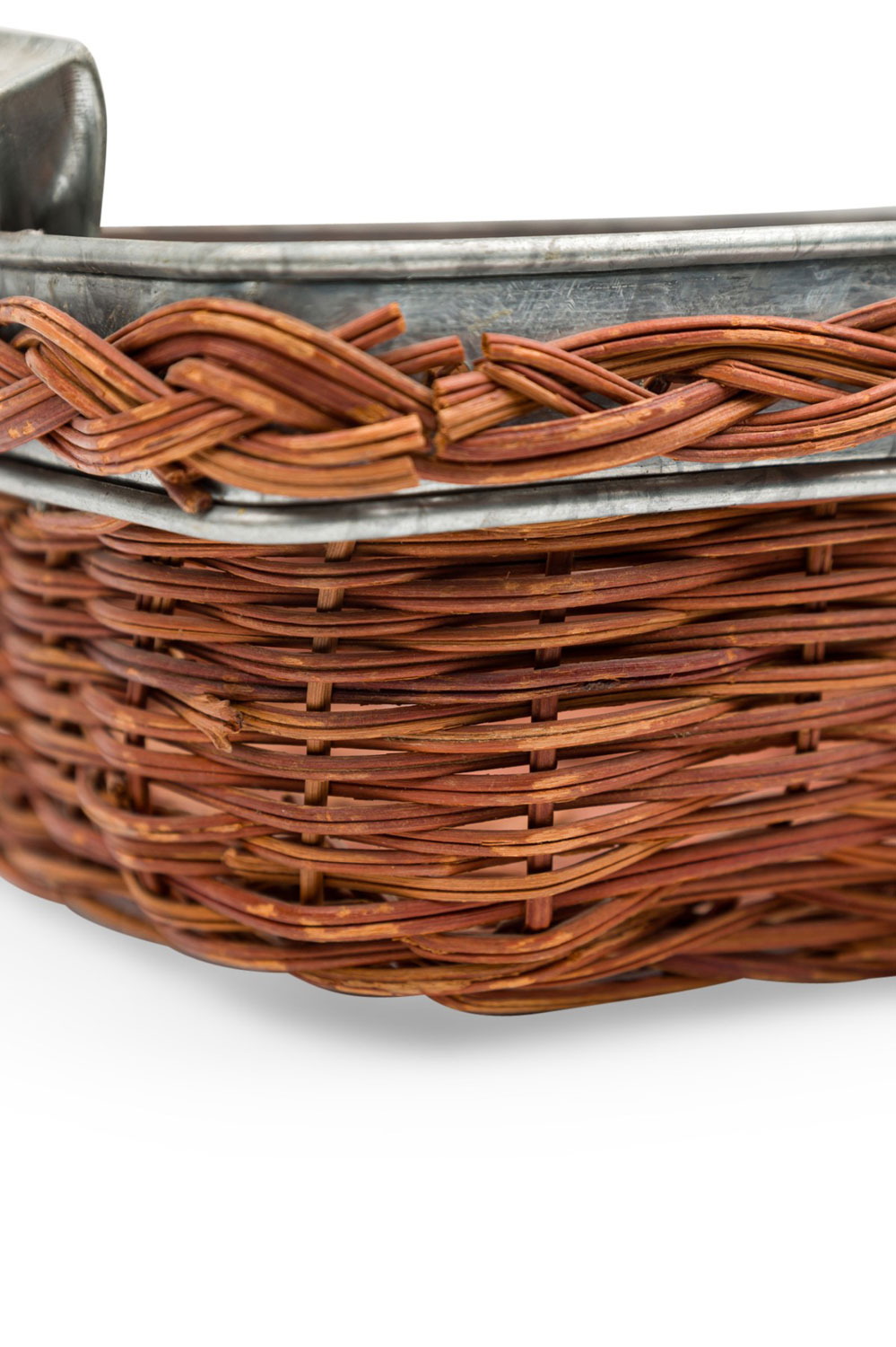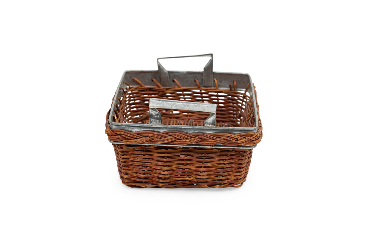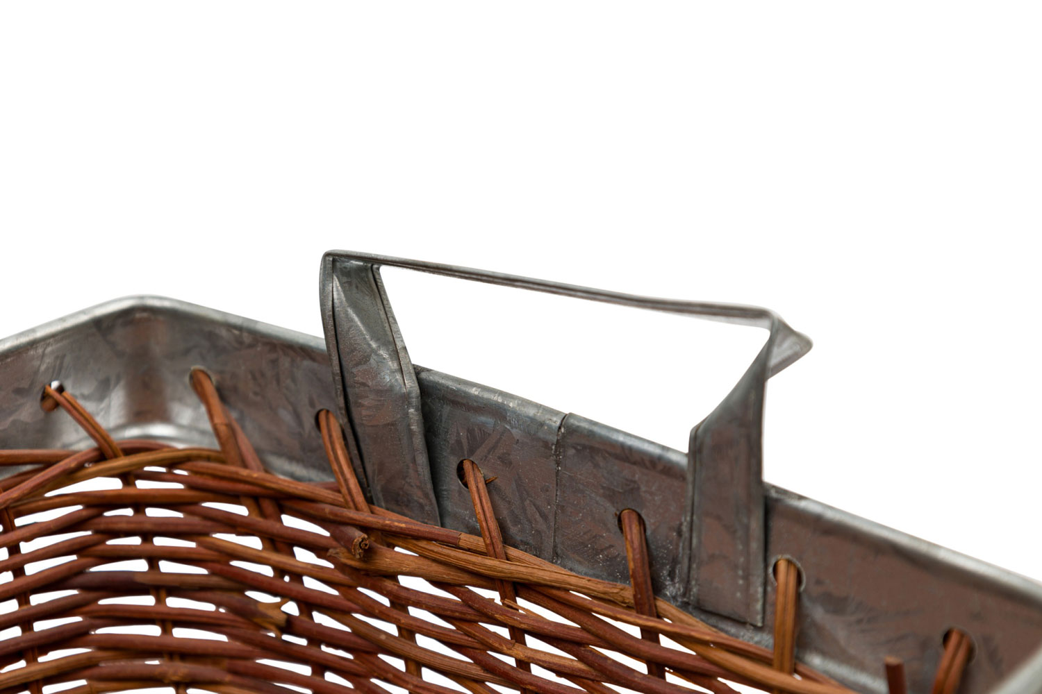 American Country natural wicker and metal trim small rectangular tray with side handles