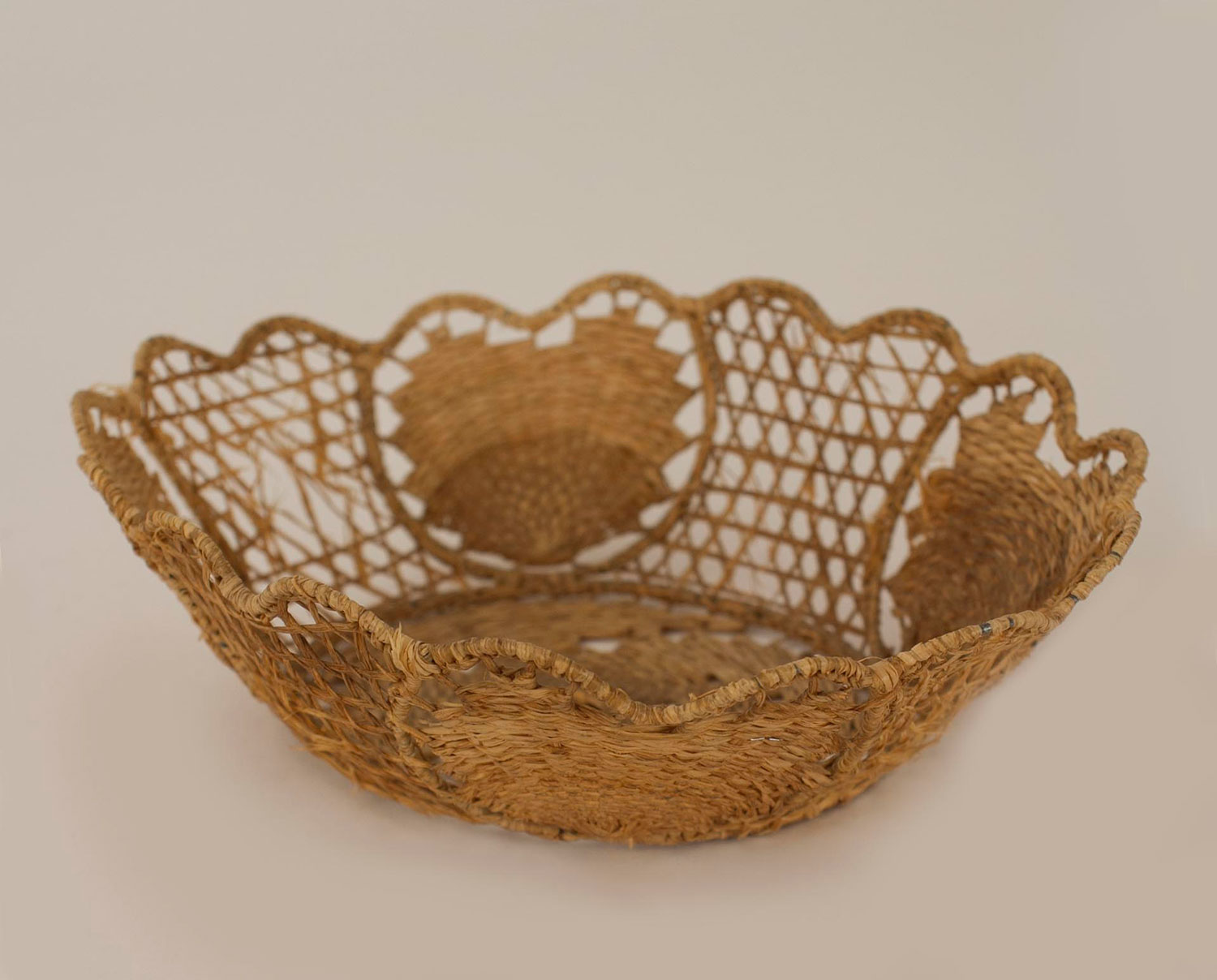 American Country natural wicker basket (tray) with an oval scalloped top