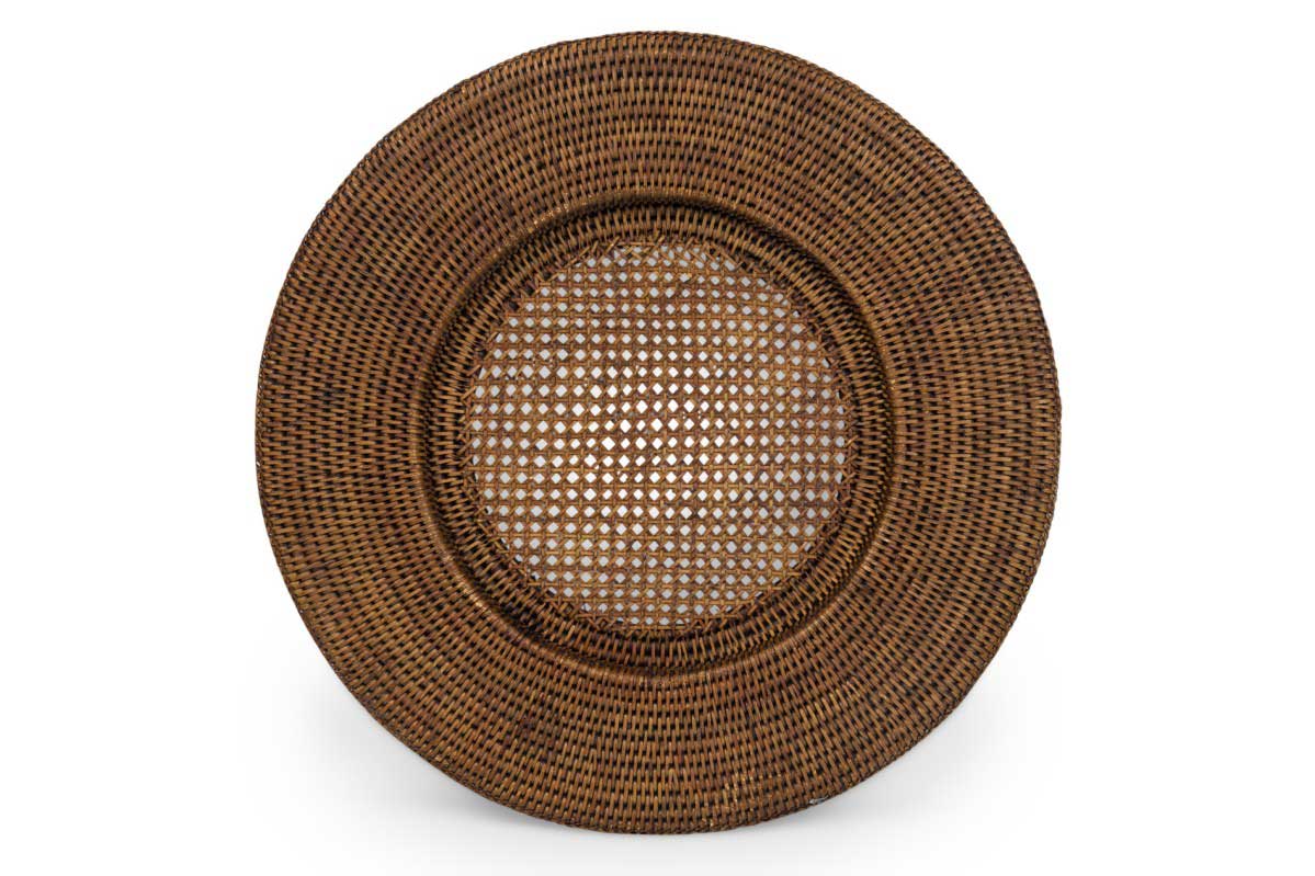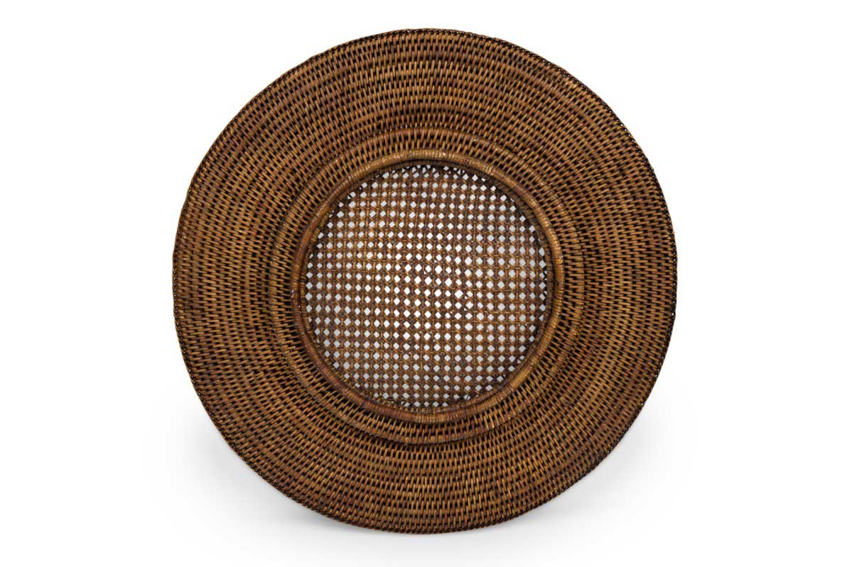 4 American Country large dark wicker and cane center platters (tray) (PRICED EACH)