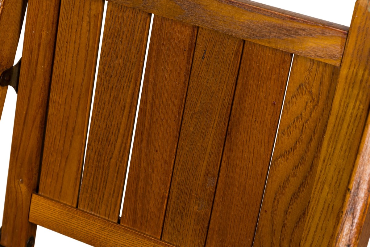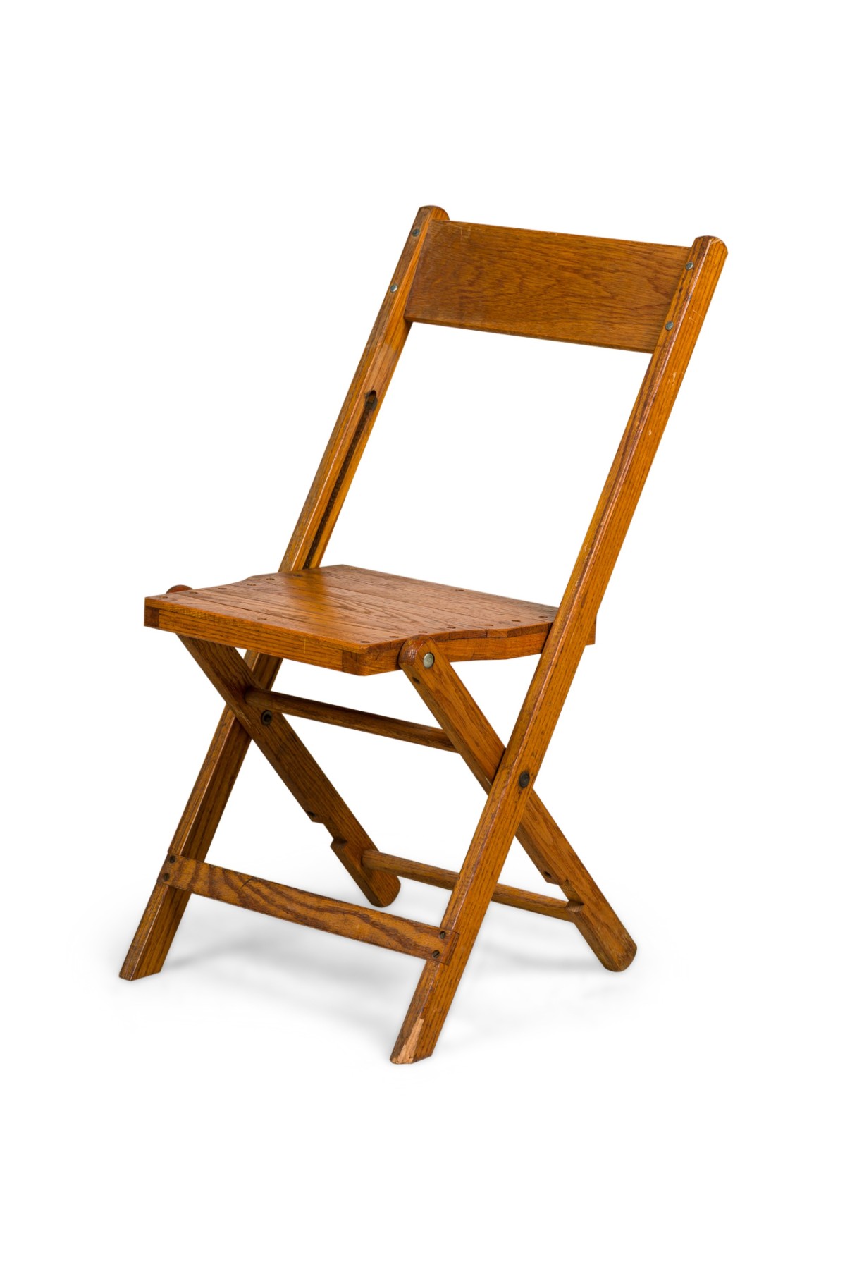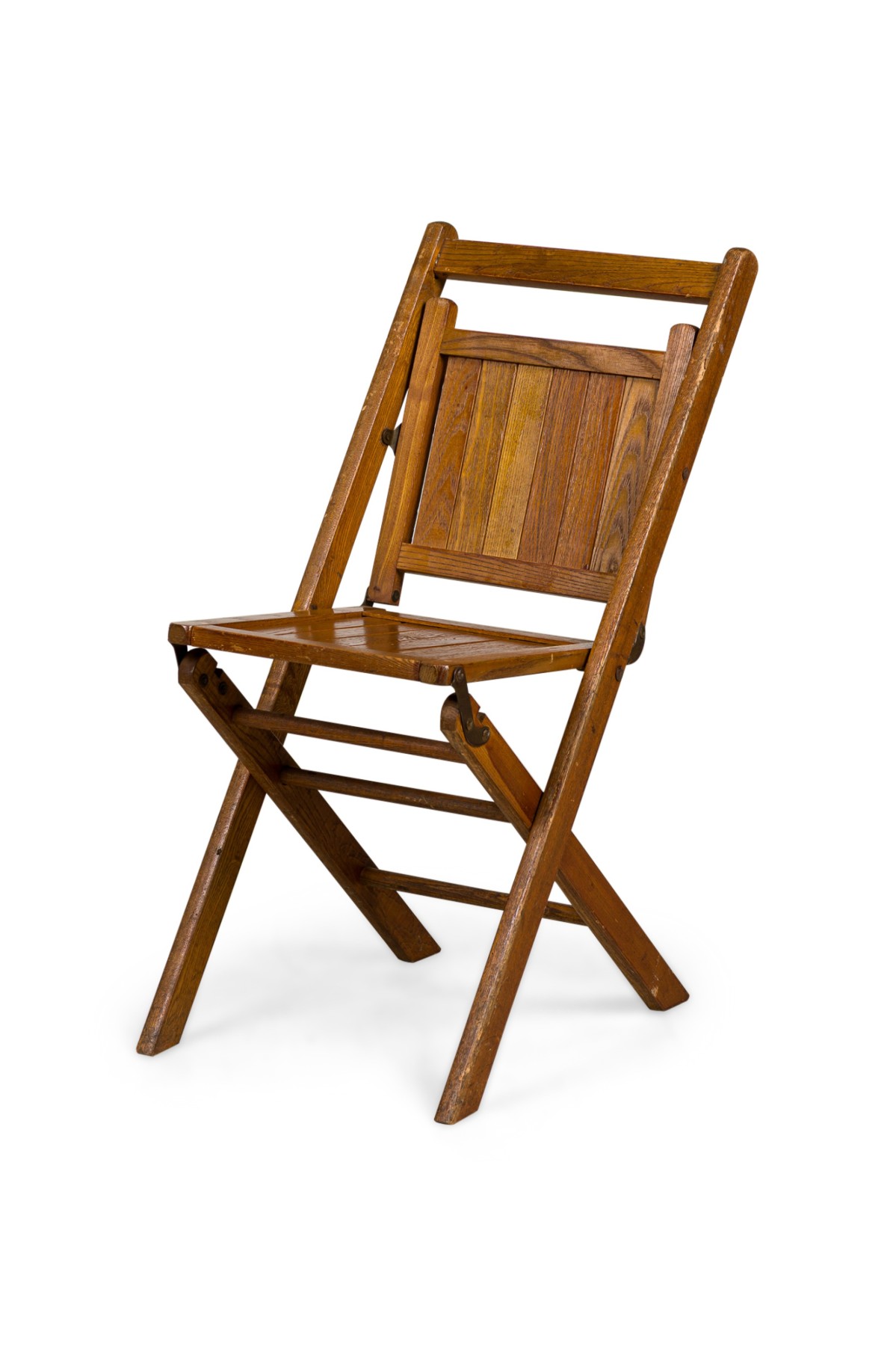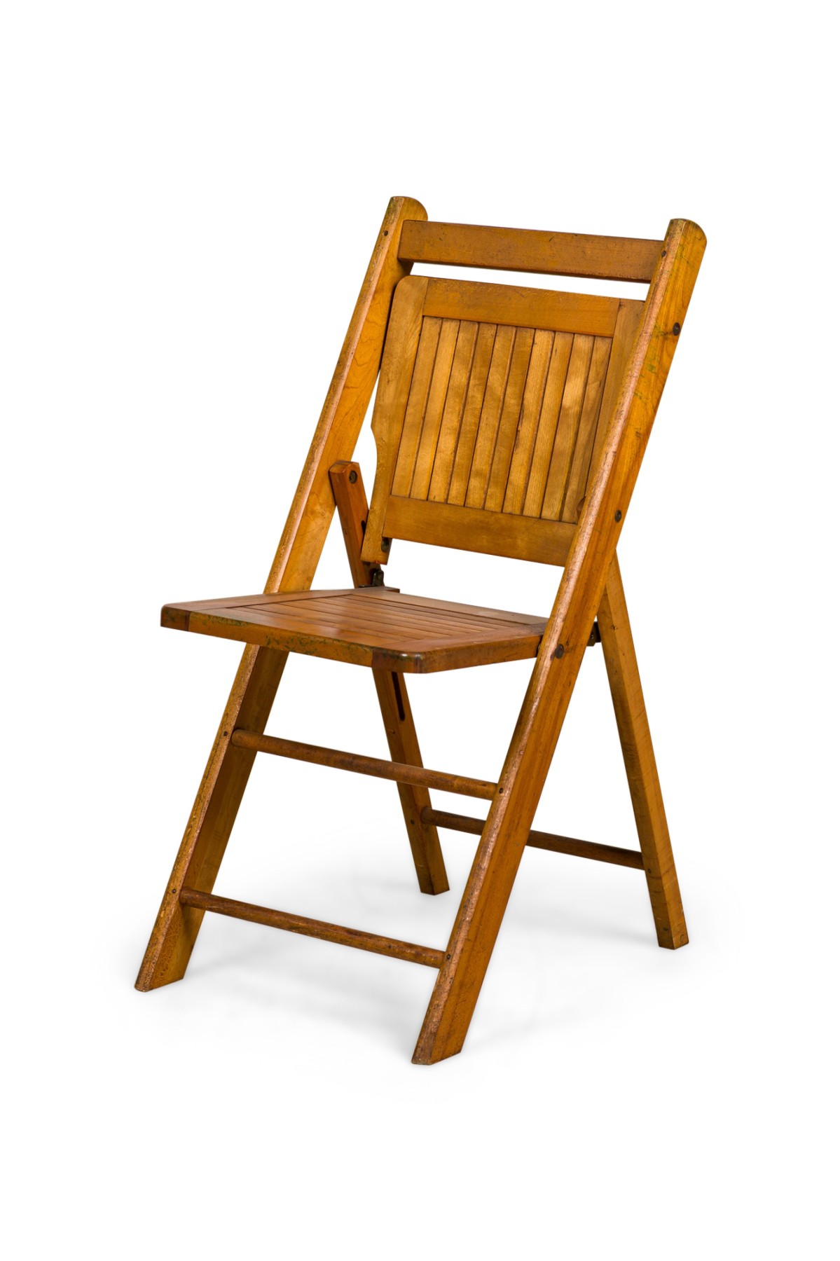 80 American Country wood folding chairs (various) with slatted seats and backrests ending on A-frame design legs. (PRICED EACH)