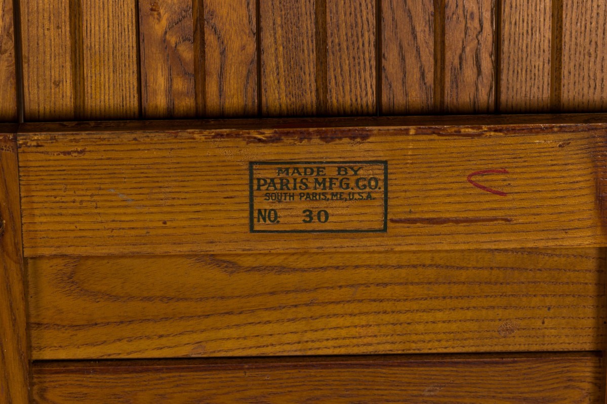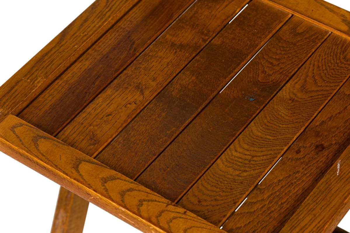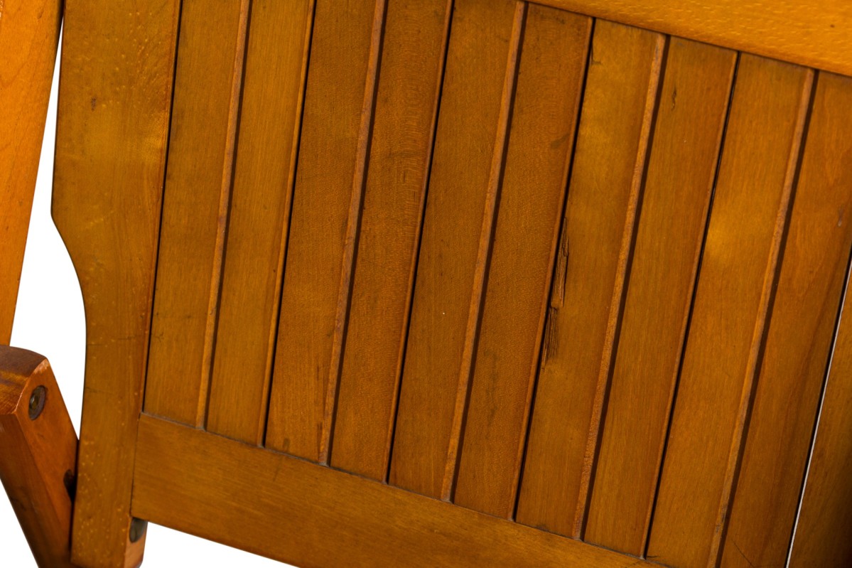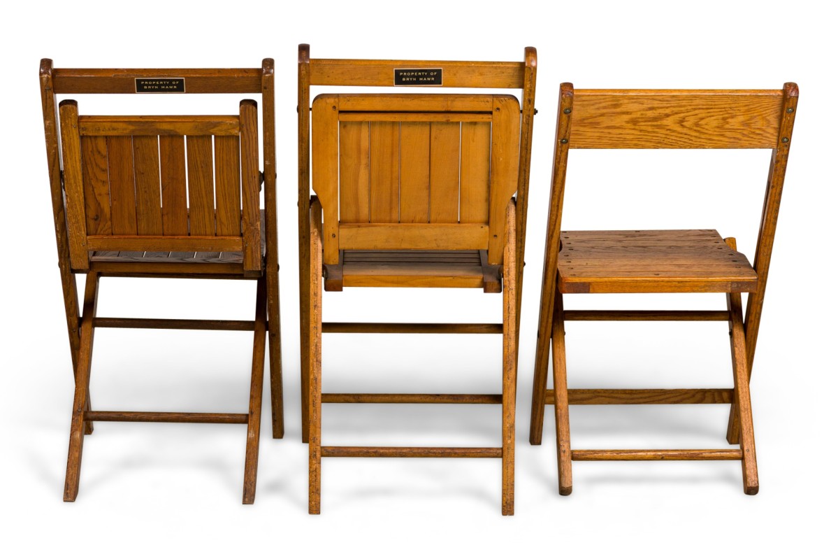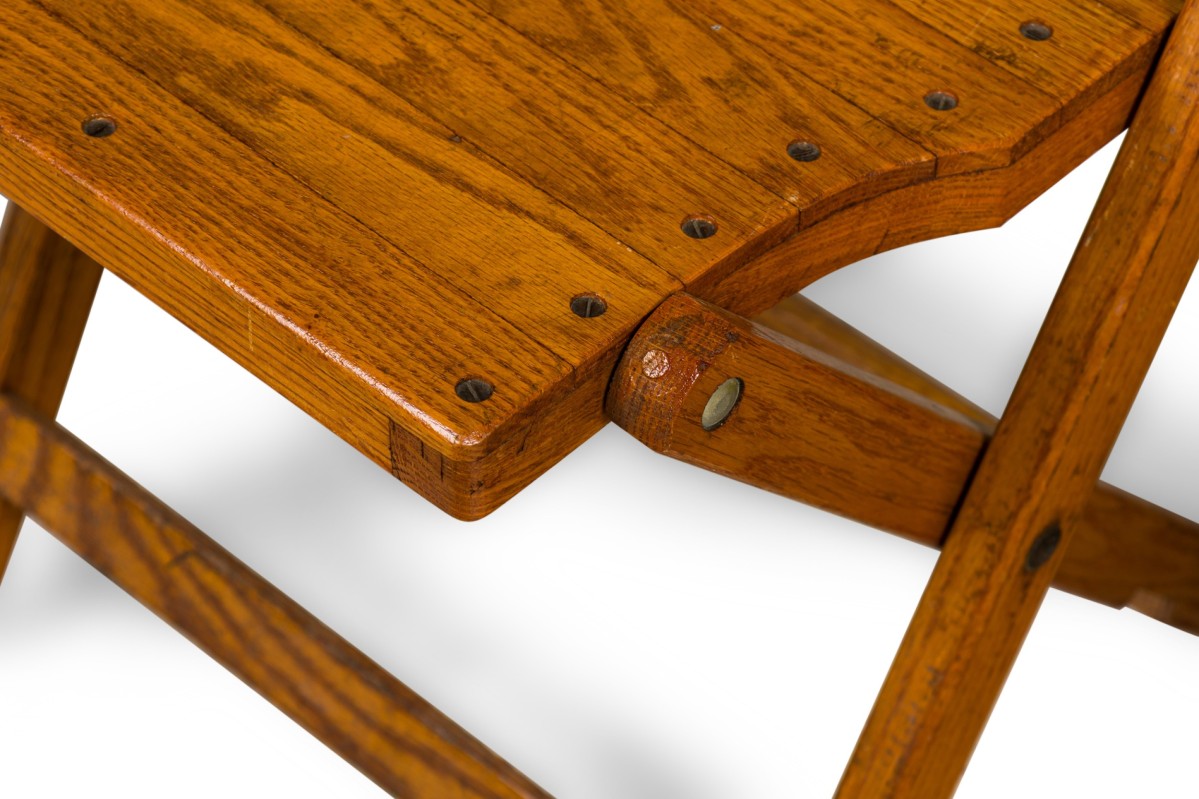 80 American Country wood folding chairs (various) with slatted seats and backrests ending on A-frame design legs. (PRICED EACH)