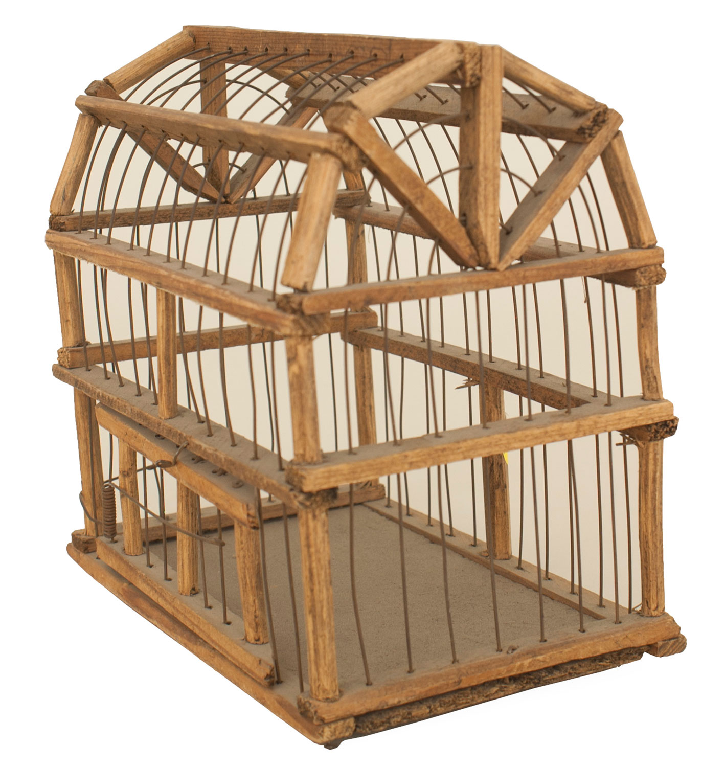 American Country small wood and wire bird cage with a rounded roof