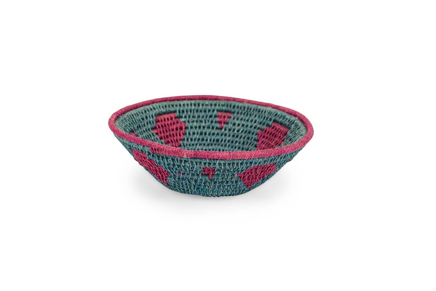 American Country tightly woven blue small basket bowl with dark red trim and top edge