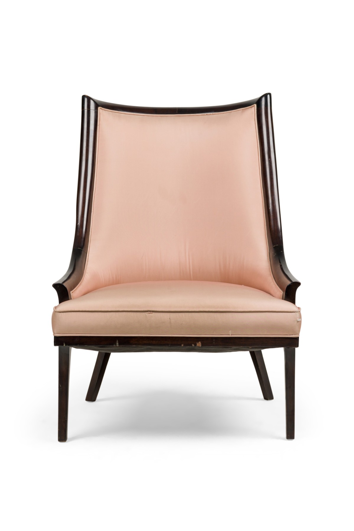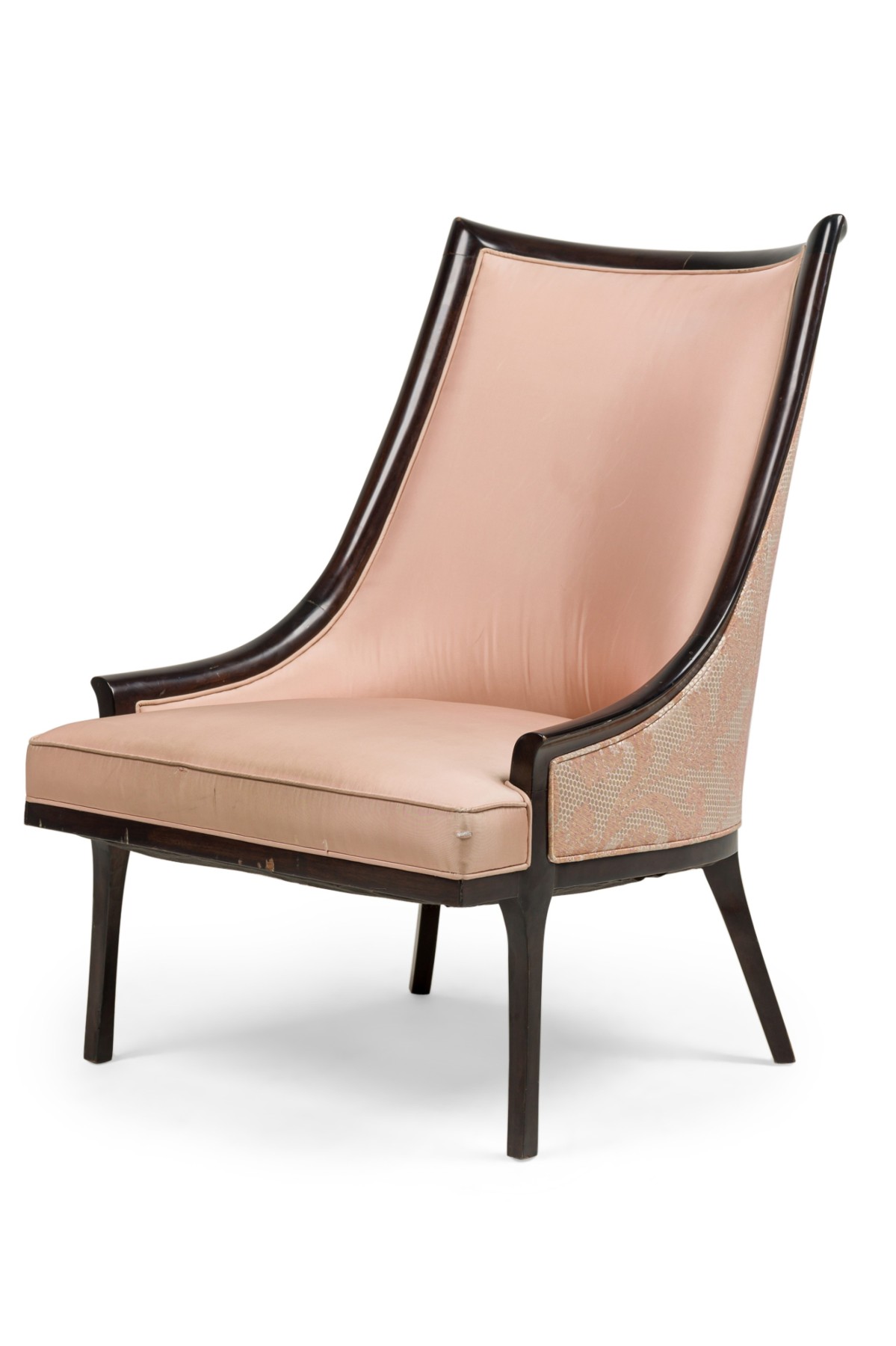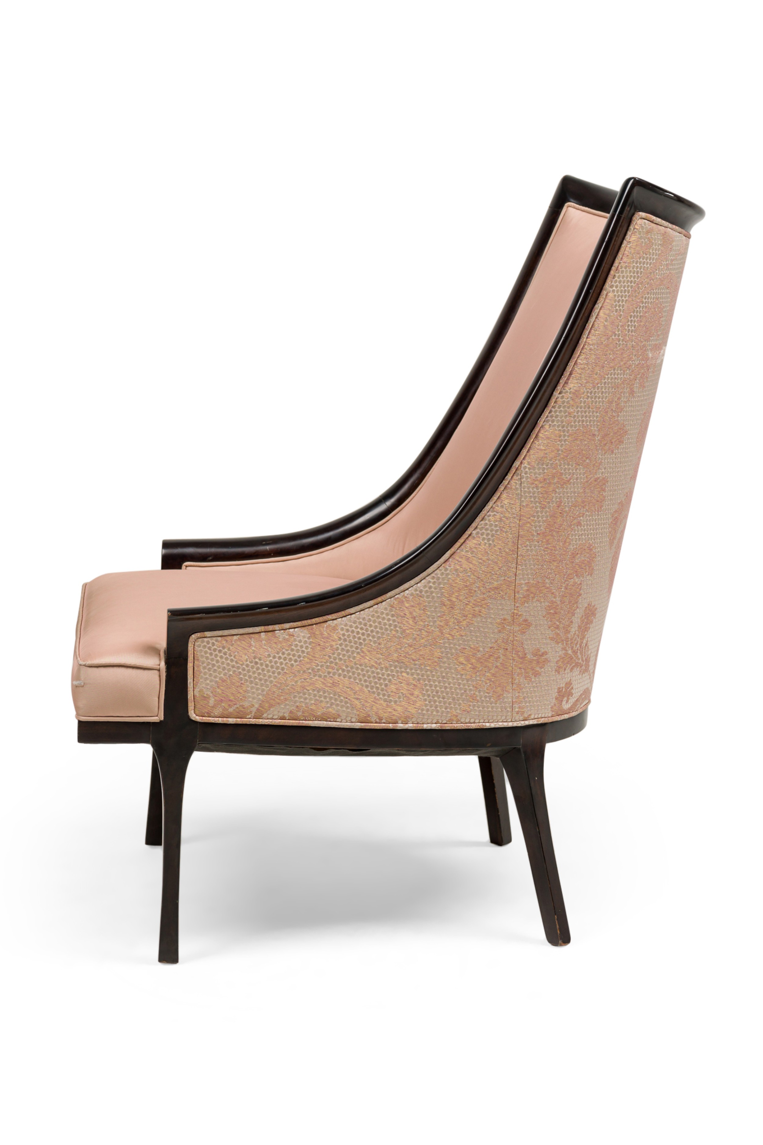 2 American 1950s ebonized arm chairs with gondola form sleigh back design (PRICED EACH)