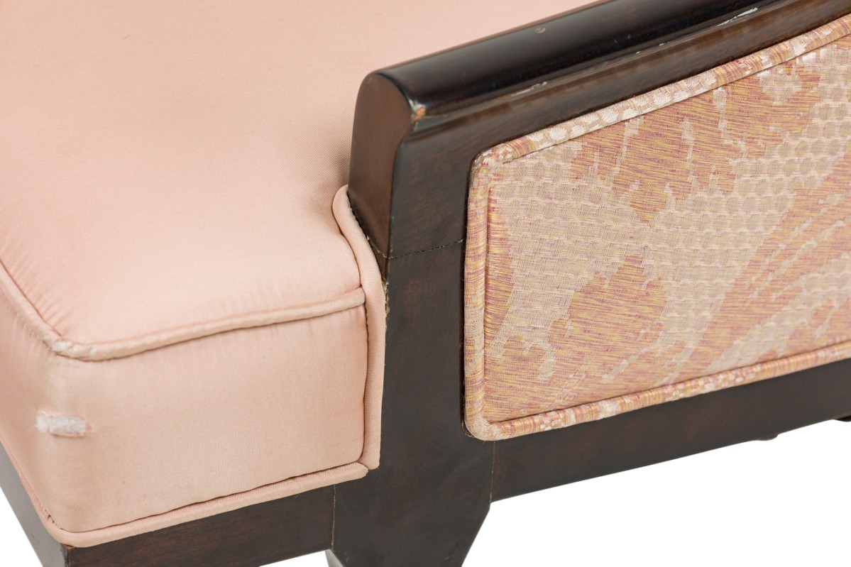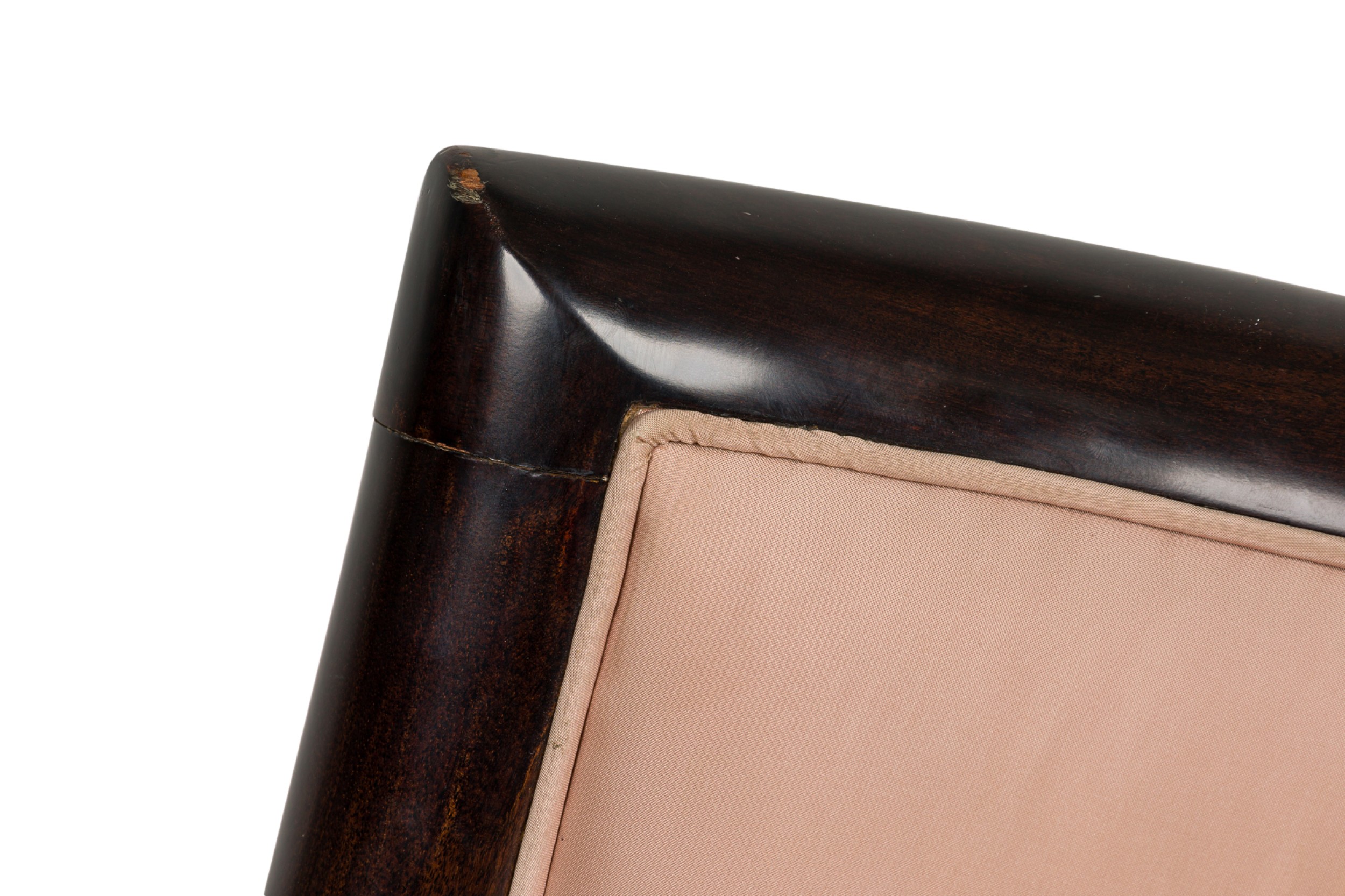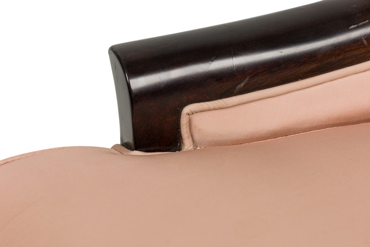 2 American 1950s ebonized arm chairs with gondola form sleigh back design (PRICED EACH)