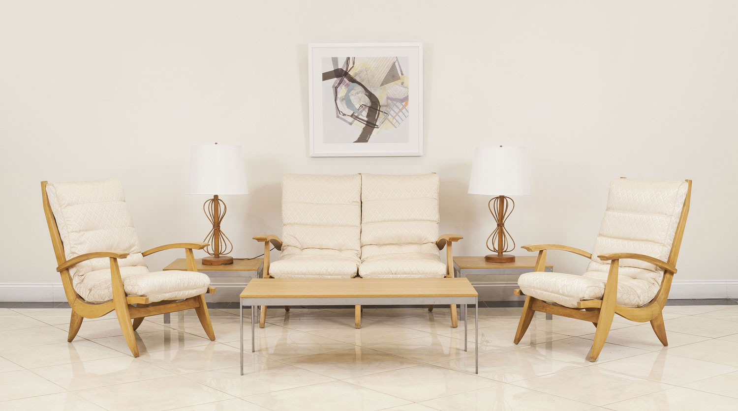 2 Bamboo Mid-Century table lamps with an open design on a round oak base (PRICED EACH)