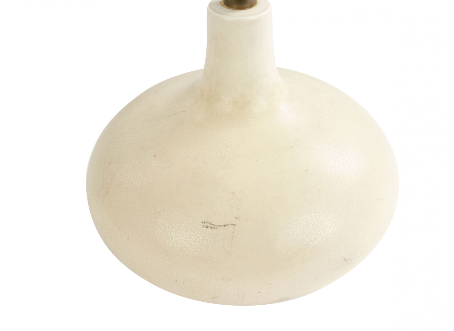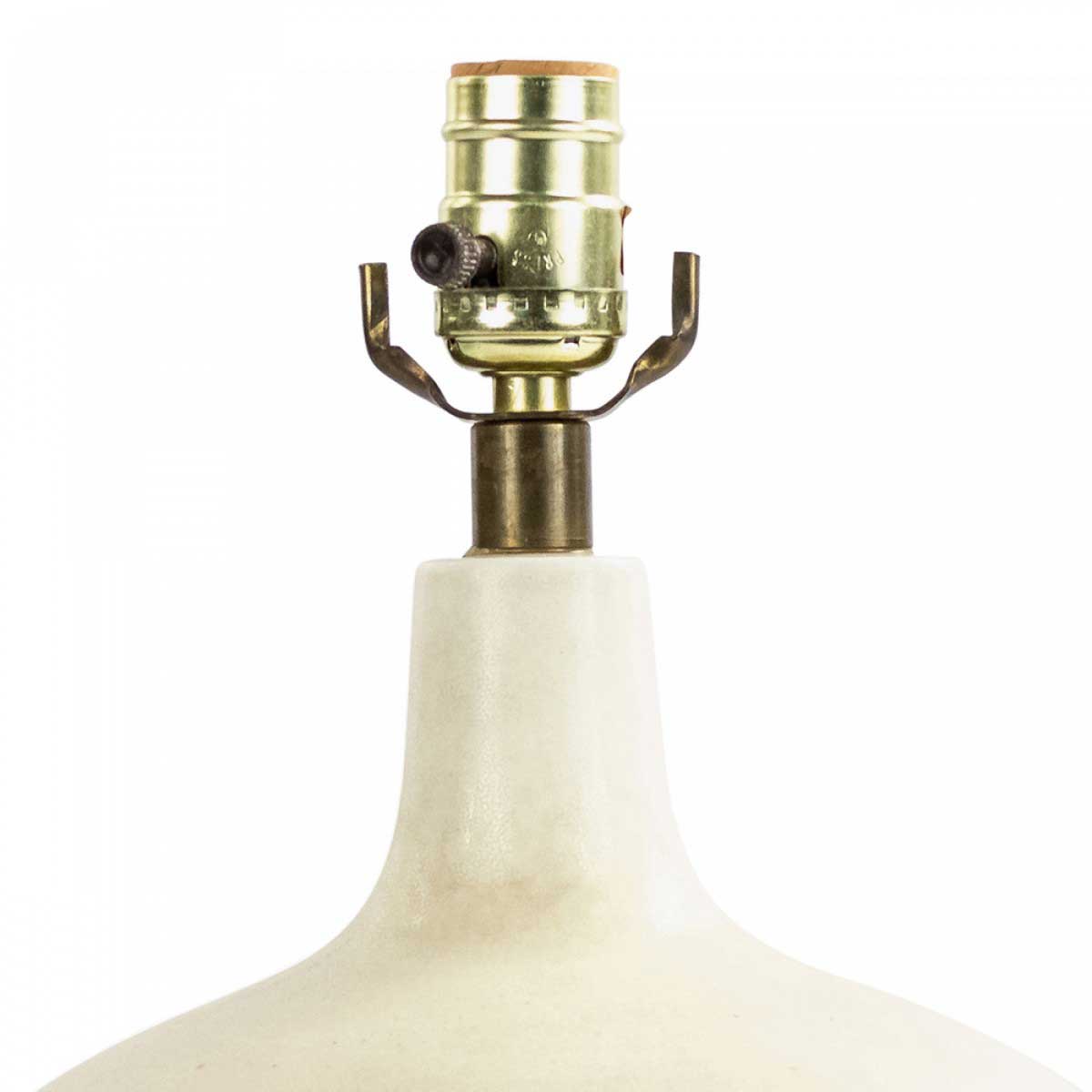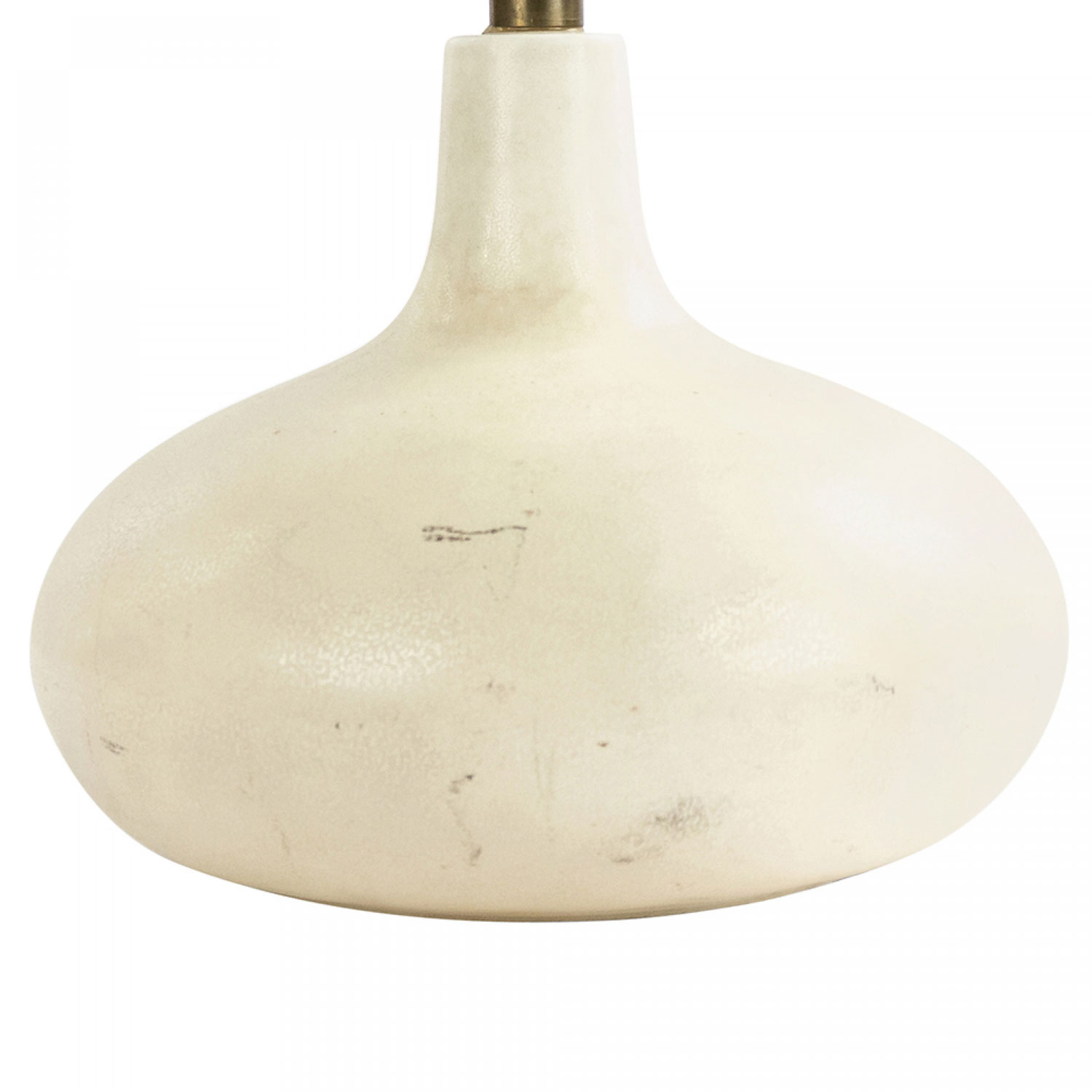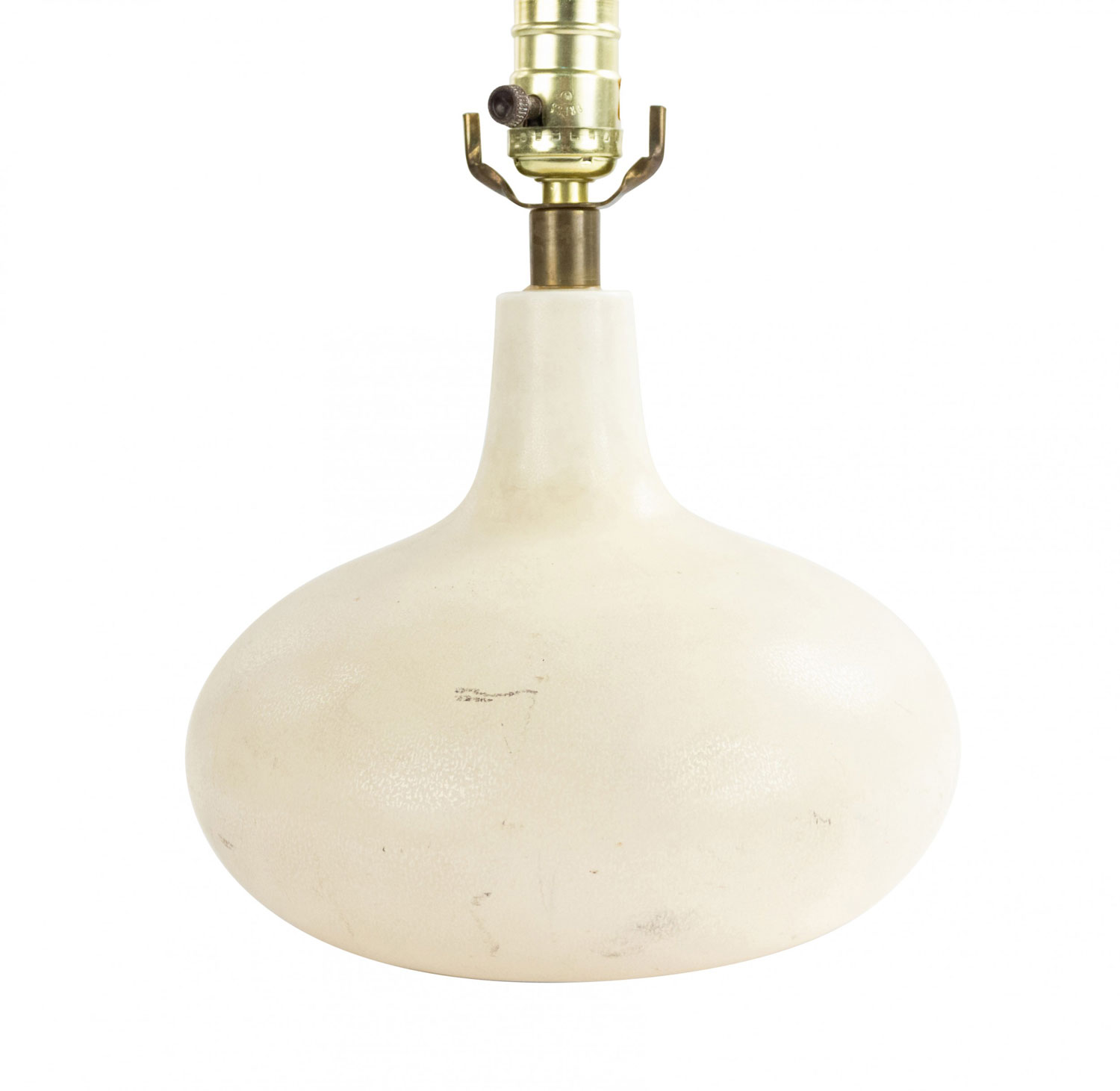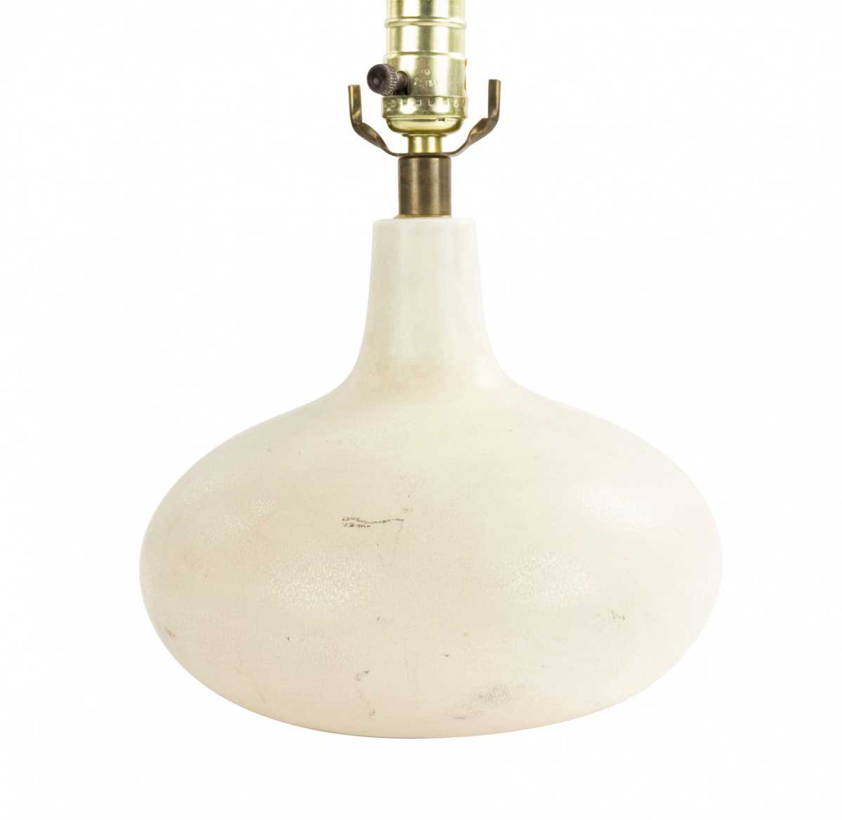 American Mid-Century cream porcelain table lamp with a low bulbous base.