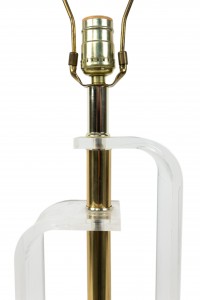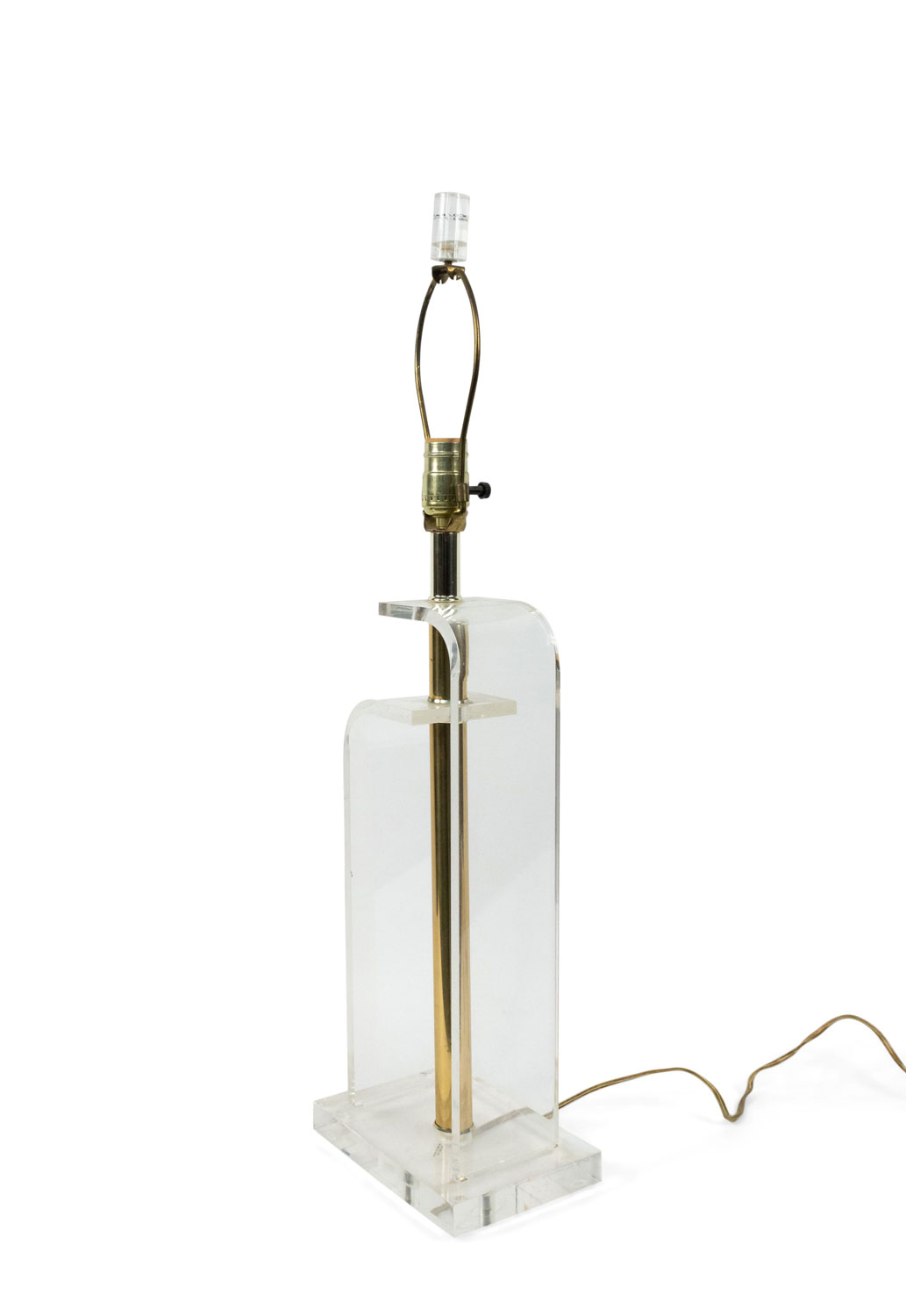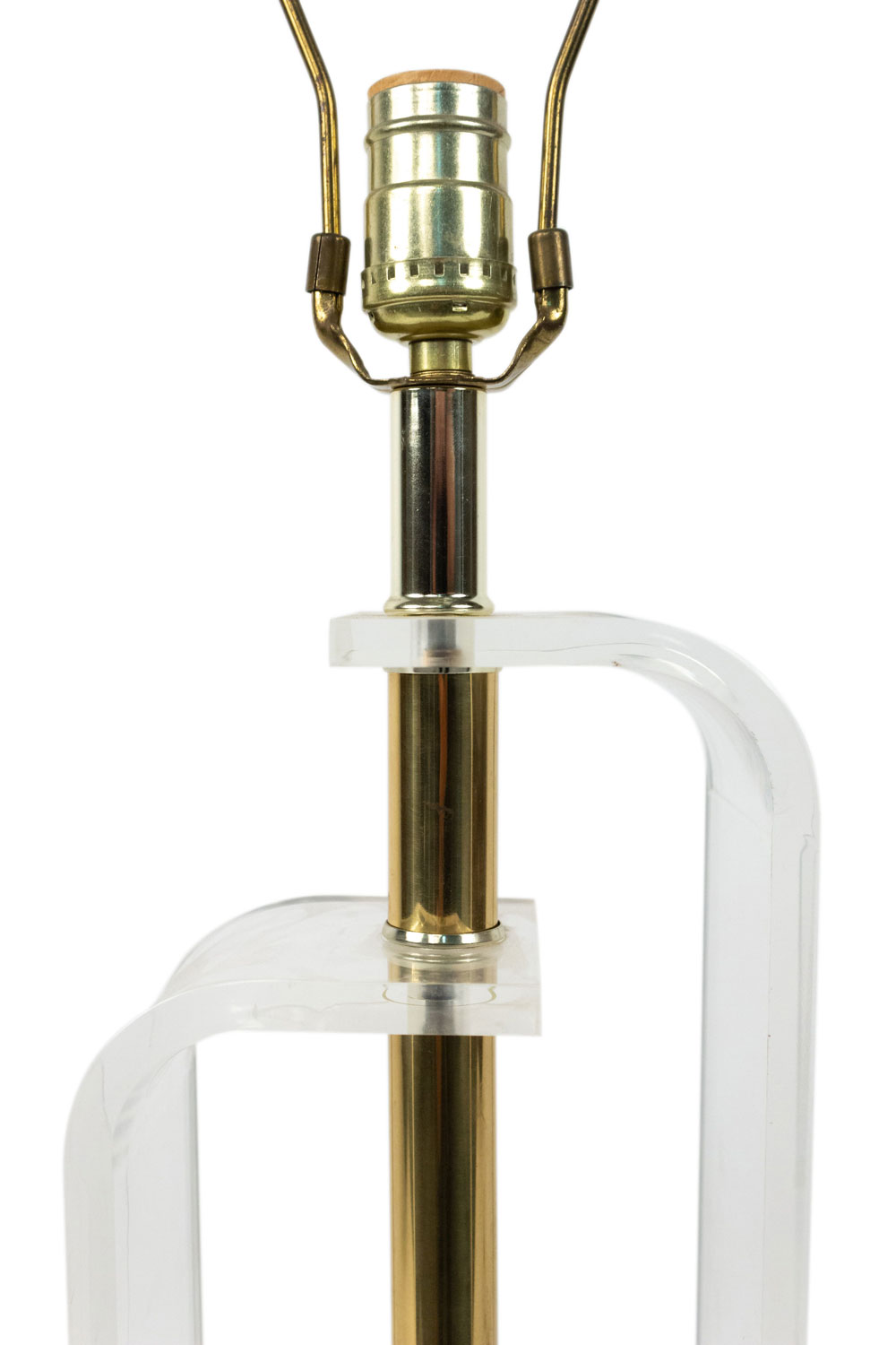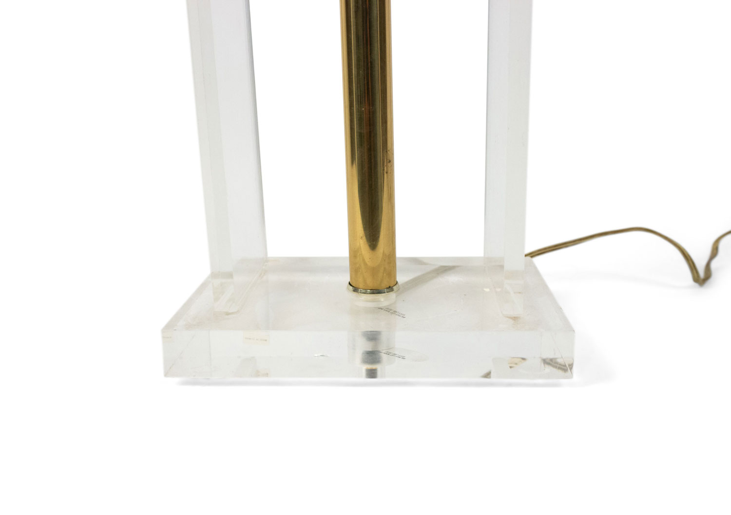 American Mid-Century chrome cube base table lamp suspending 4 movable rectangular Lucite panels.
