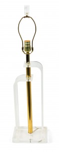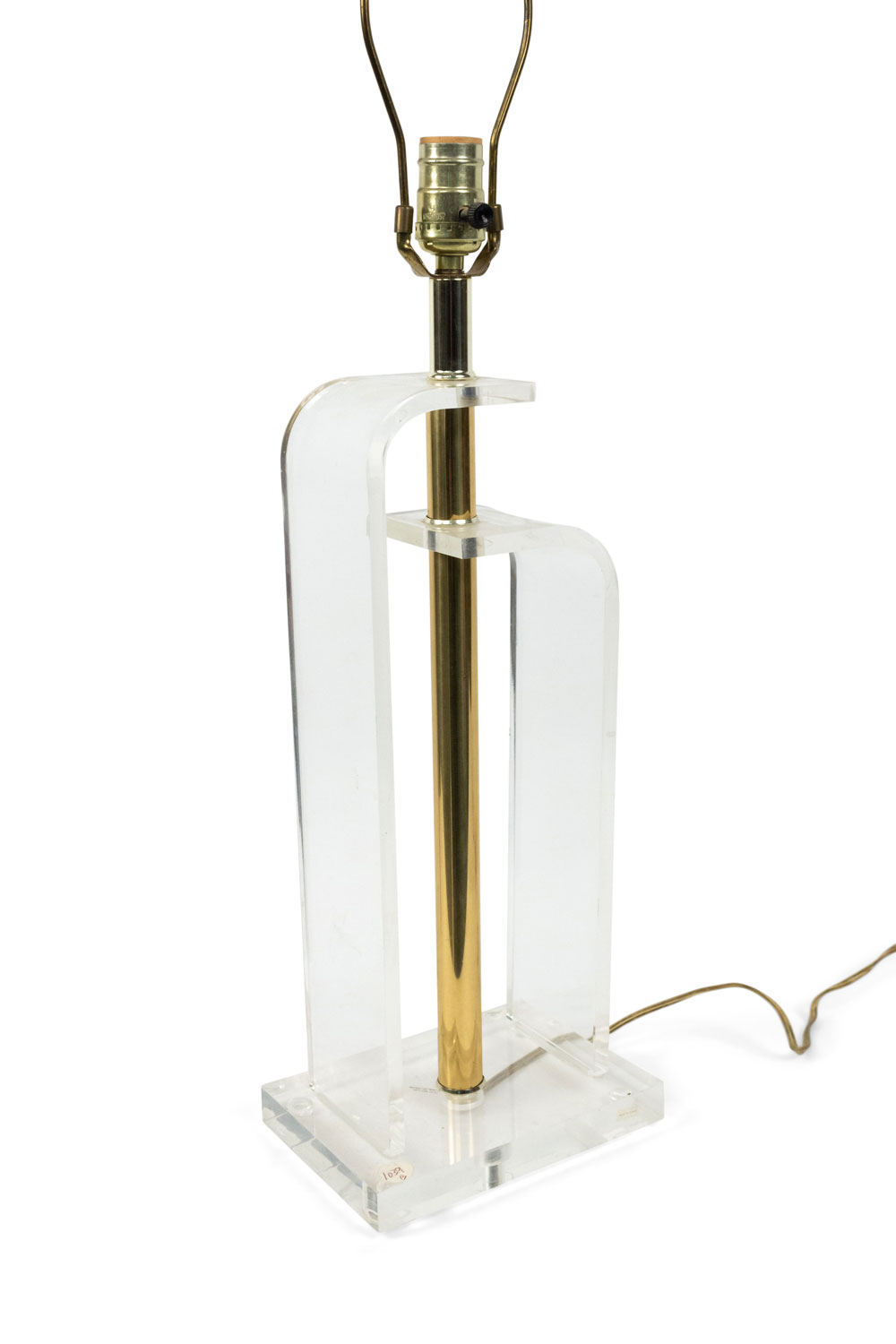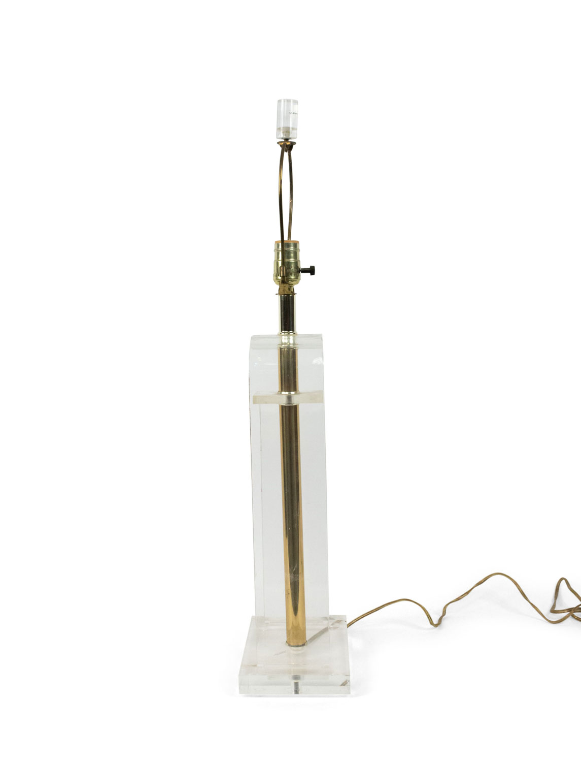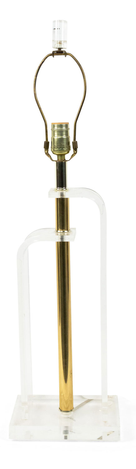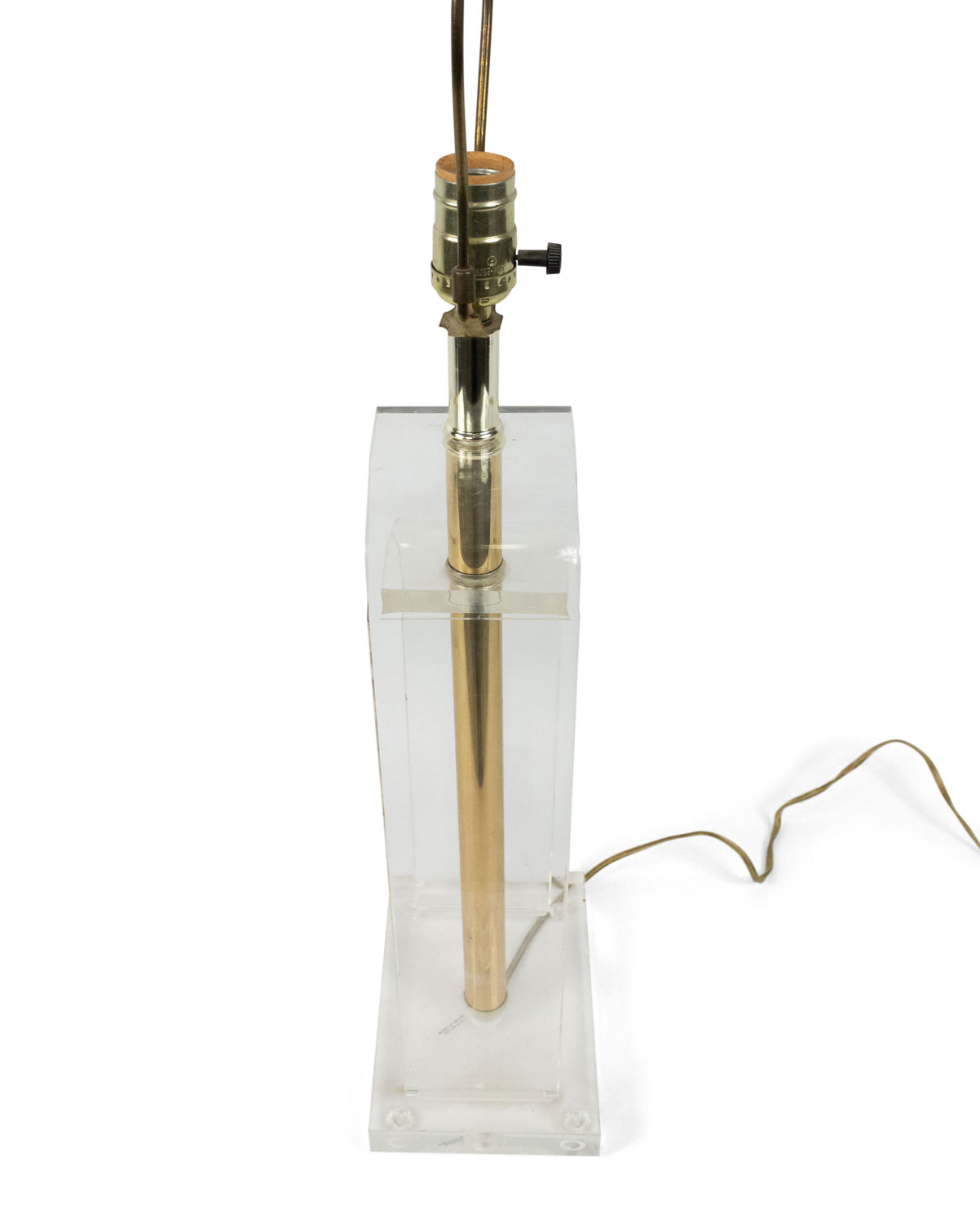 American Mid-Century chrome cube base table lamp suspending 4 movable rectangular Lucite panels.