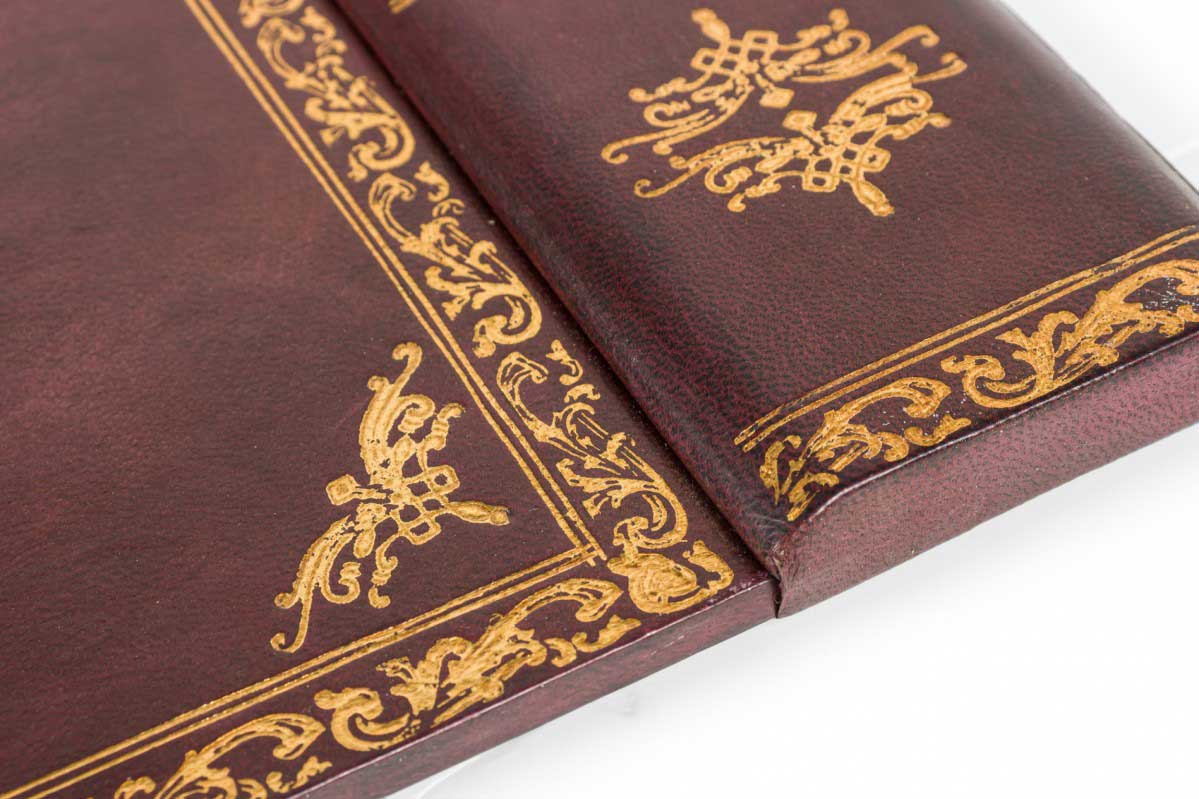 Choose one of the options below.American Mid-Century Florentine Style Book Design Gold Embossed Burgundy Leather Desk Pad