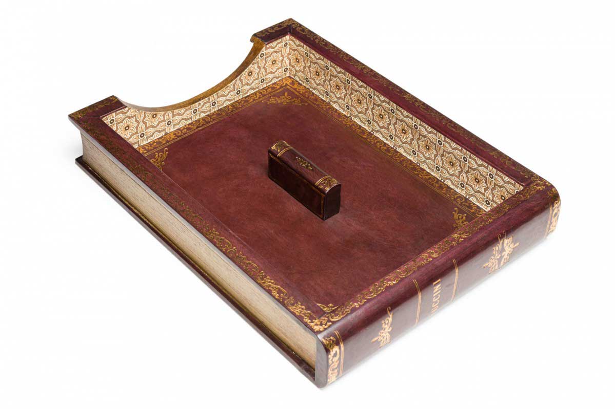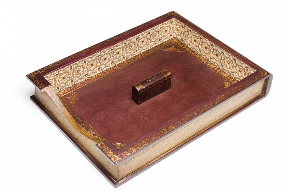 Choose one of the options below.American Mid-Century Florentine Style Book Design Gold Embossed Burgundy Leather Desktop Paper Case