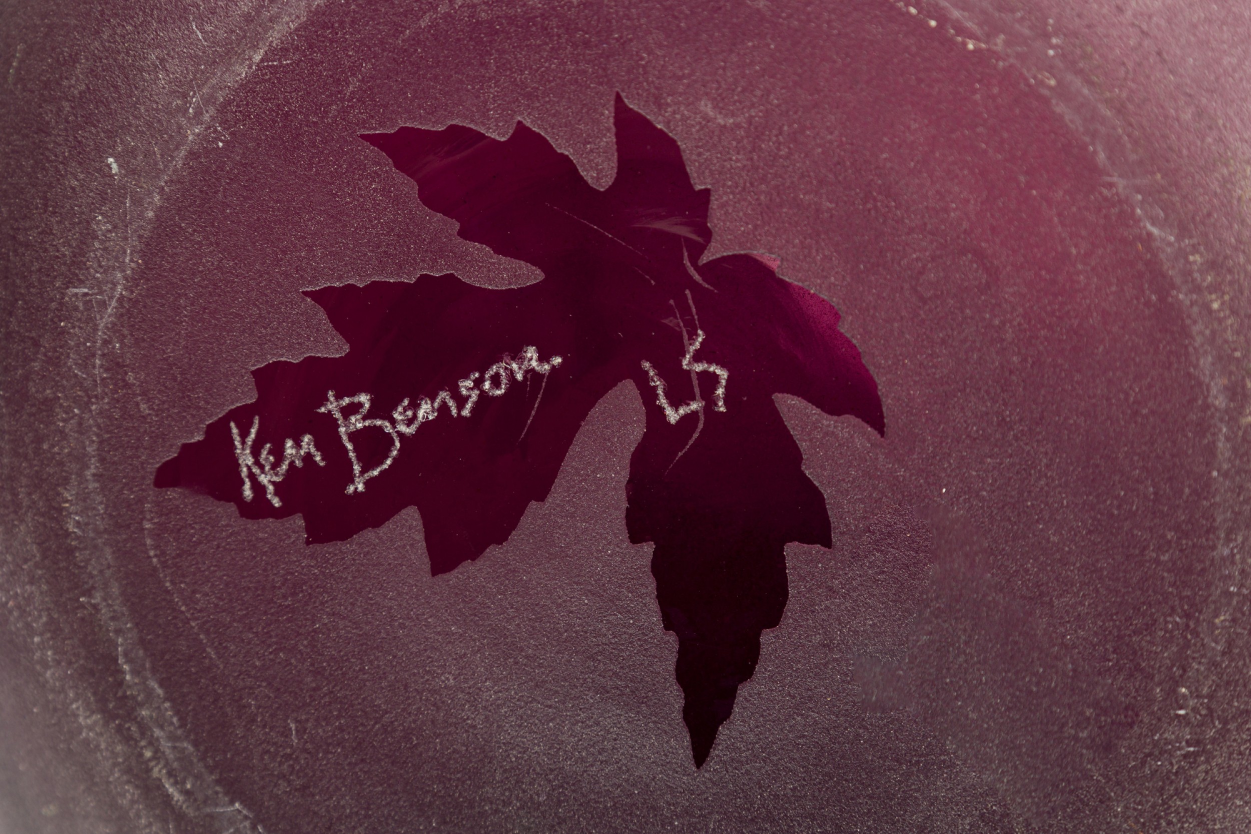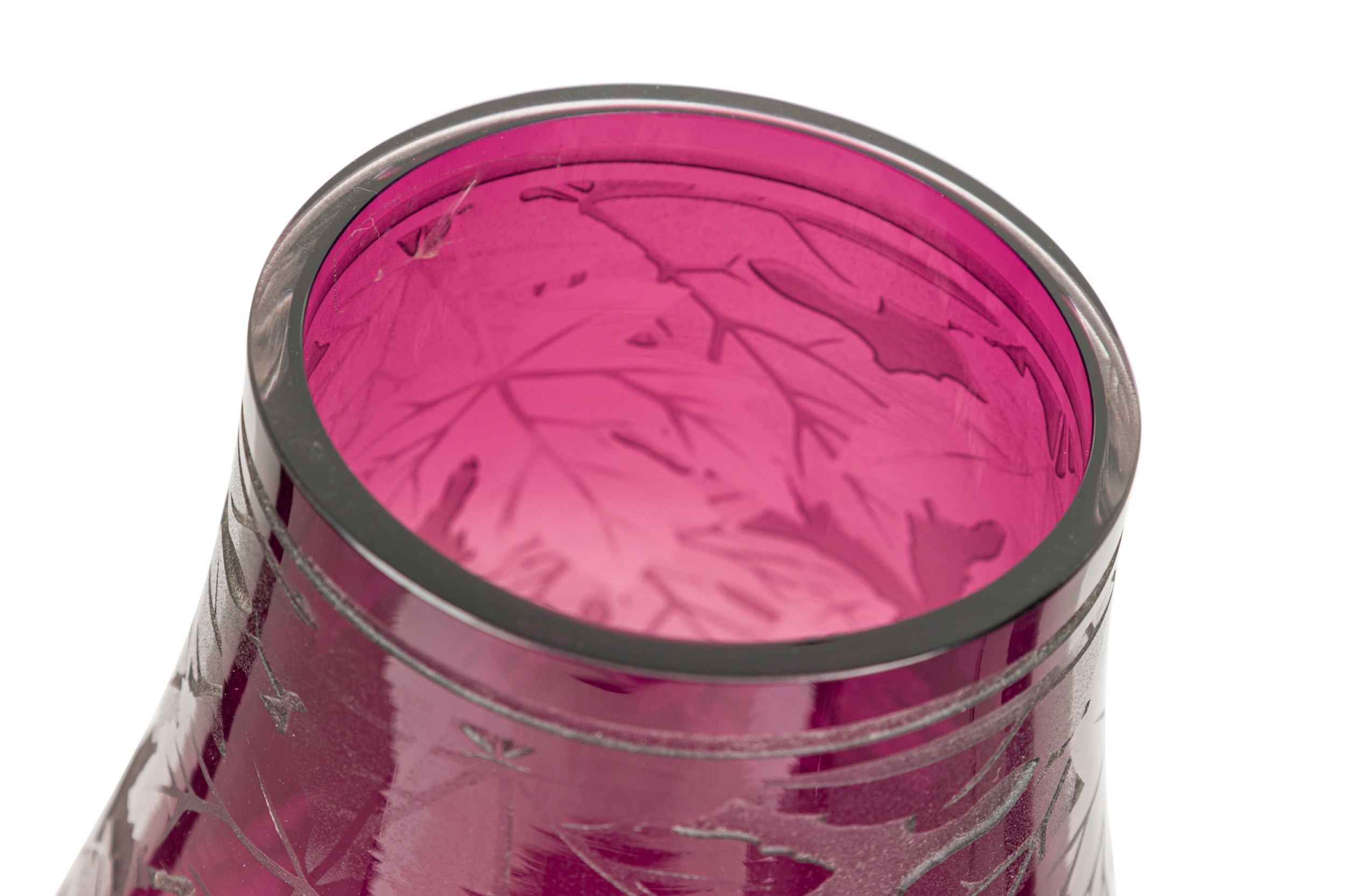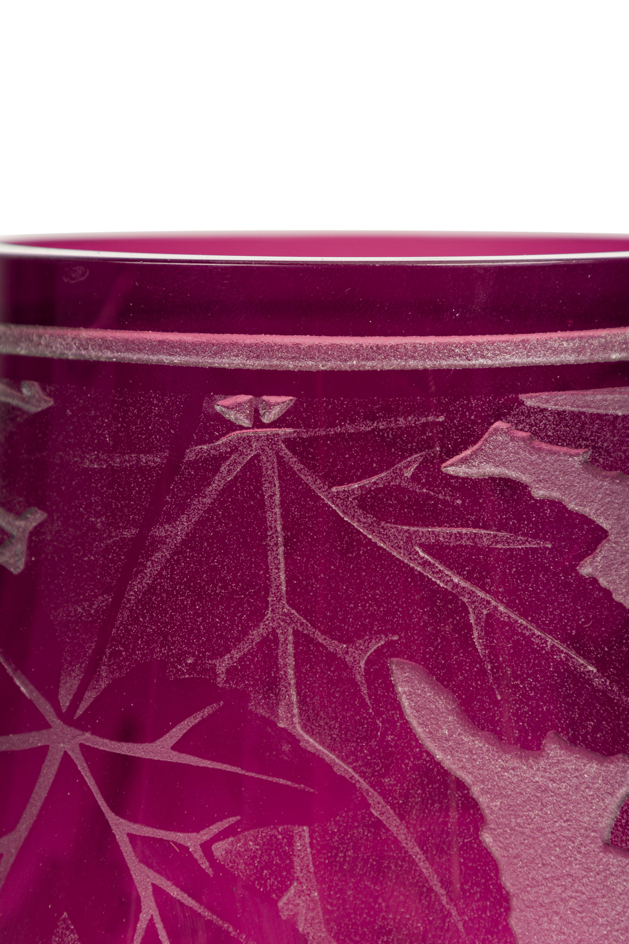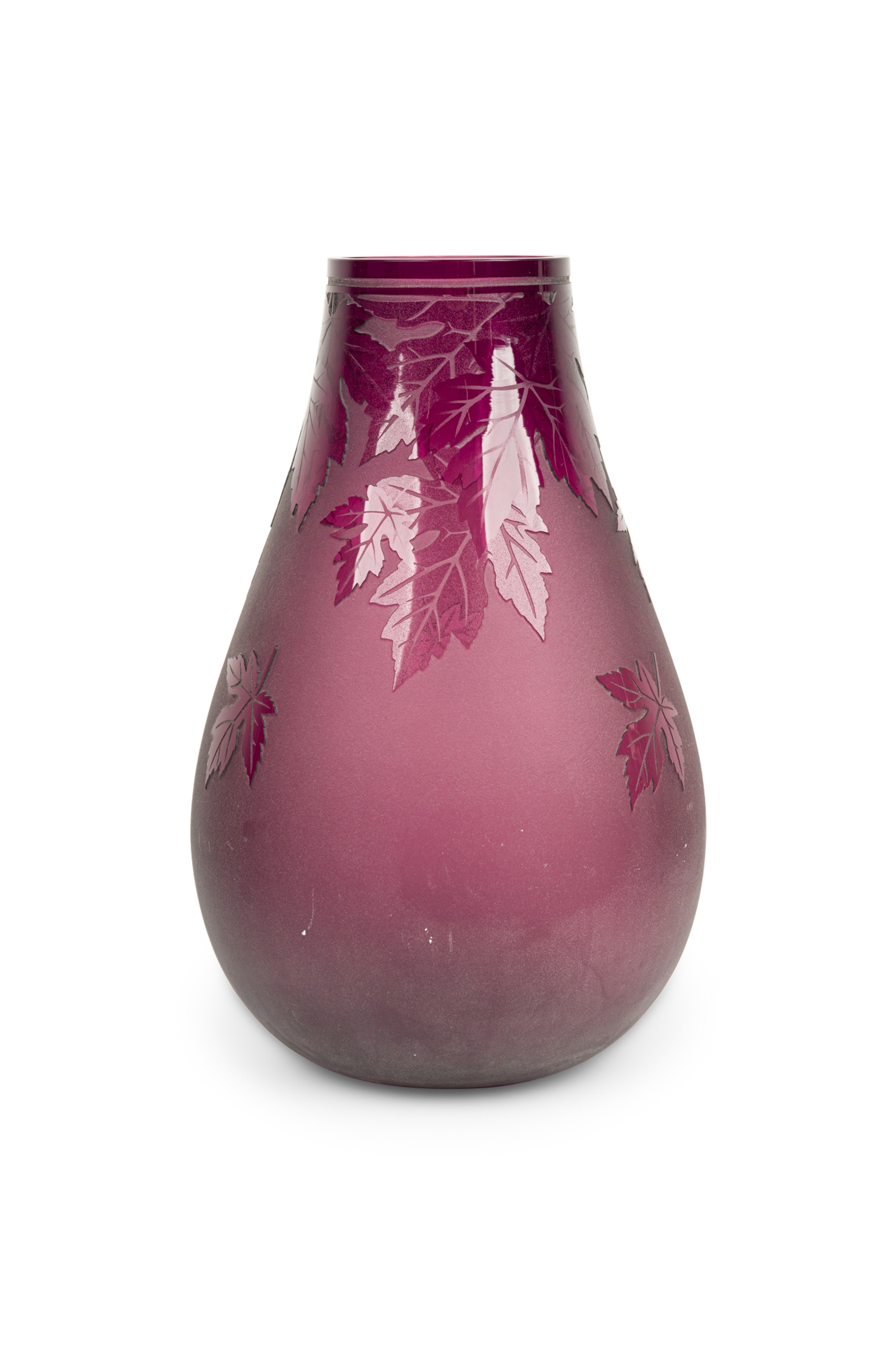 Choose one of the options below.American Mid-Century Large Red Glass Vase With Leaf Designs