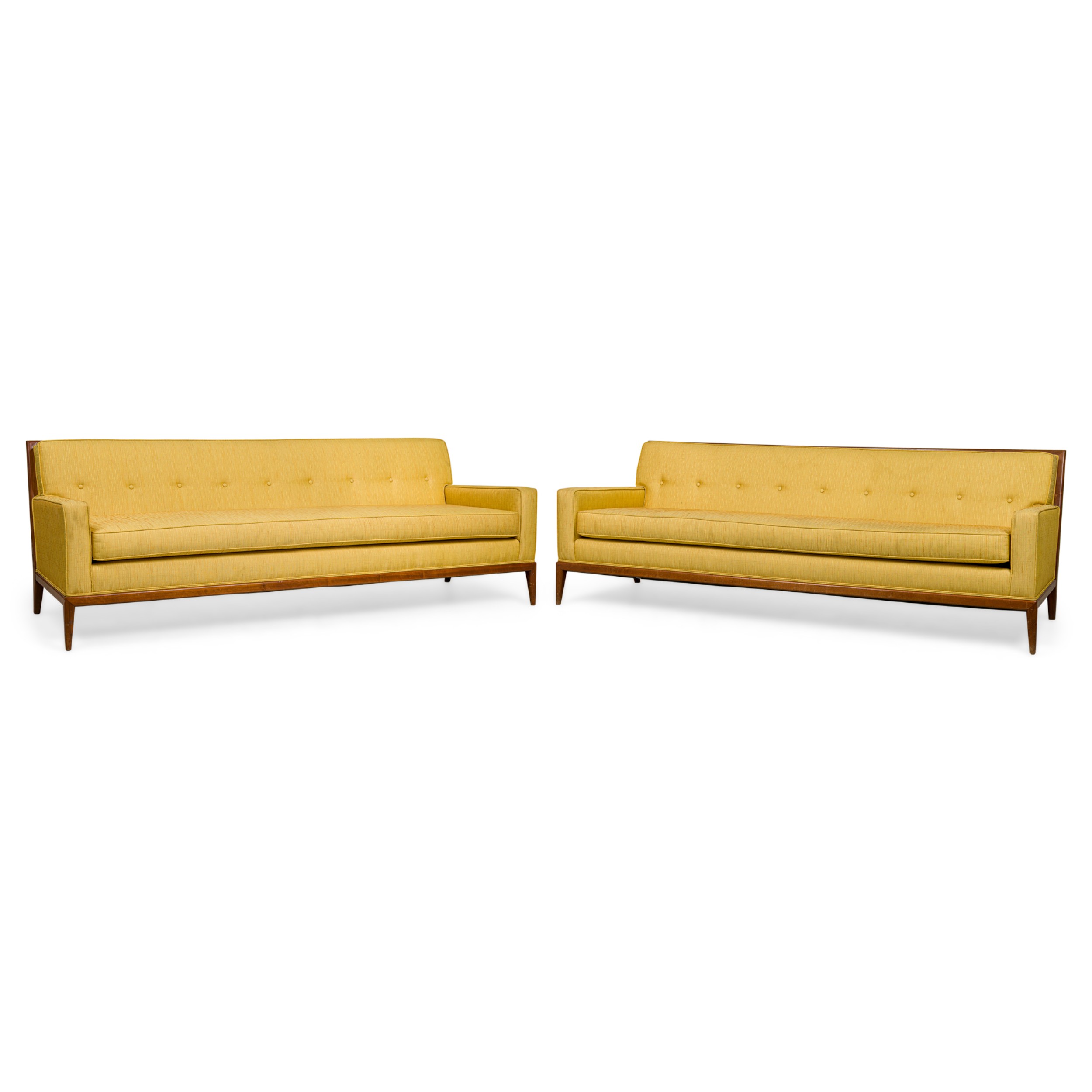 2 American Mid-Century Yellow Fabric Upholstered Sofas