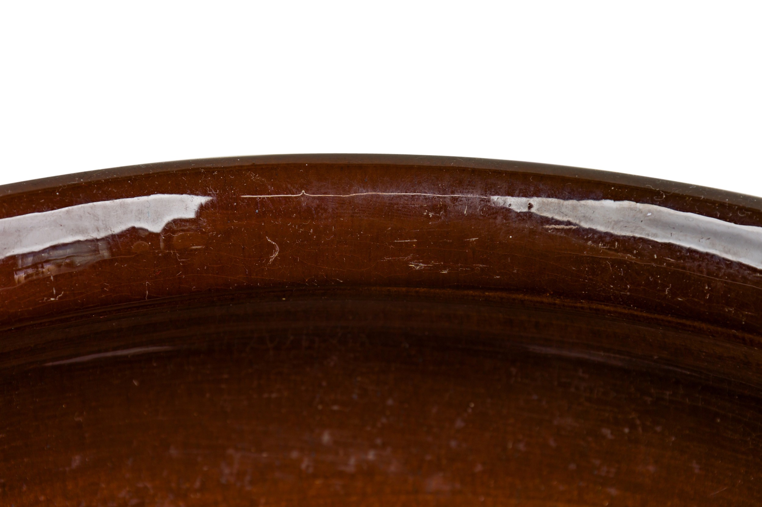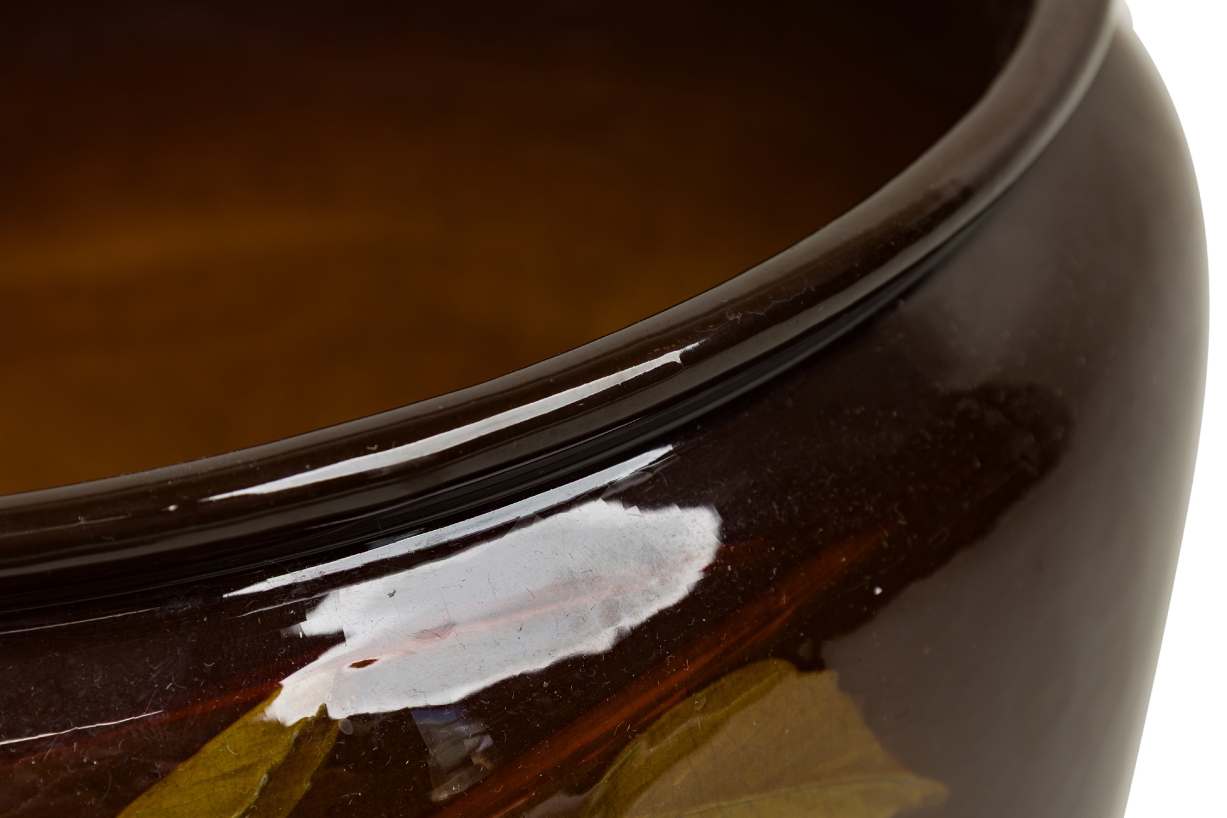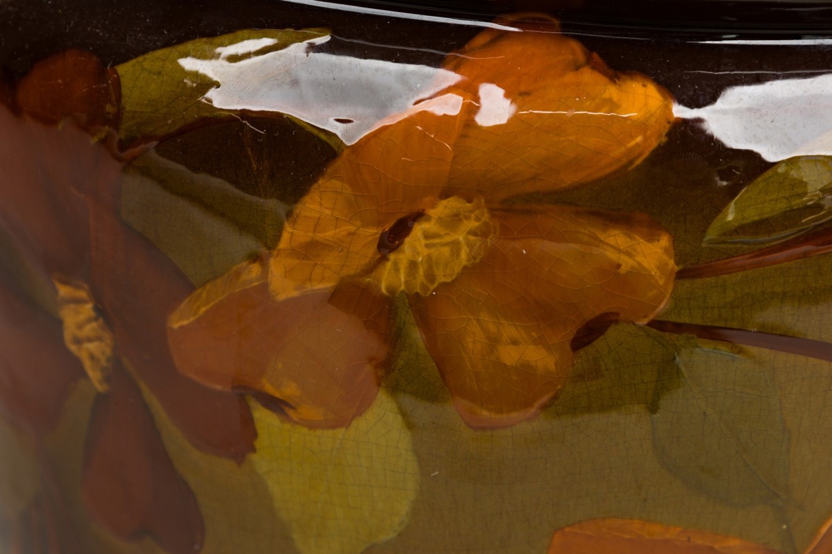 American Mission glazed brown porcelain jardiniere with hand painted monochromatic floral detail (WELLER POTTERY)