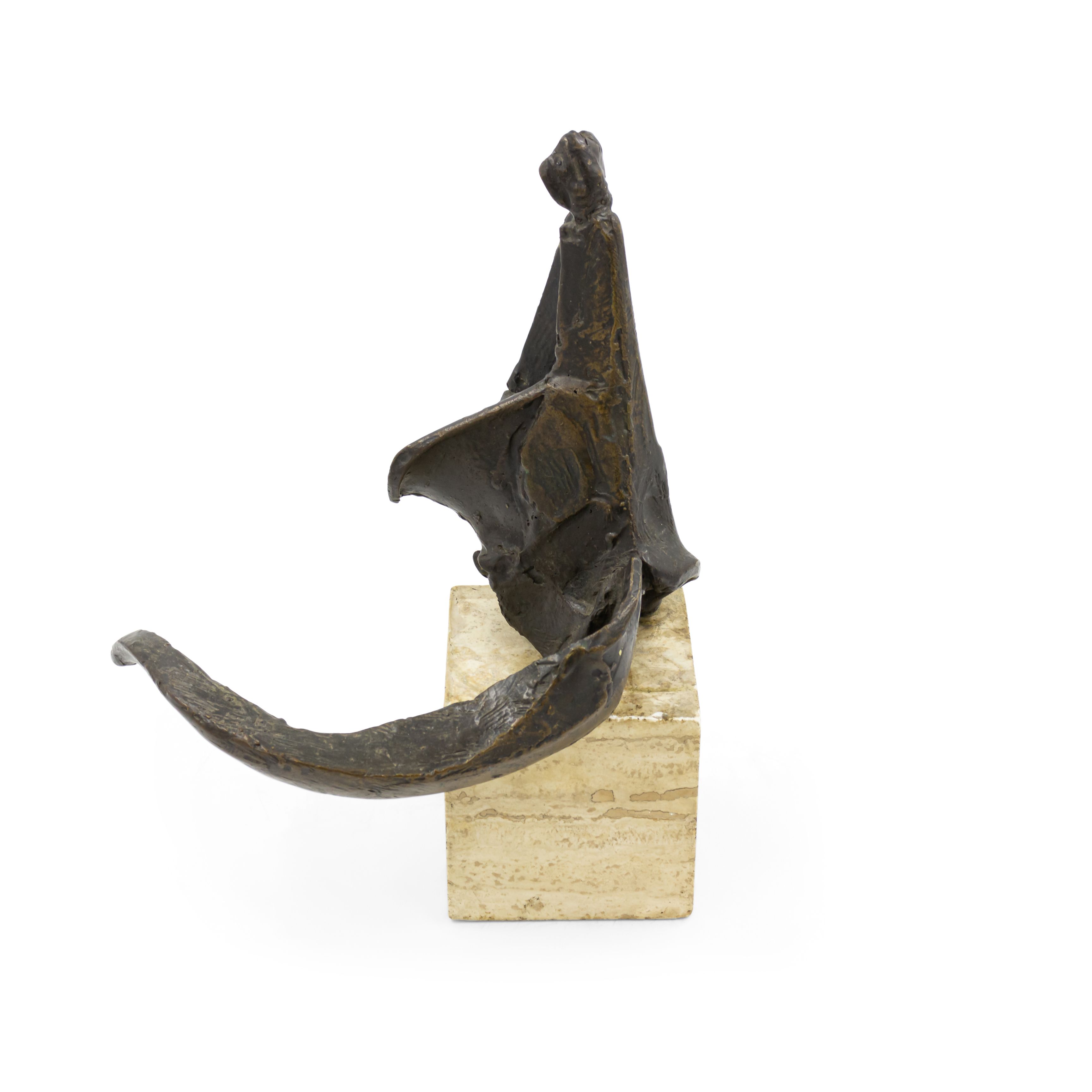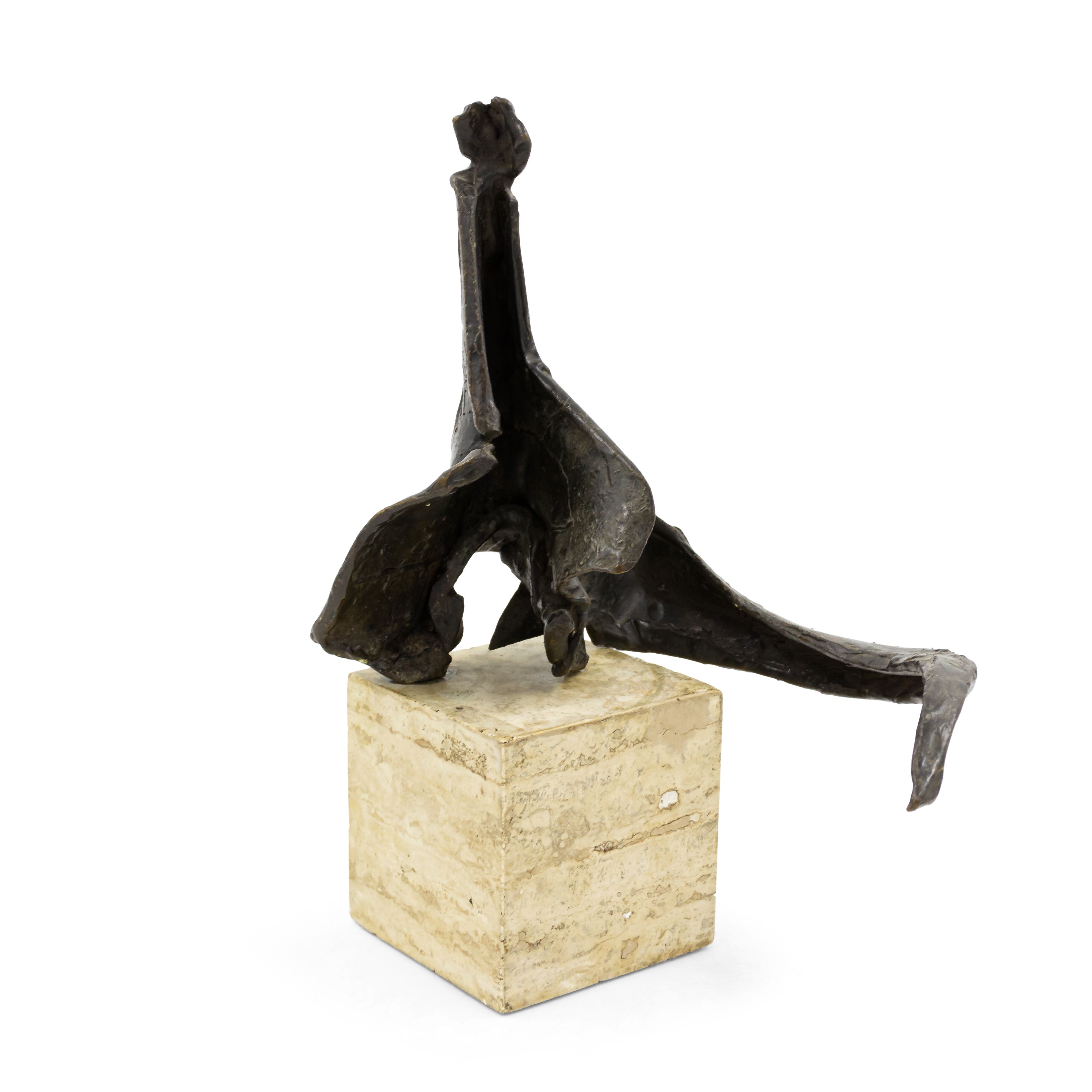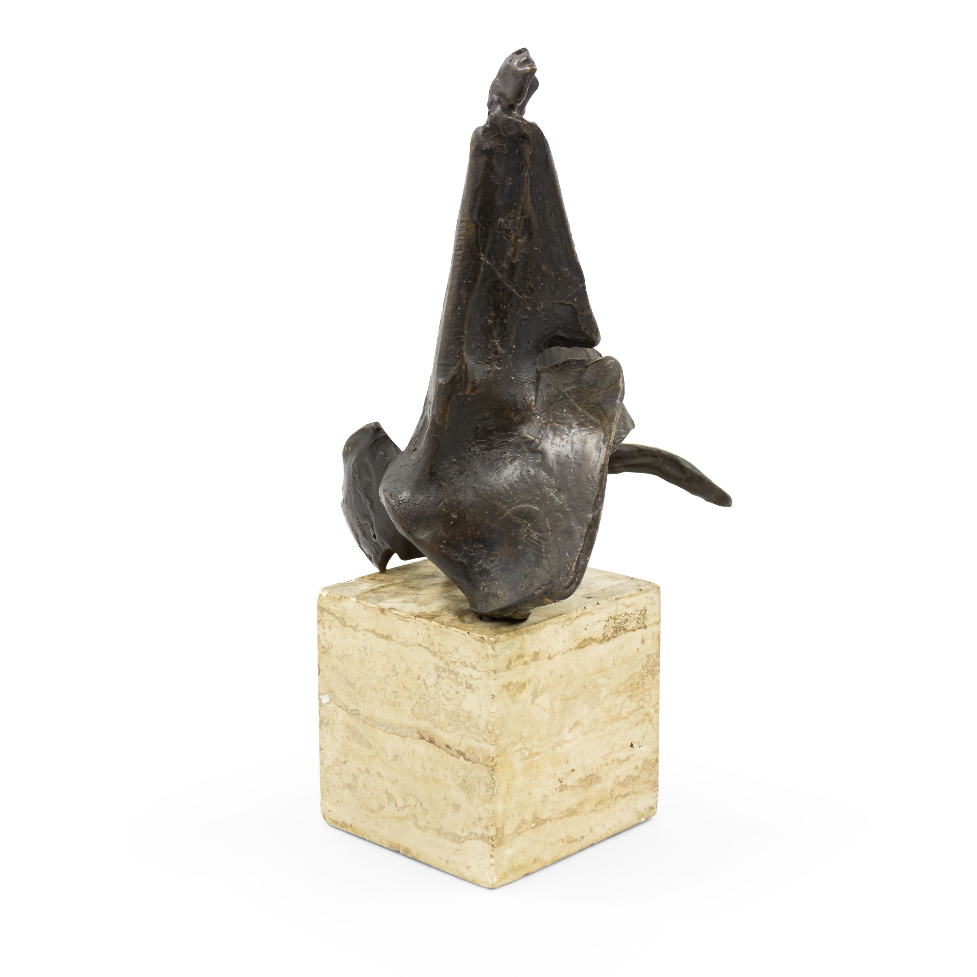 American Post-War Design (circa 1960) abstract bronze sculpture (maquette) on a travertine base. (Attributed to DIMITRI HADZI 1921-2006)