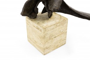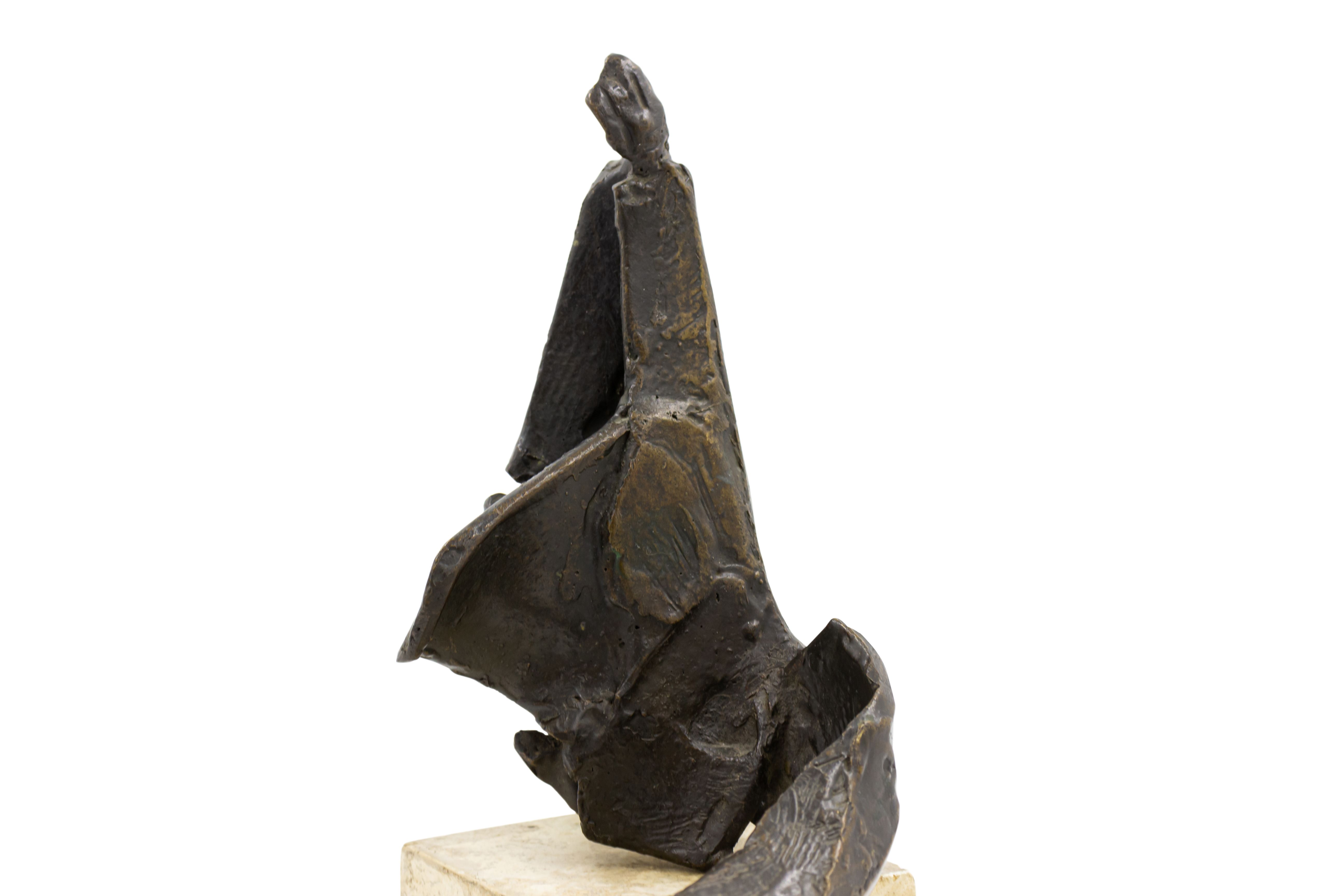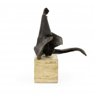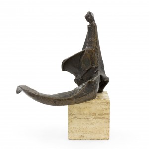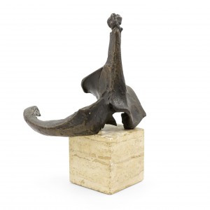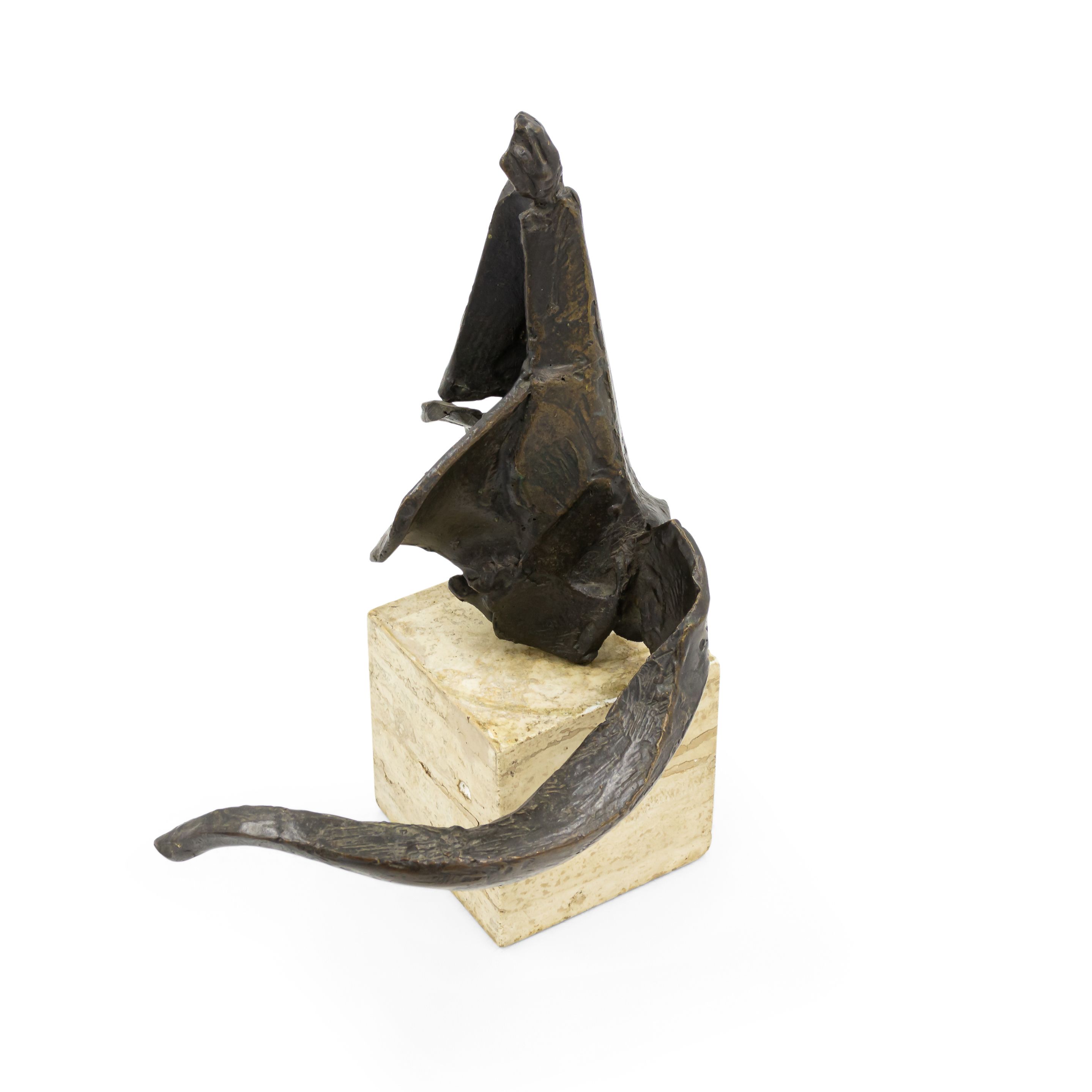 American Post-War Design (circa 1960) abstract bronze sculpture (maquette) on a travertine base. (Attributed to DIMITRI HADZI 1921-2006)