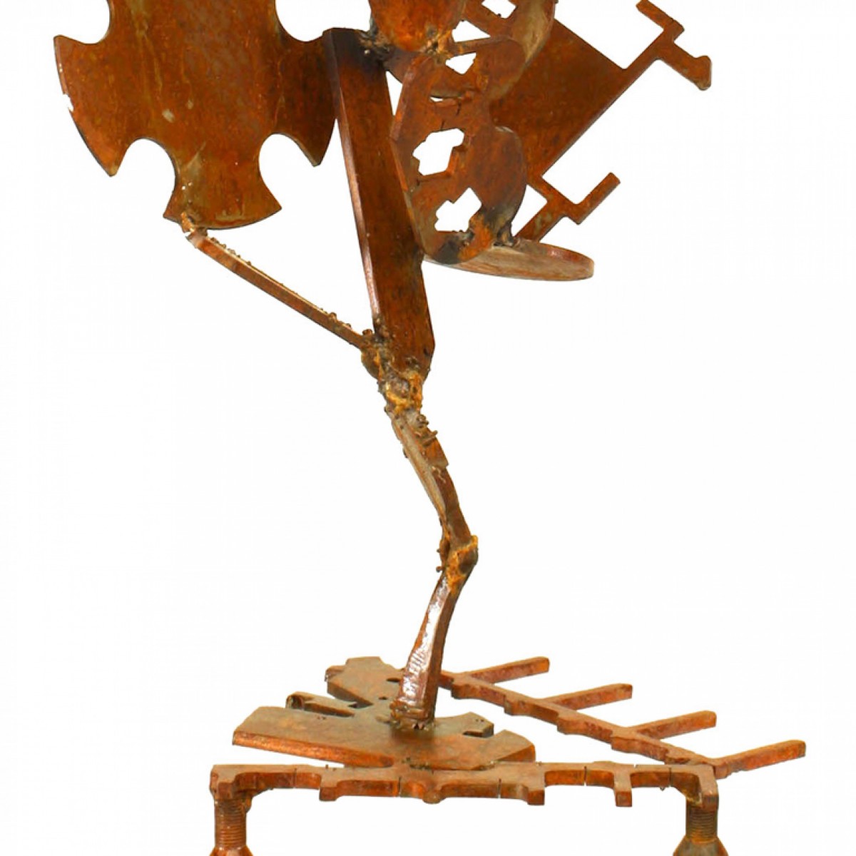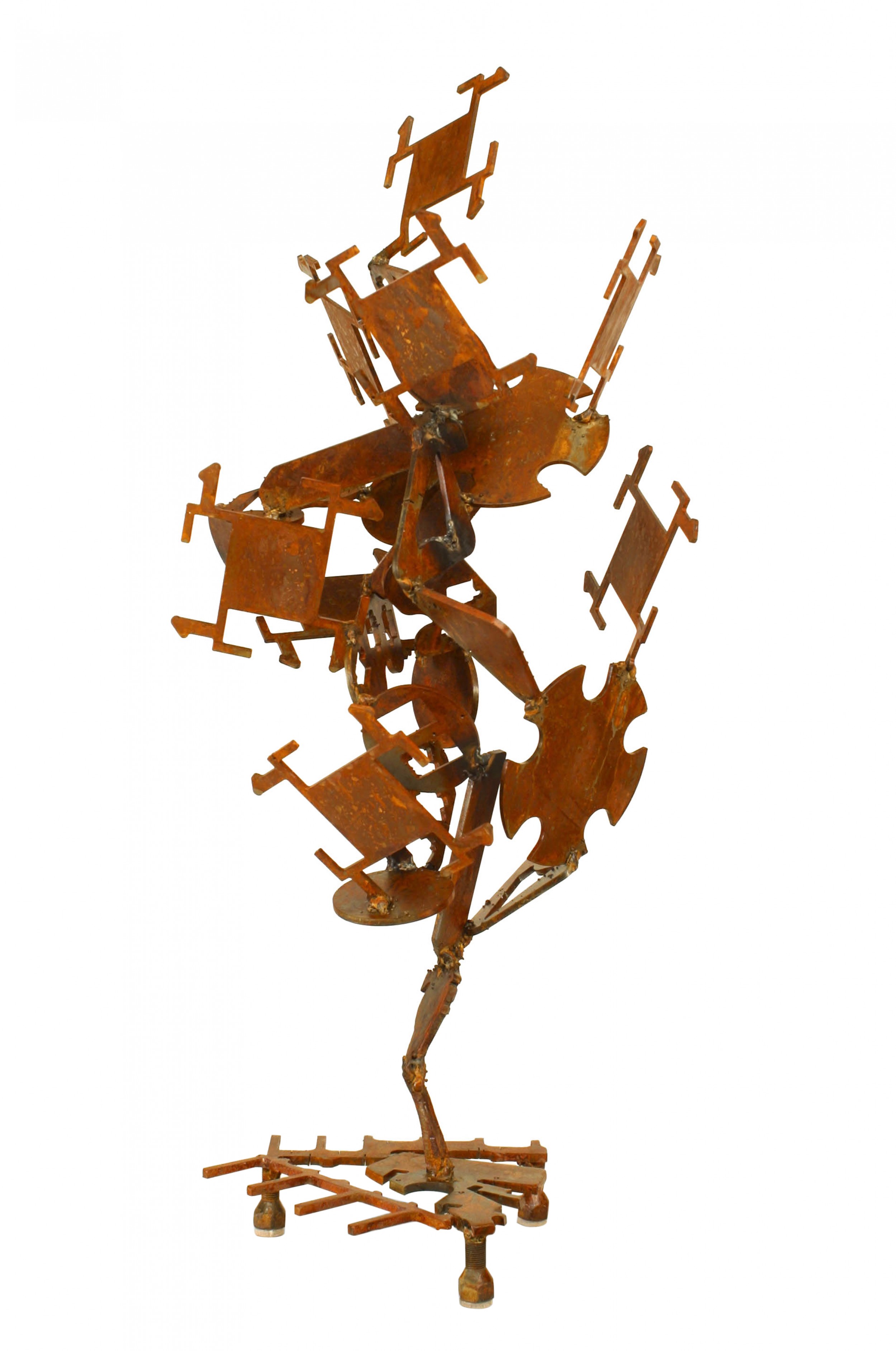 American Post-War Design Brutalist abstract sculpture composed of welded iron shapes with a rust patina.