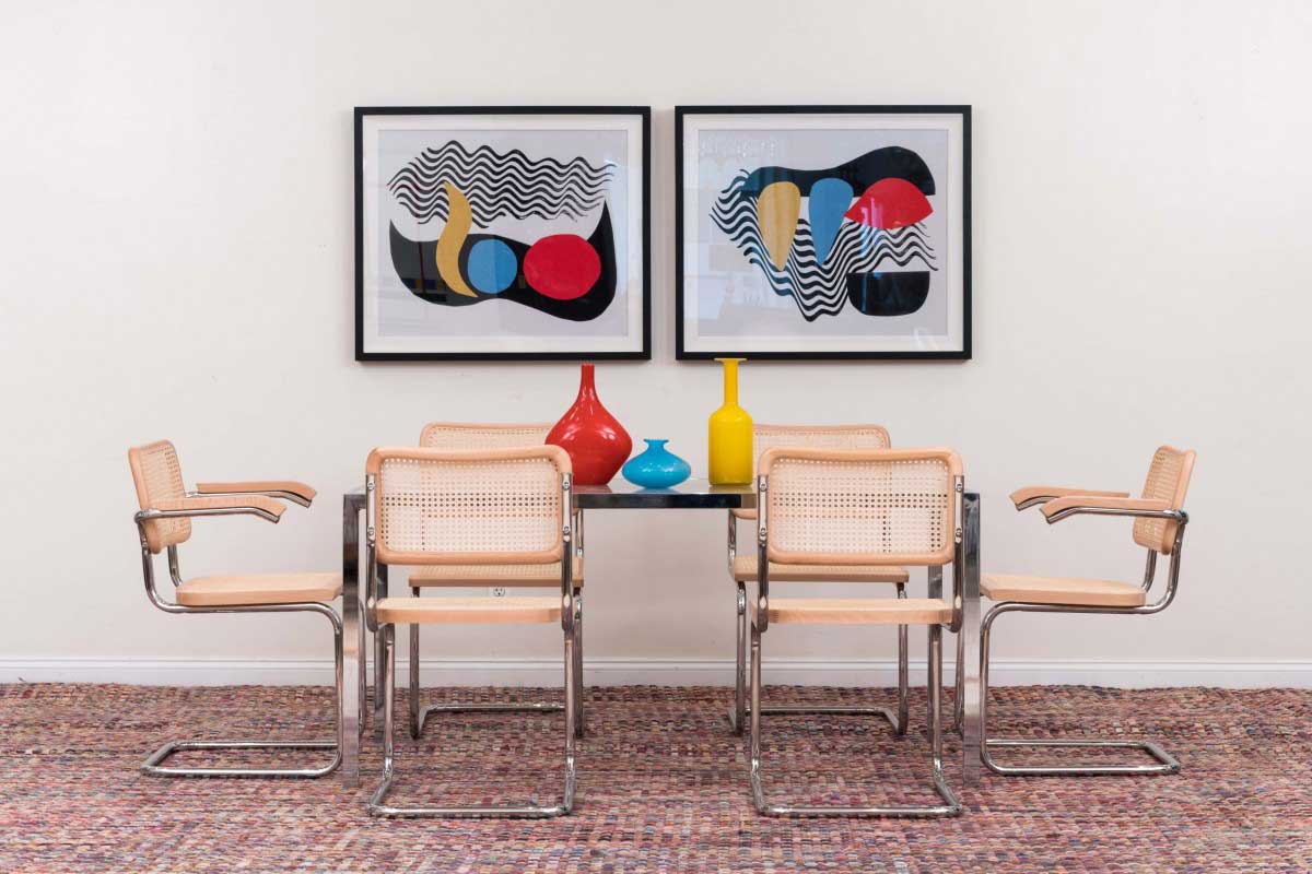 American Post-War Design chrome framed dining / conference table with square legs and supporting an inset glass top.
