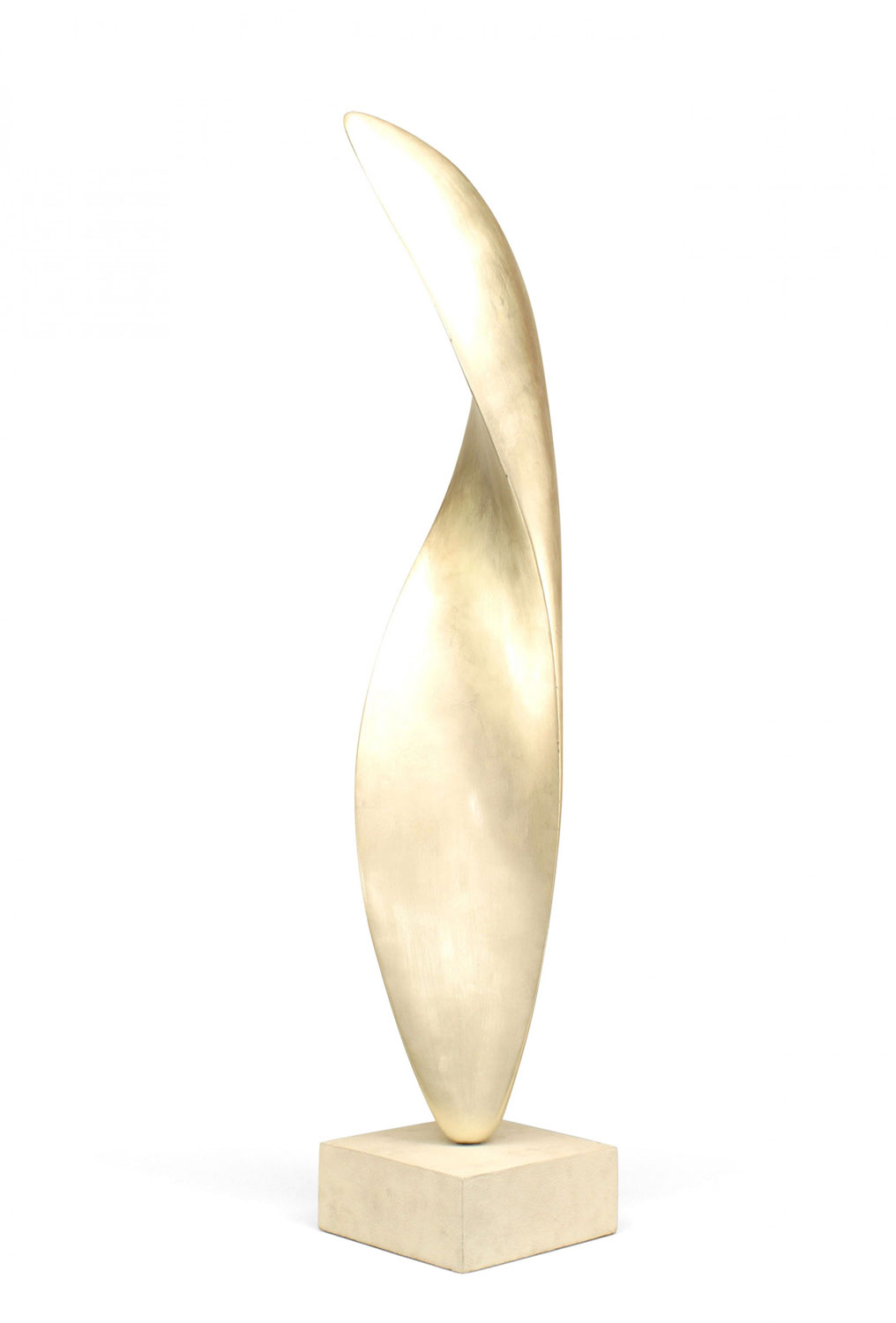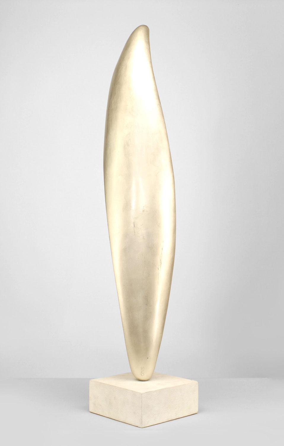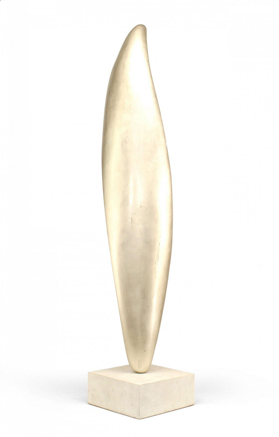 American Post-War Design silver leaf over resin sculpture of a vertical form mounted on a square base (Kevin Kelly)