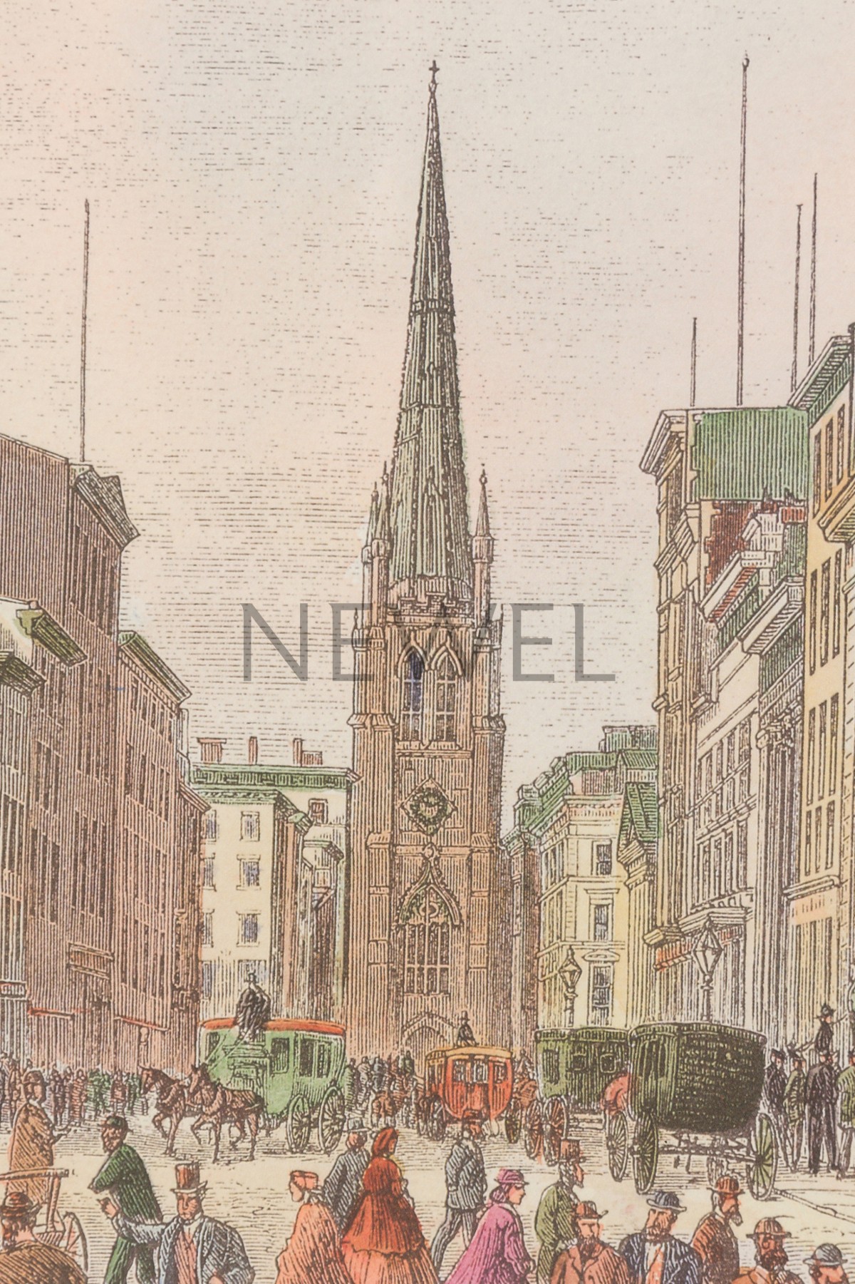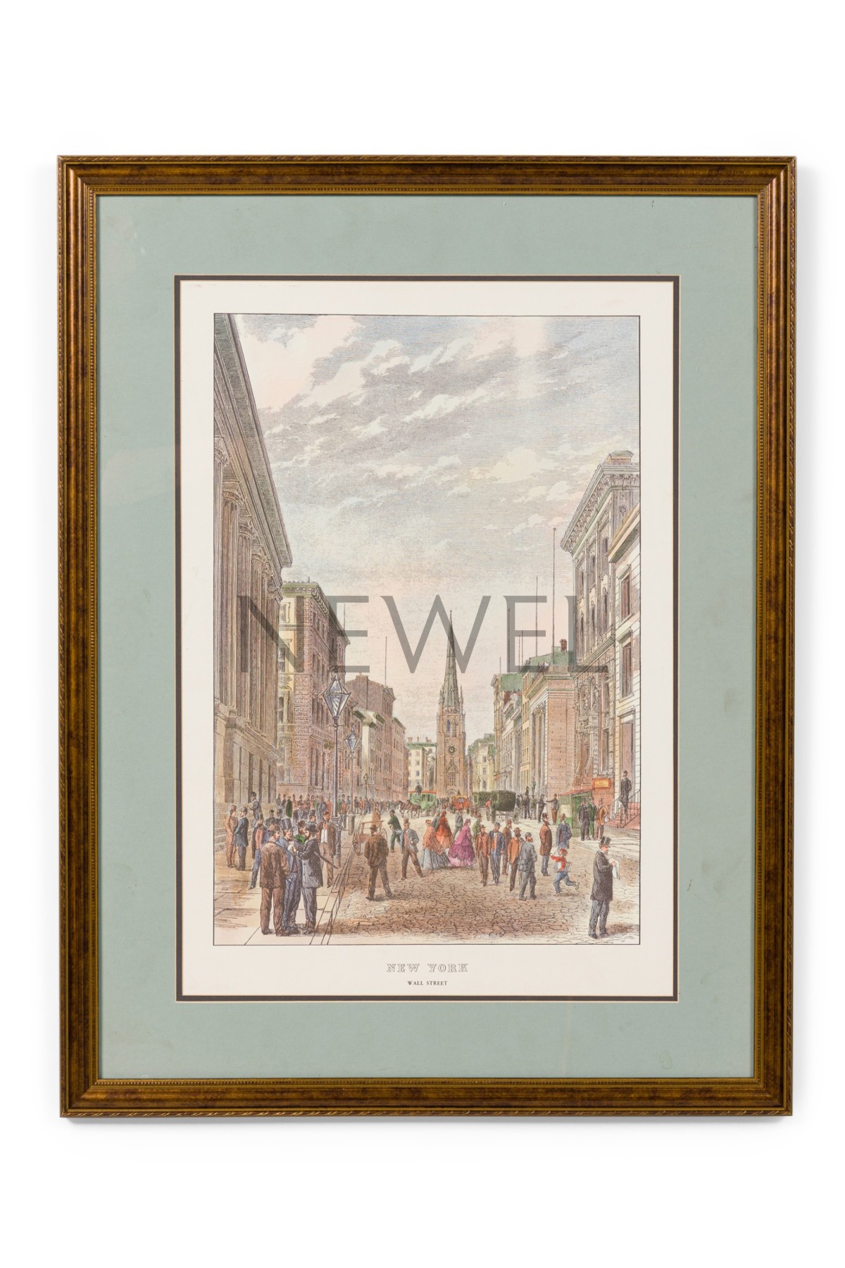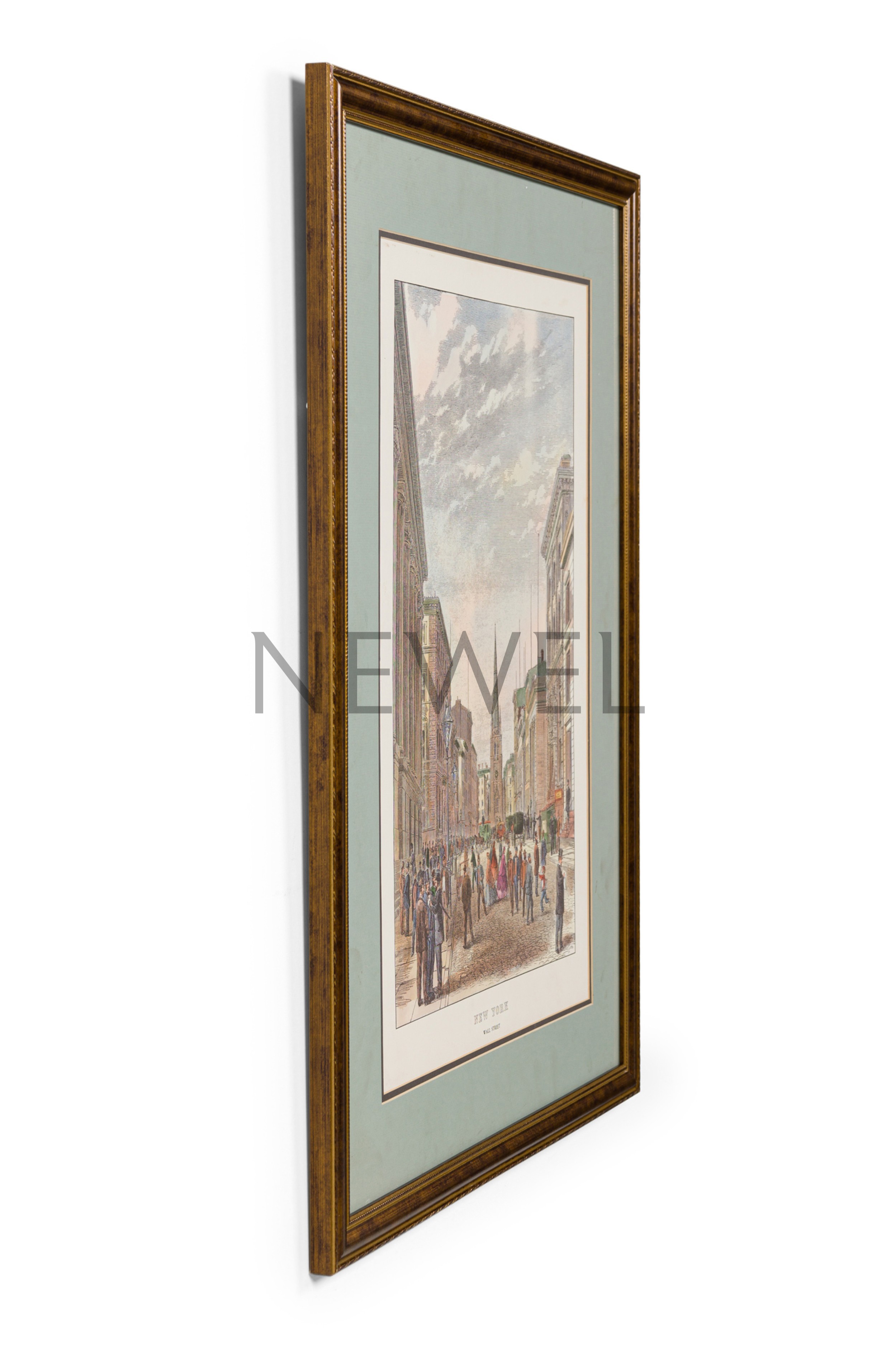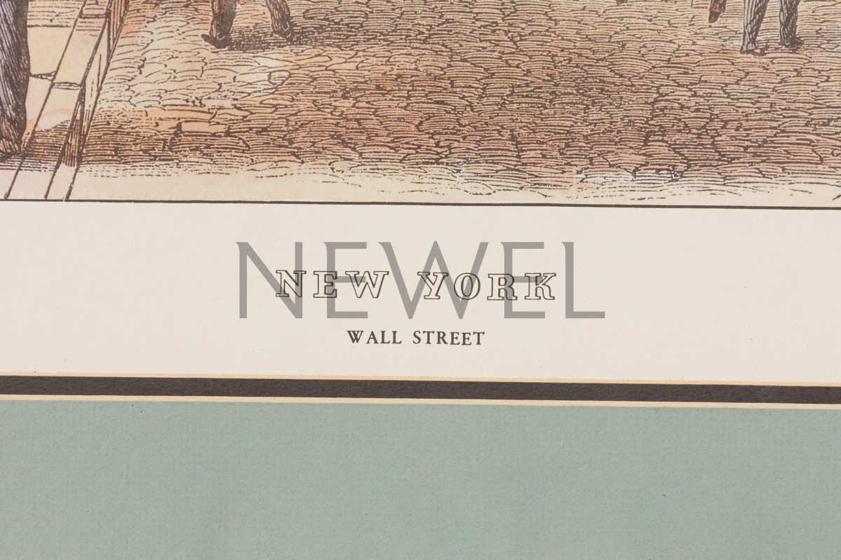 American Victorian 19th century lithograph depicting Wall Street and the people walking around in the streets