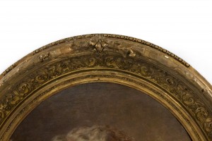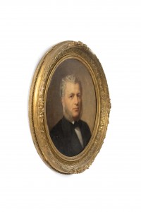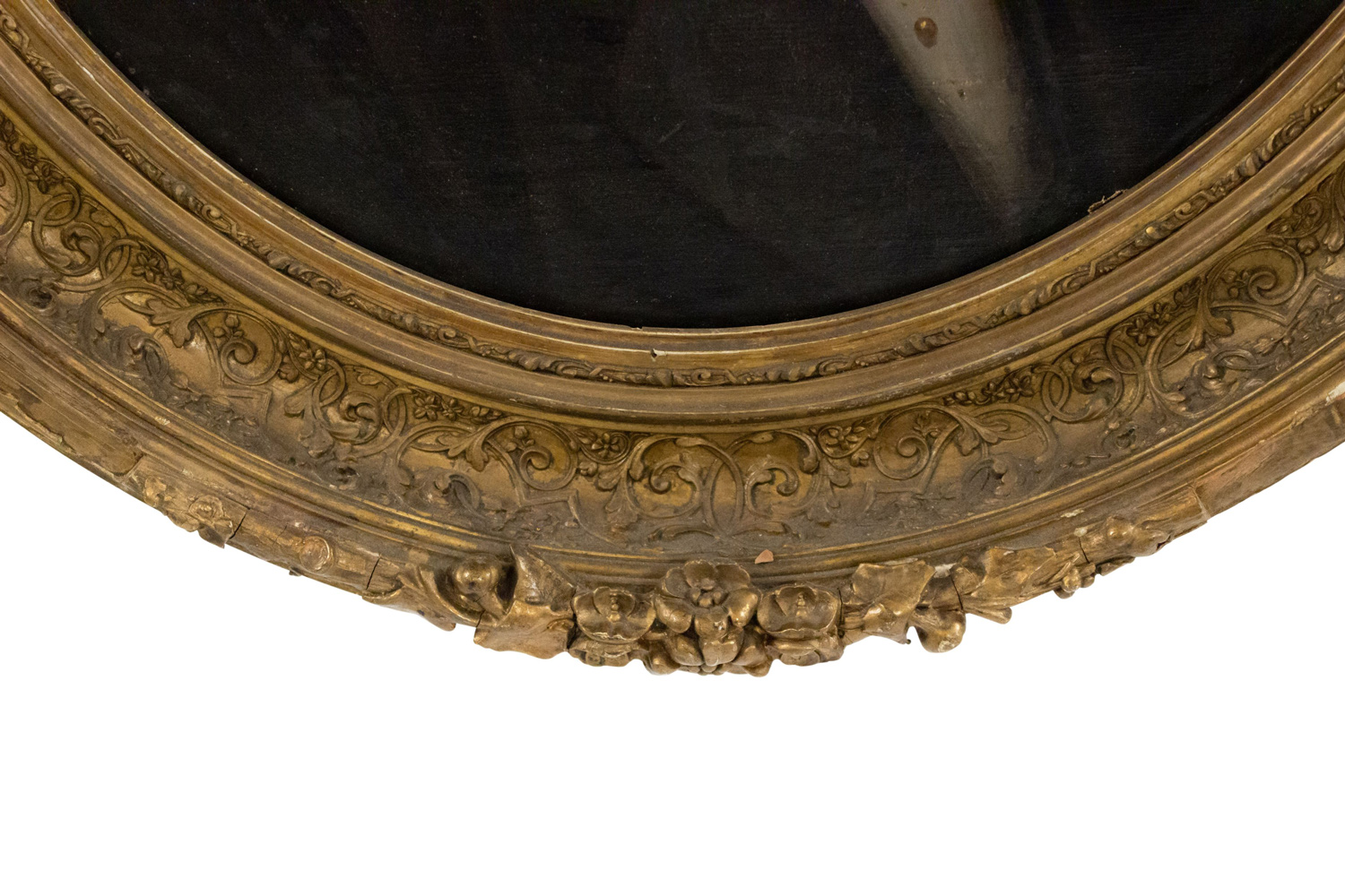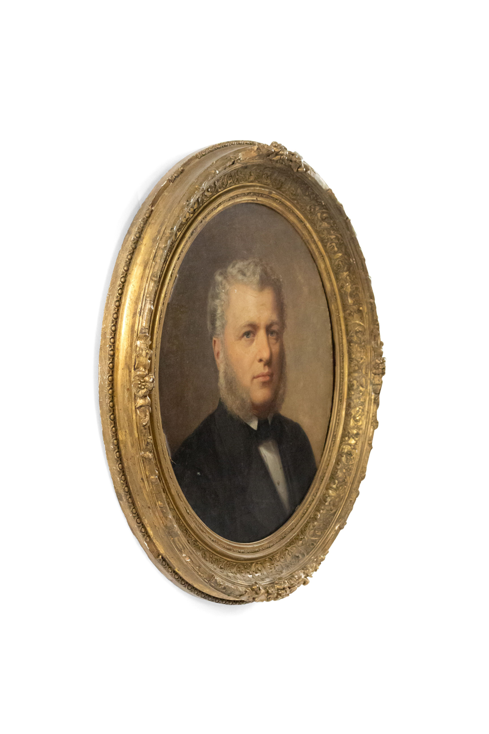 American Victorian style gilt framed oval oil portrait, painting of bearded man wearing black tie